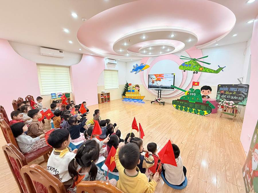 Nhằm giúp trẻ hiểu thêm về ý nghĩa Ngày thành lập Quân đội nhân dân Việt Nam (22/12), các bé lớp C2 đã được tham gia hoạt động xem phim tư liệu với nội dung giới thiệu về hình ảnh, truyền thống và những đóng góp to lớn của Quân đội nhân dân Việt Nam trong sự nghiệp xây dựng và bảo vệ Tổ quốc.