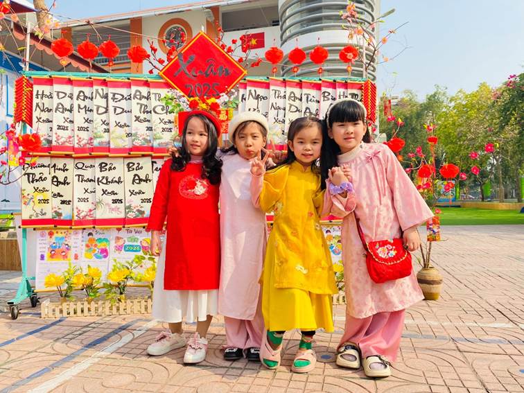 Hòa chung trong không khí “Chào Xuân đón Tết” của trường Mầm non Ánh Sao, các bạn nhỏ lớp Alvin đã được cha mẹ chuẩn bị cho rất nhiều những bộ áo dài đa dạng từ kiểu dáng đến màu sắc để tham gia vào ngày hội, vui mừng đón Xuân về. Áo dài trẻ em mặc Tết giữ đậm nét truyền thống với hai tà áo dài ngang đầu gối, tay áo suông dài và ưu tiên may theo kiểu dáng rộng rãi phù hợp với vóc dáng của trẻ. Tùy thuộc vào tính cách, sở thích của bé mà lựa chọn màu sắc hay họa tiết Những tà áo dài tung bay đã là hình ảnh thân thuộc trong mỗi dịp lễ Tết. Khi những đứa con hay đám trẻ nhỏ nô đùa xúng xính với tà áo dài truyền thống đi chúc Tết, bạn sẽ cảm nhận được rõ nét nhất những điều tuyệt vời thời xa xưa trong thời đại số ngày nay.