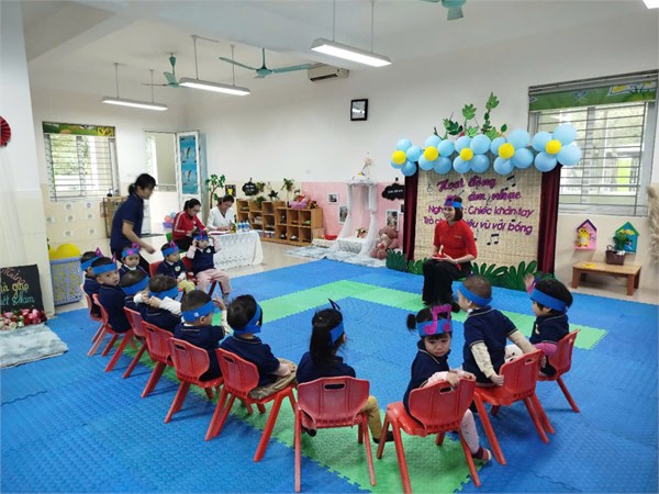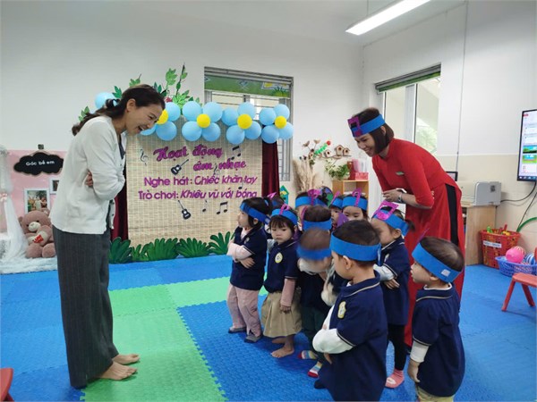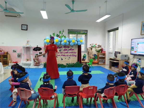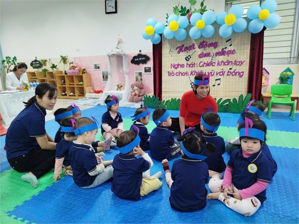 Tập ảnh : Ảnh đẹp tháng 12: Giờ hoạt động âm nhạc : nghe hát "Chiếc khăn tay" của các bé lớp D1