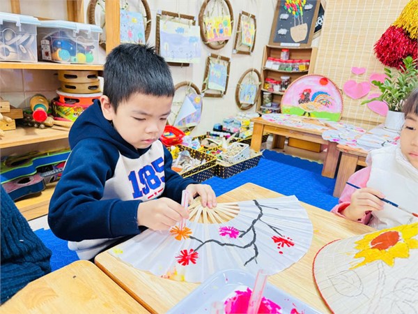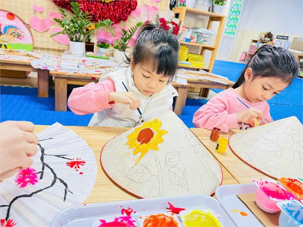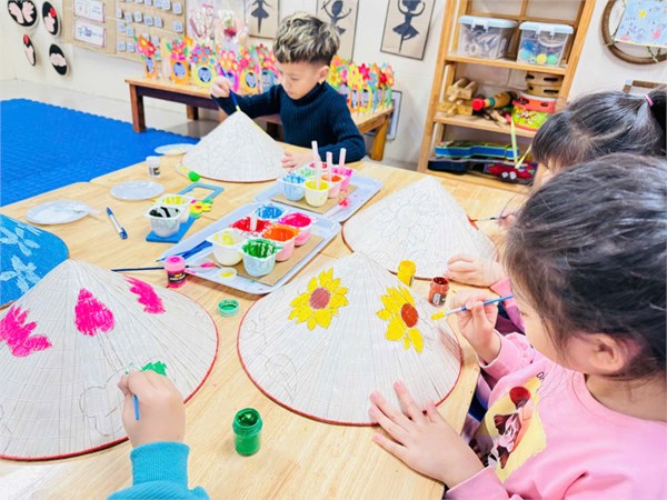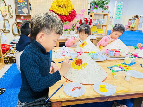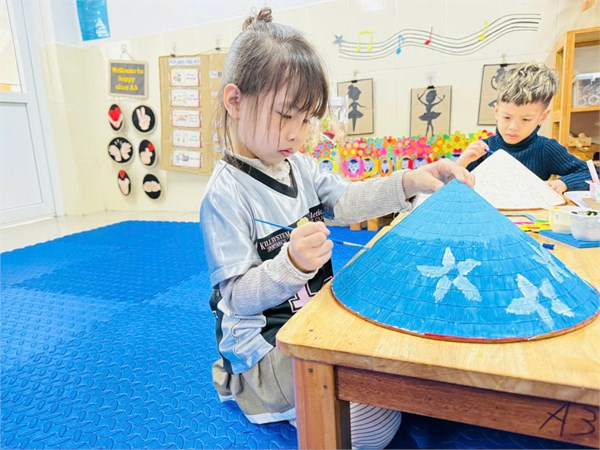 Tập ảnh : Ảnh đẹp tháng 3 - Các bé lớp MGL A3 tự tay trang trí những chiếc nón lá tặng bà tặng mẹ nhân ngày 8/3!