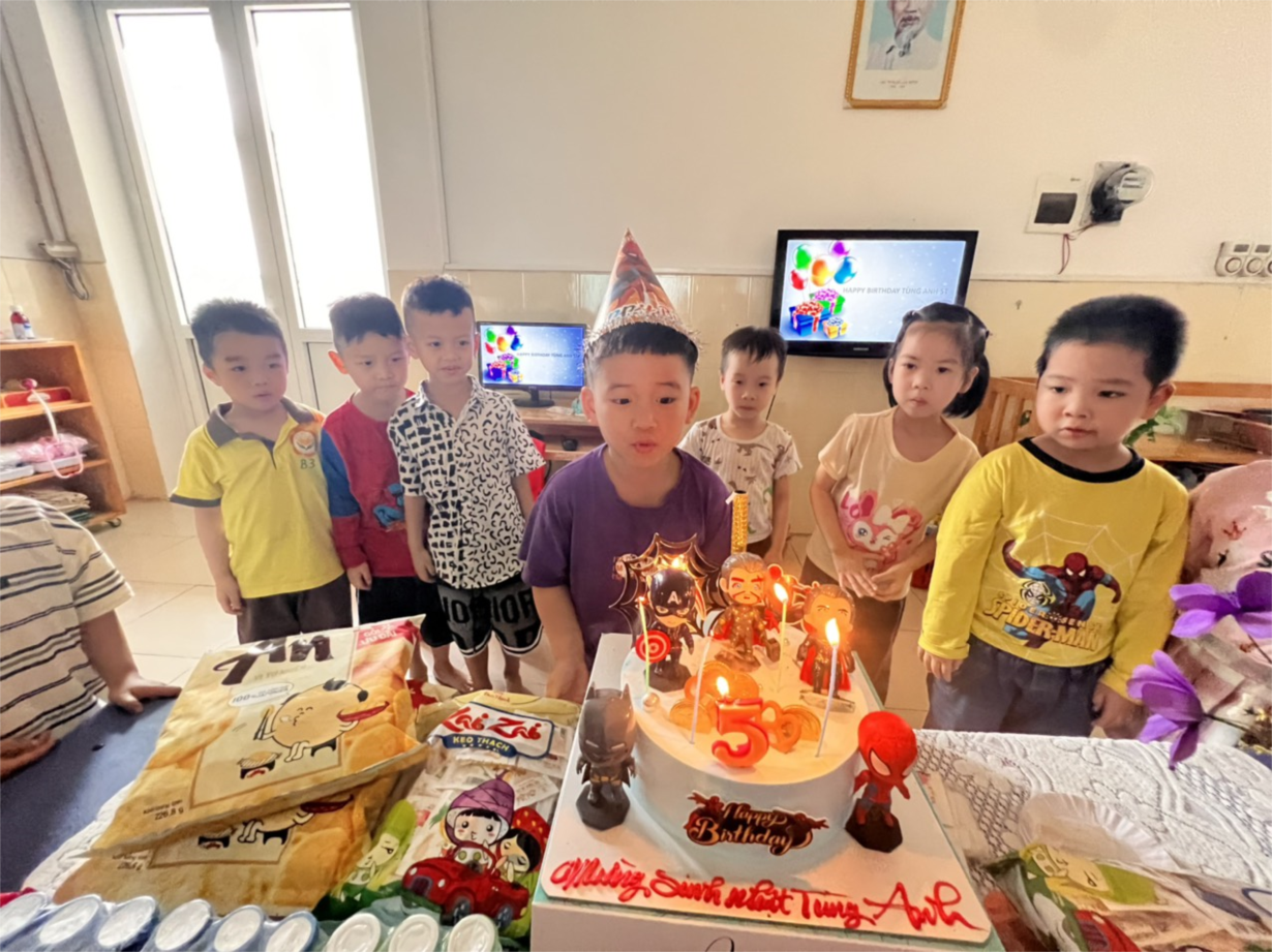 Các bạn nhỏ lớp A2 chúc mừng sn bạn Quang Hải !