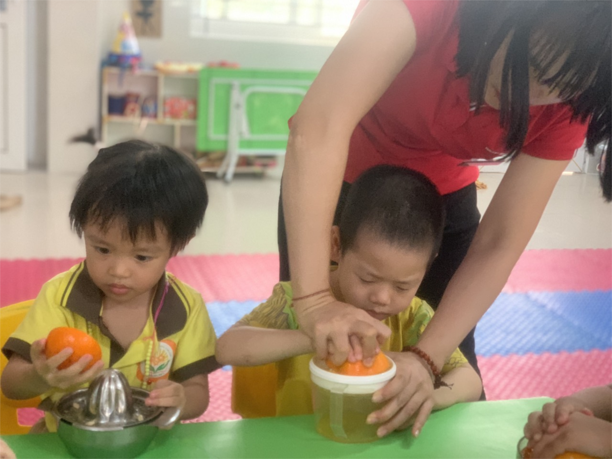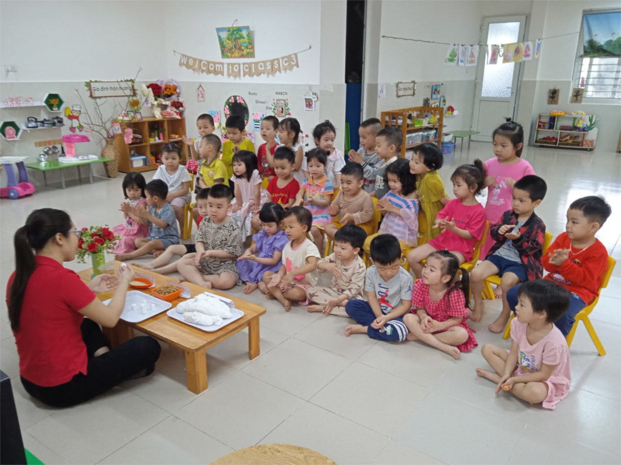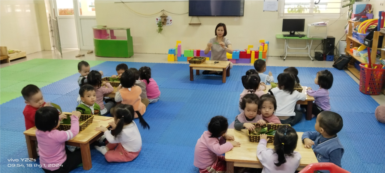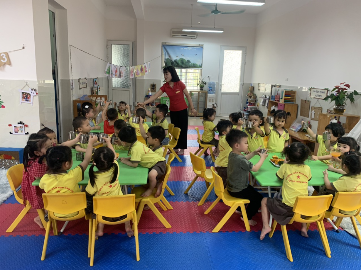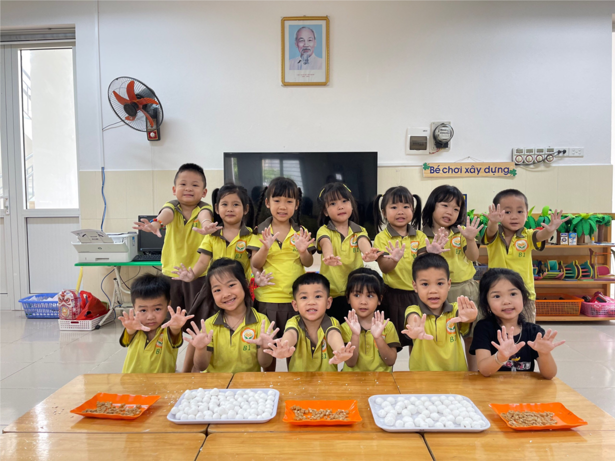 Hình ảnh các bé lớp MGN B1 với hoạt động kỹ năng thực hành cuộc sống.