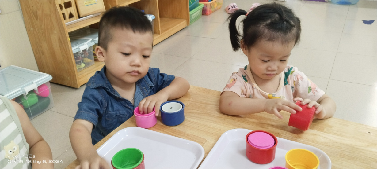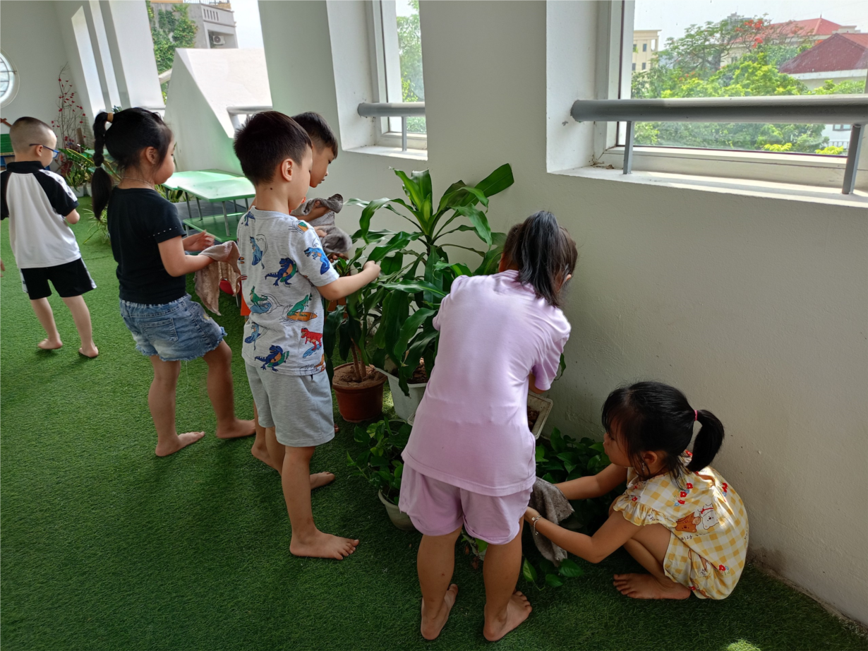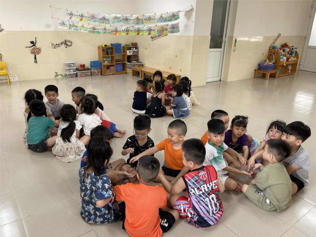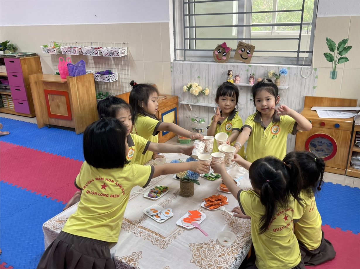 Hình ảnh các bé lớp MGN B1 với hoạt động kỹ năng thực hành cuộc sống.
