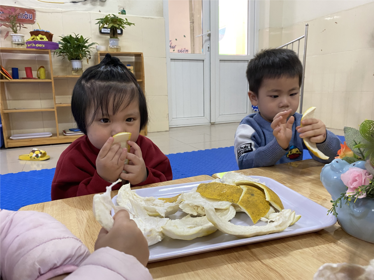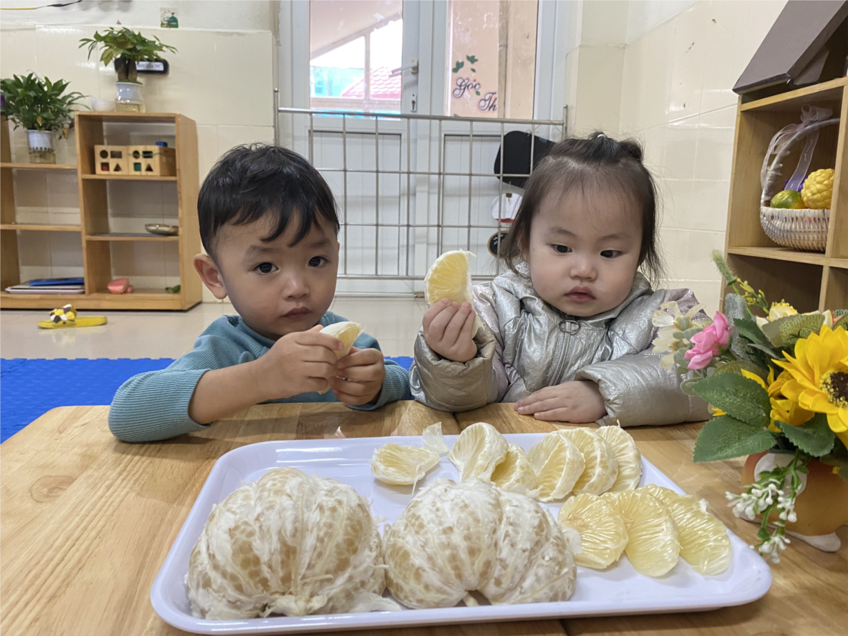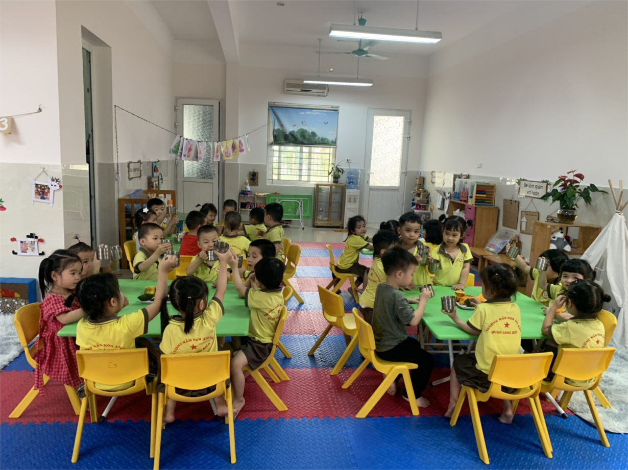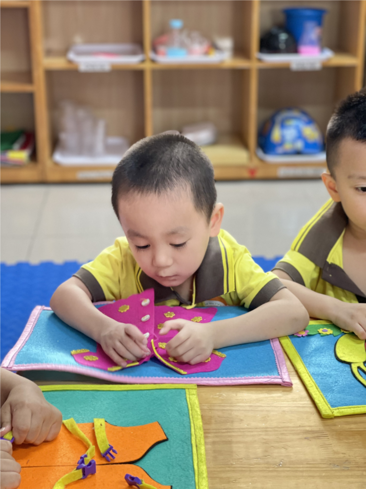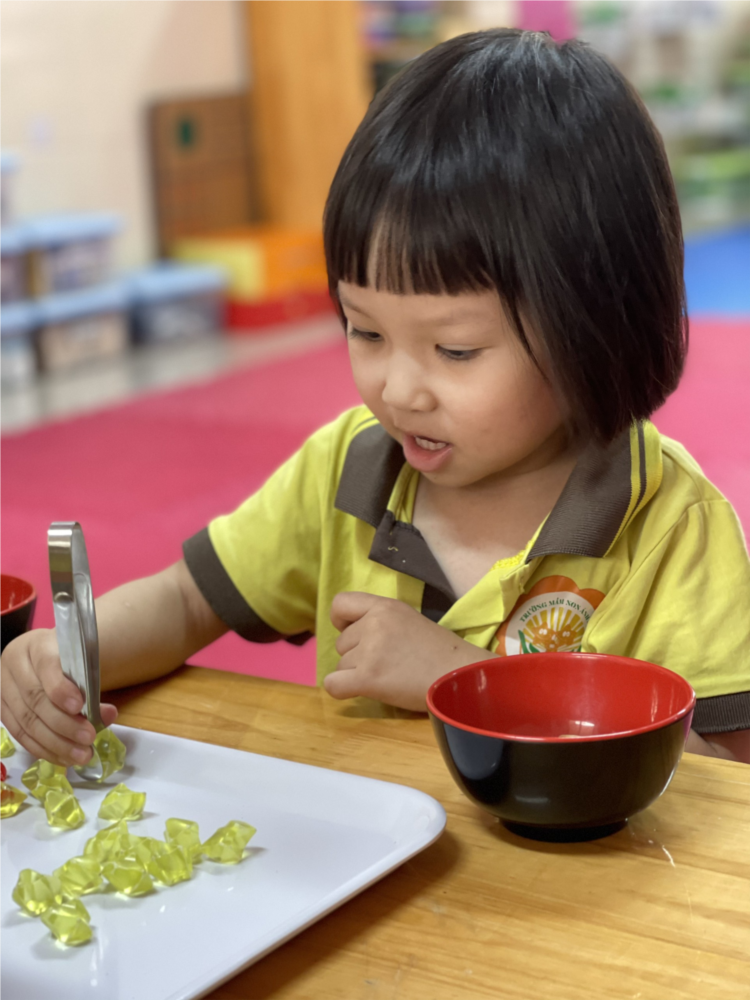 Hình ảnh các bé lớp MGN B1 với hoạt động kỹ năng thực hành cuộc sống.