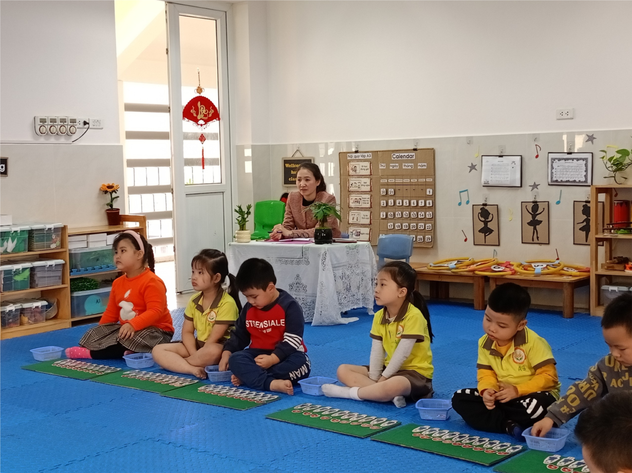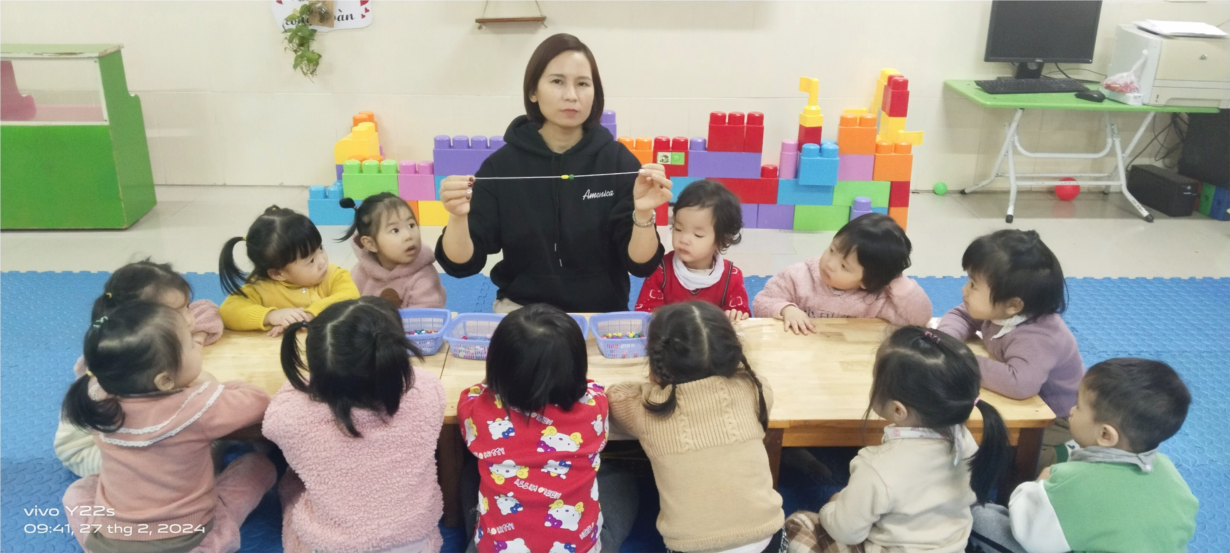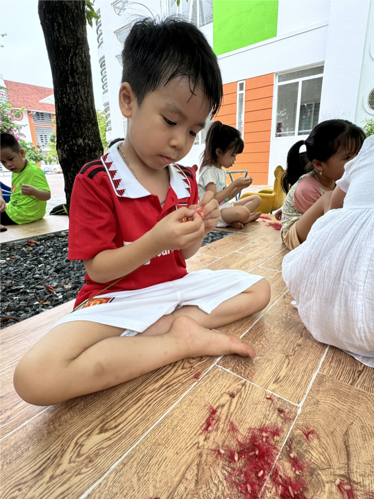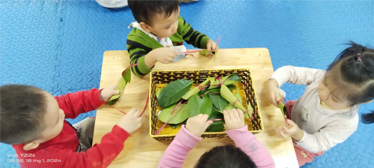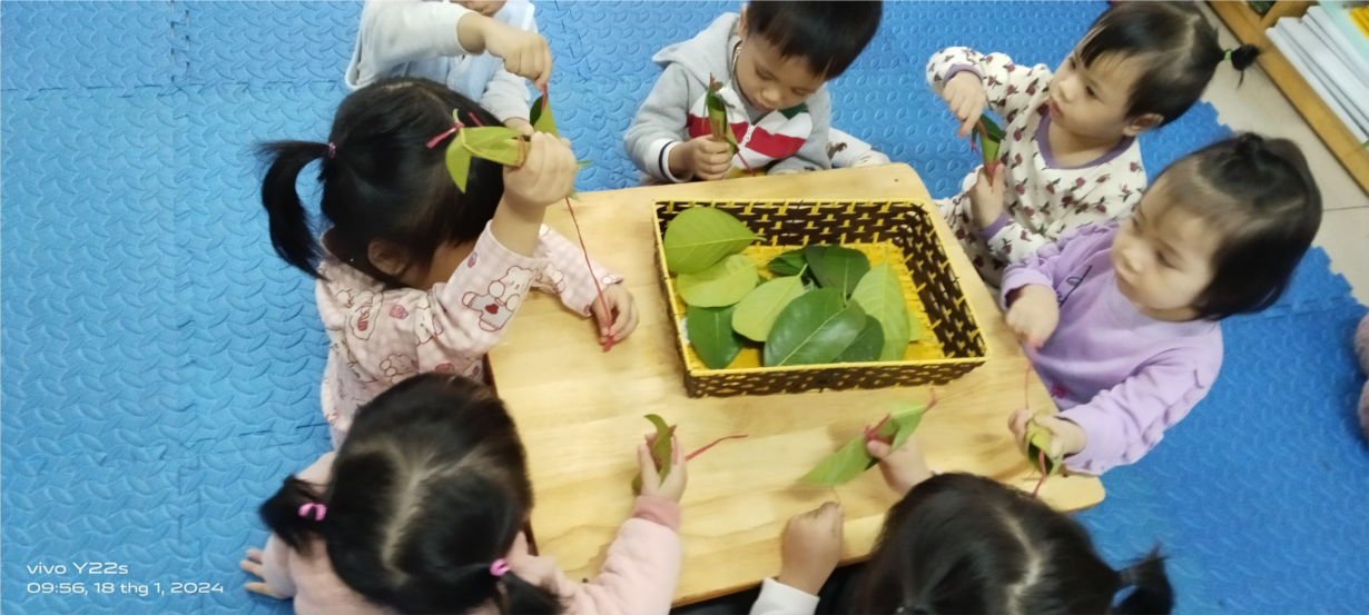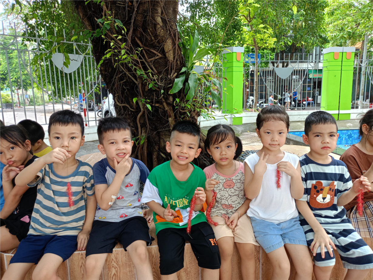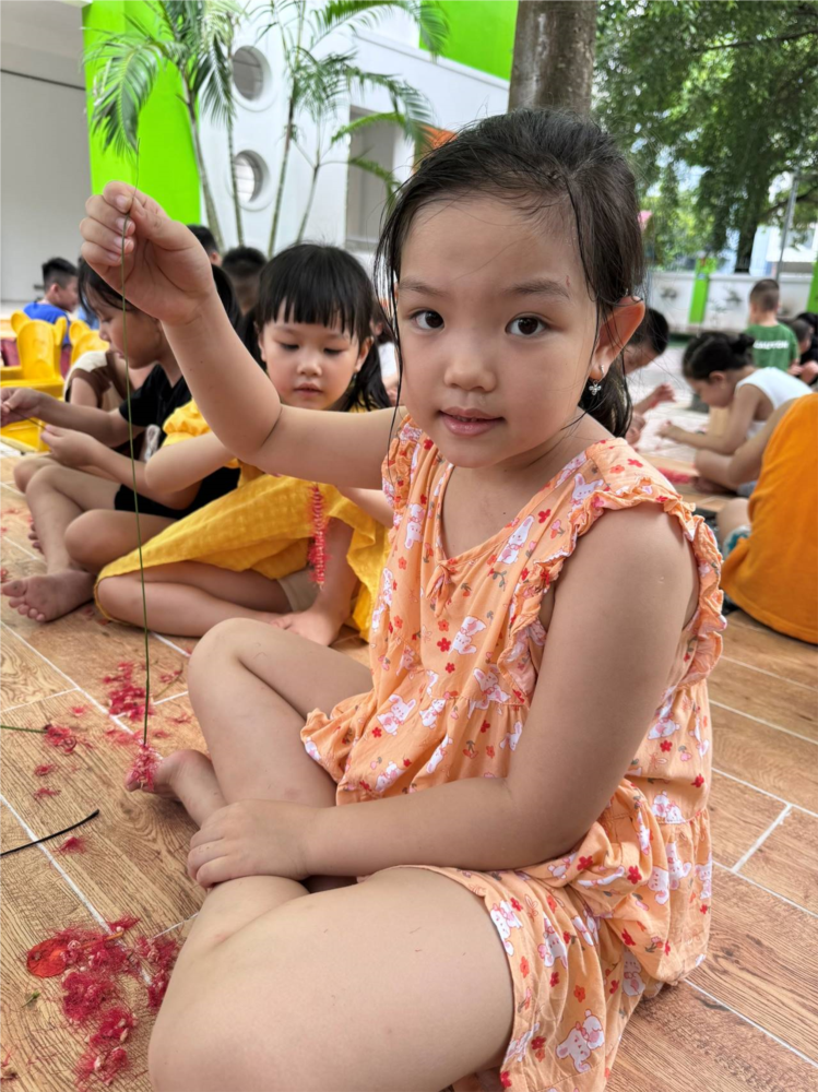 Các bé lớp MGL A4 xâu hoa lộc vừng