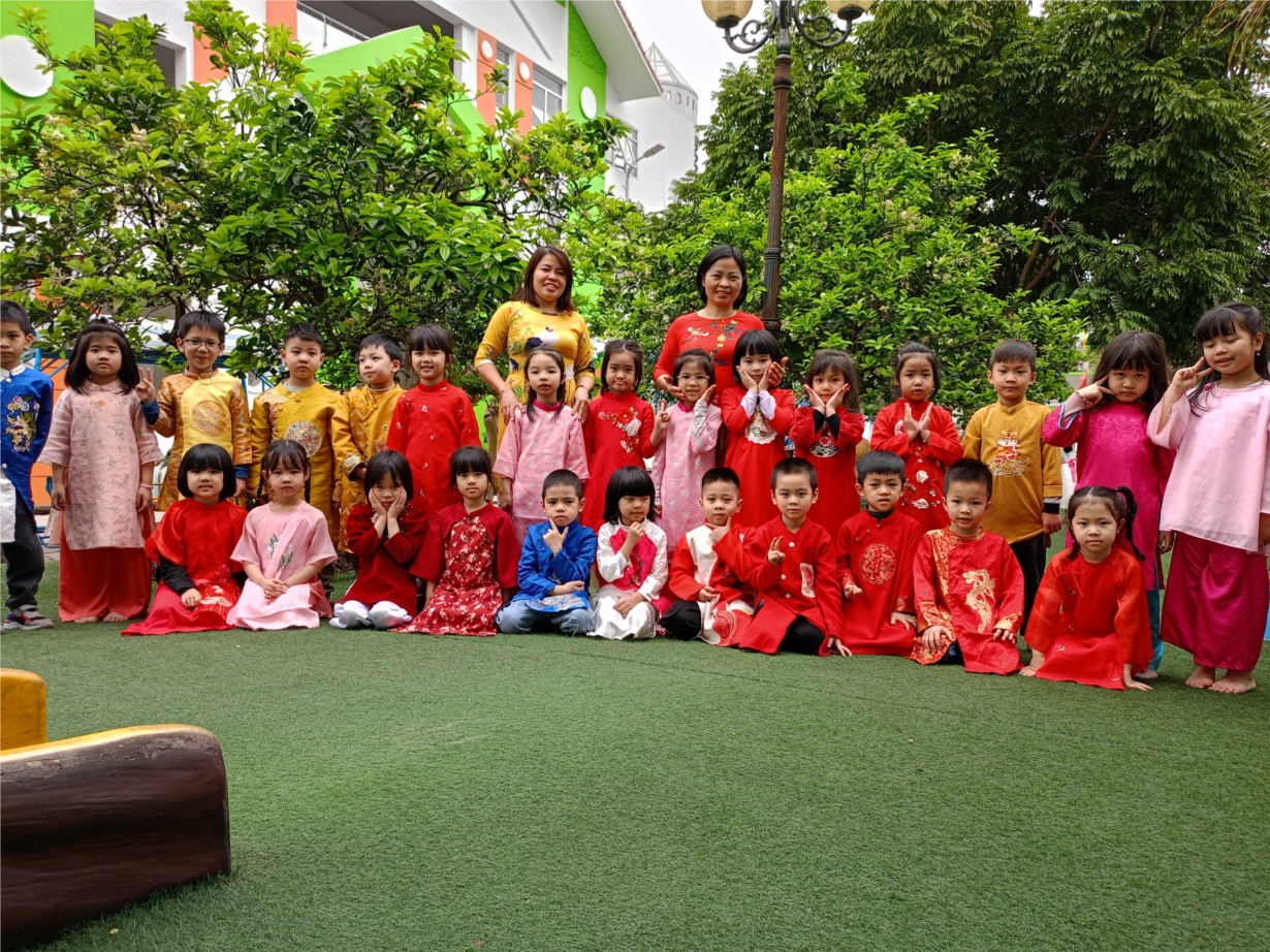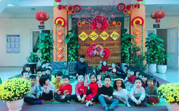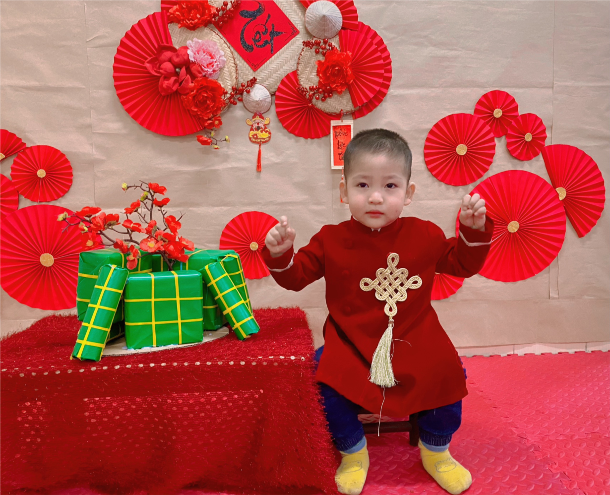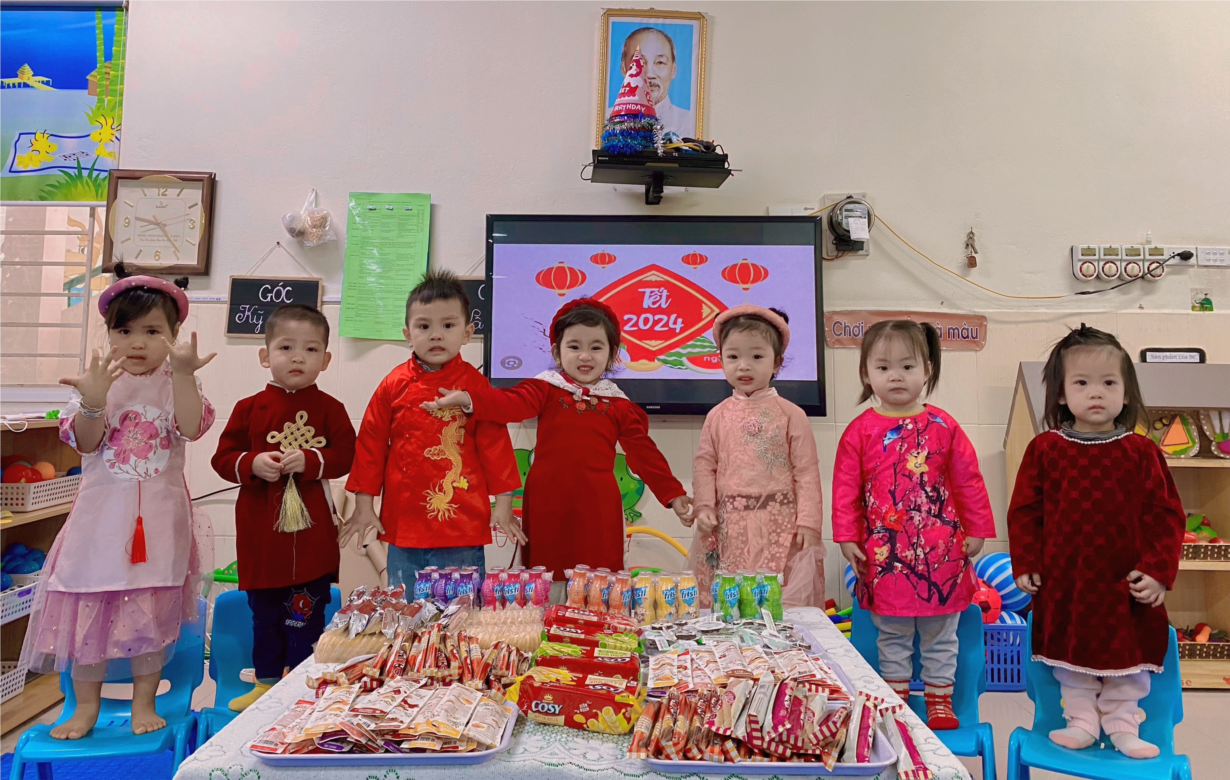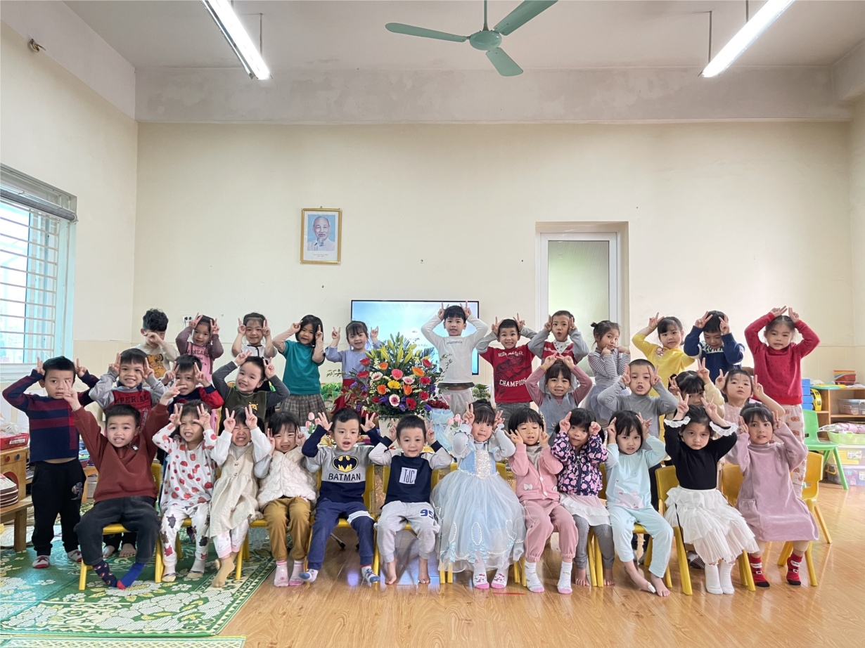 Hình ảnh các bé lớp mẫu giáo nhỡ B1 vui đón xuân.