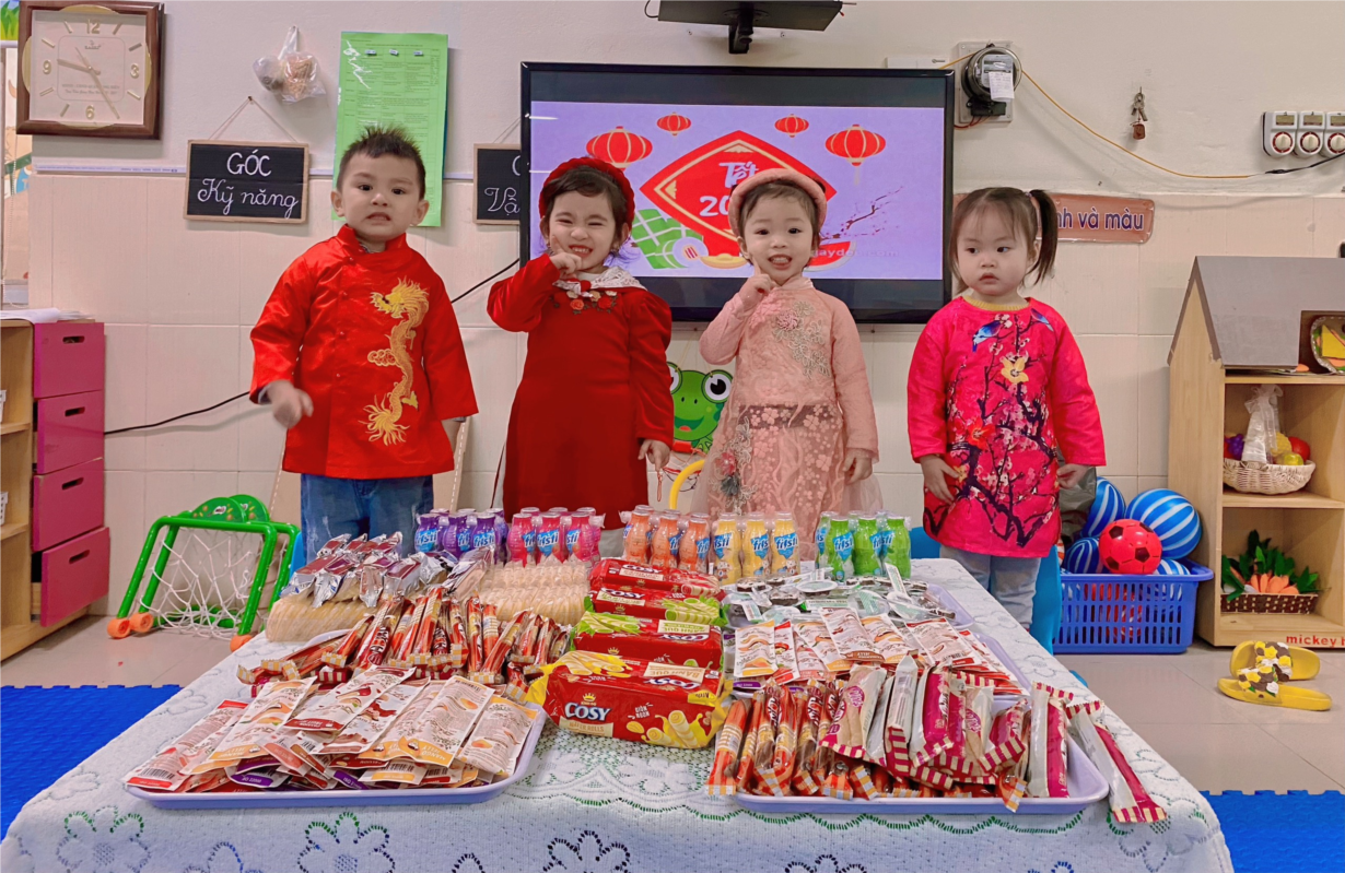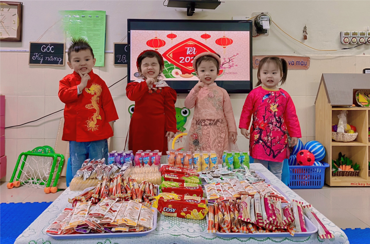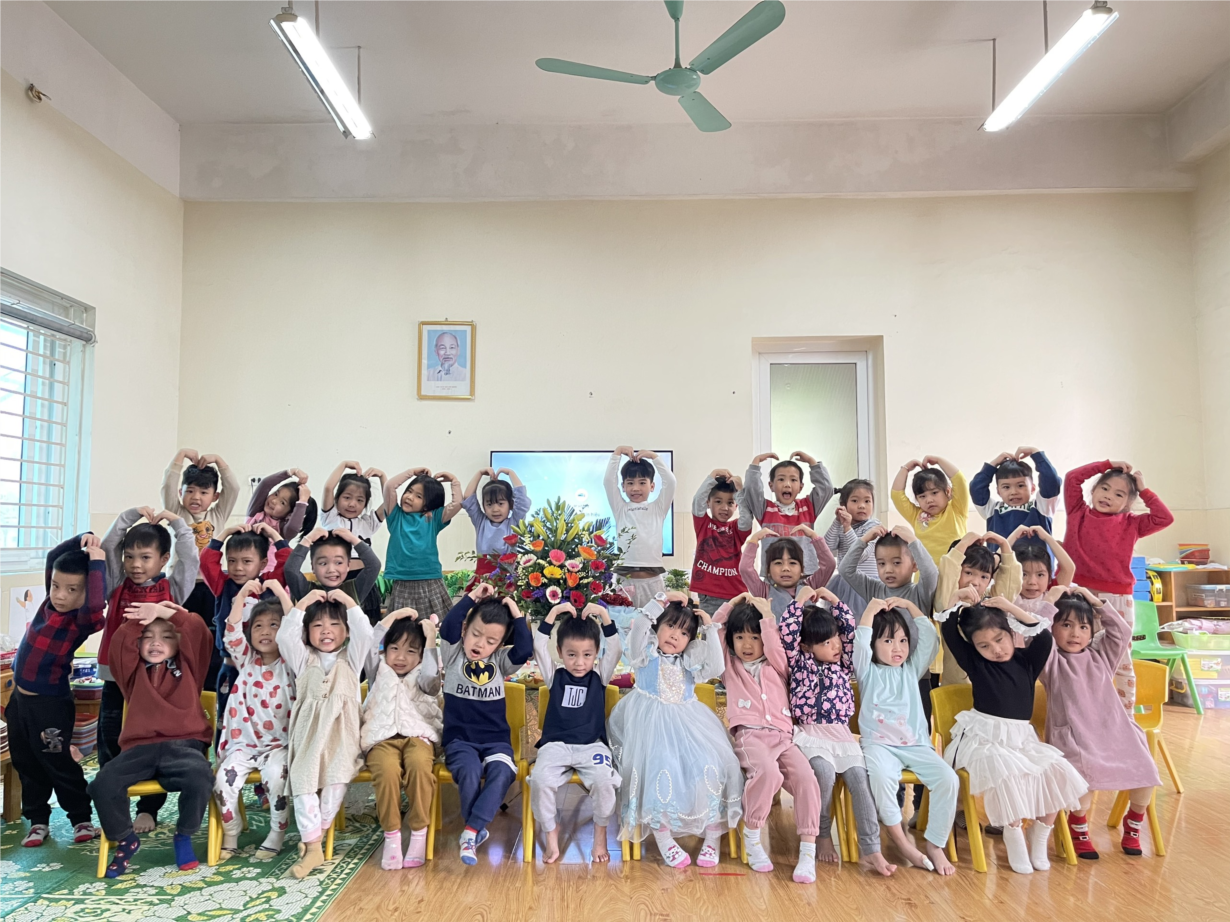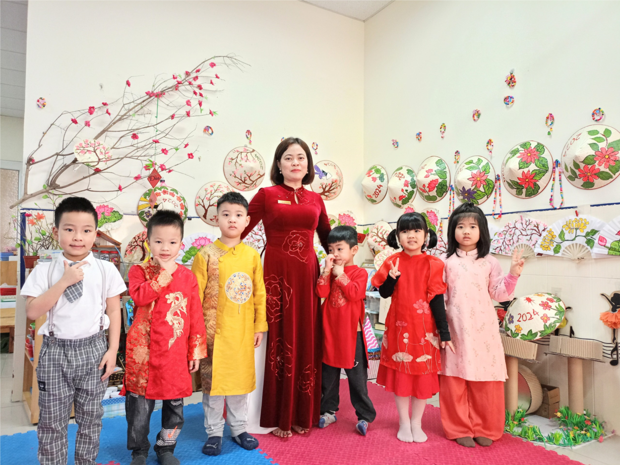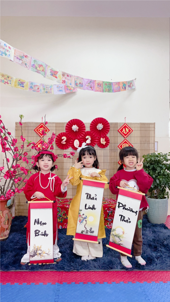 Hình ảnh các bé lớp mẫu giáo nhỡ B1 vui đón xuân.