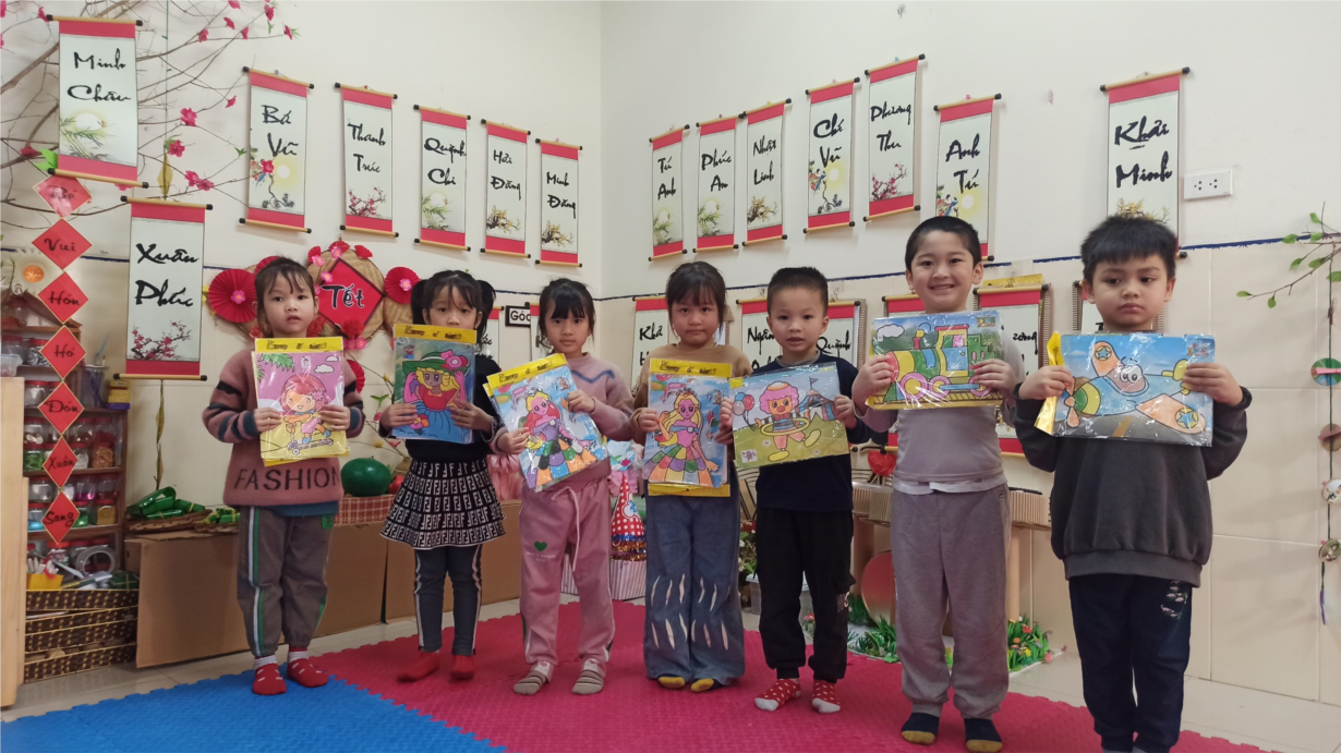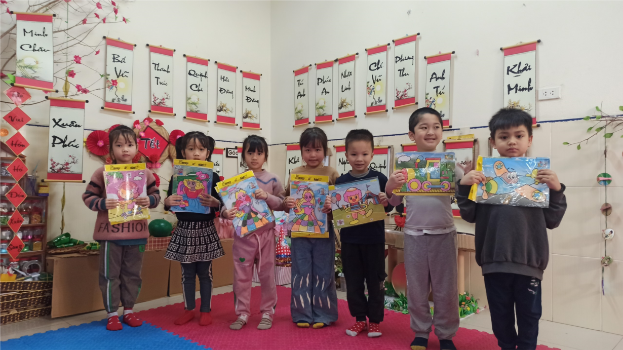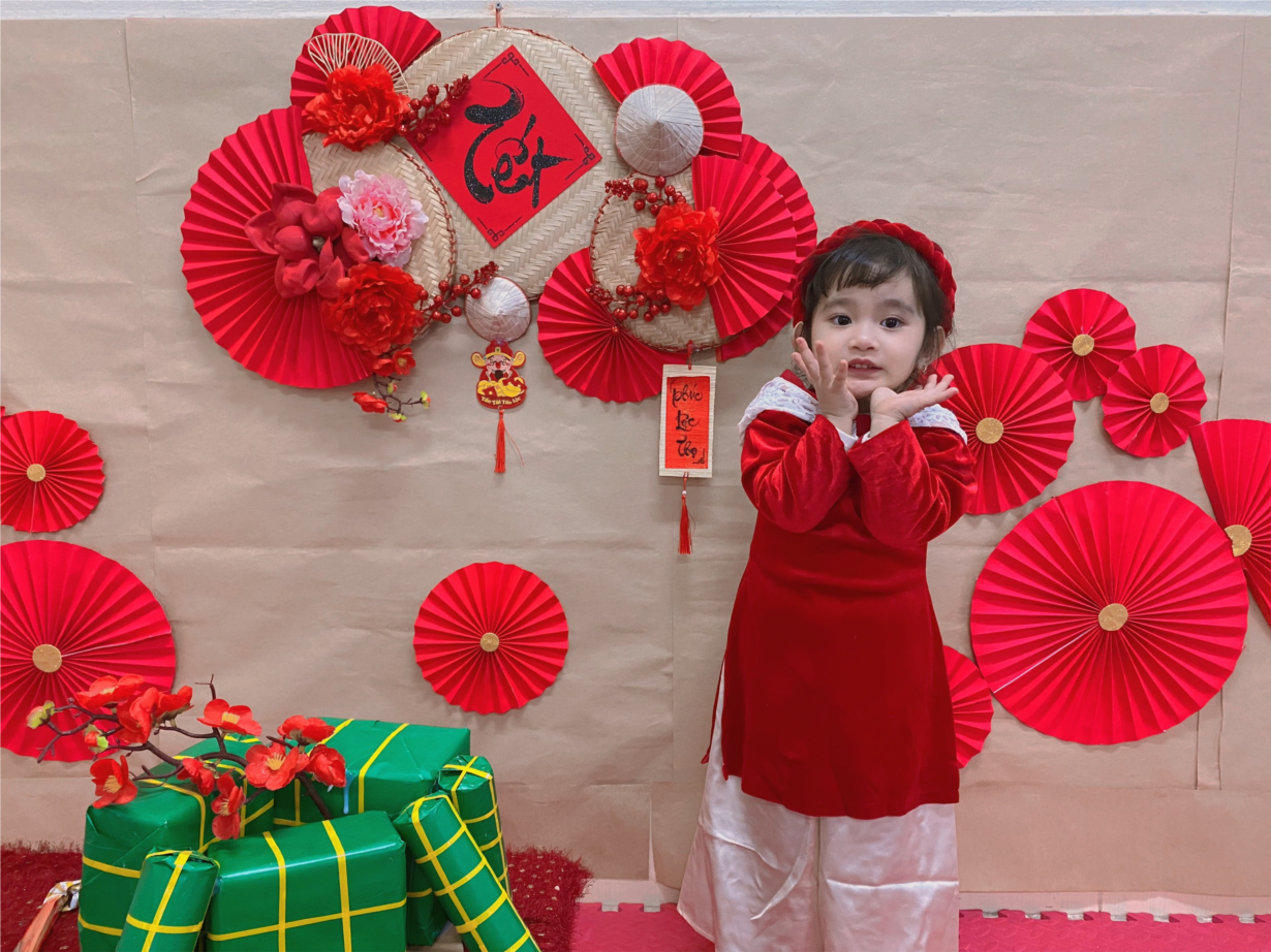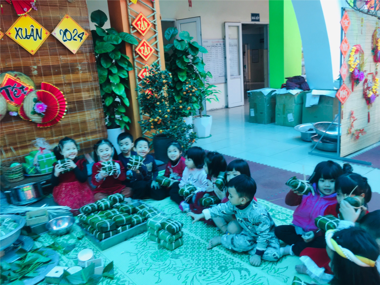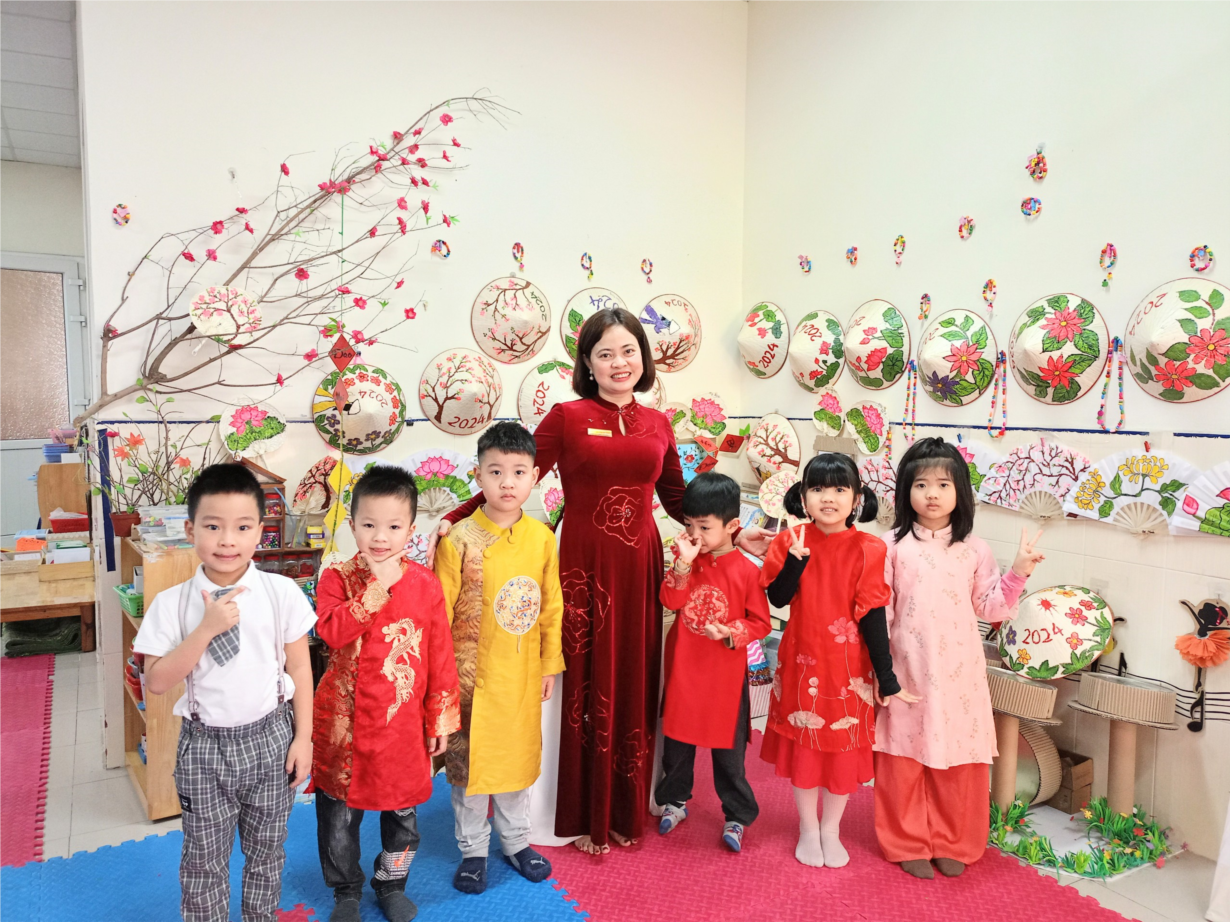 Hình ảnh các bé lớp mẫu giáo nhỡ B1 vui đón xuân.