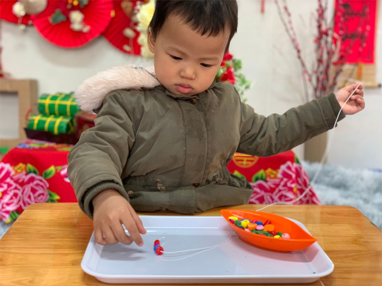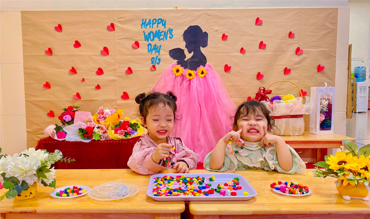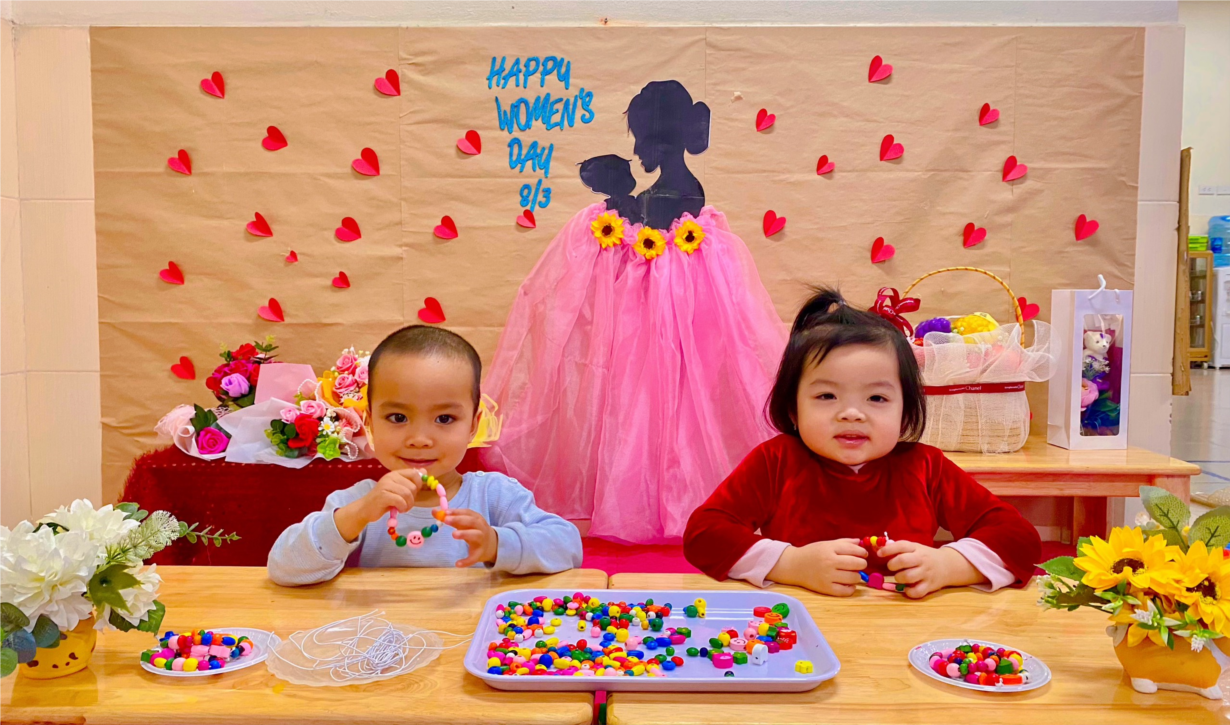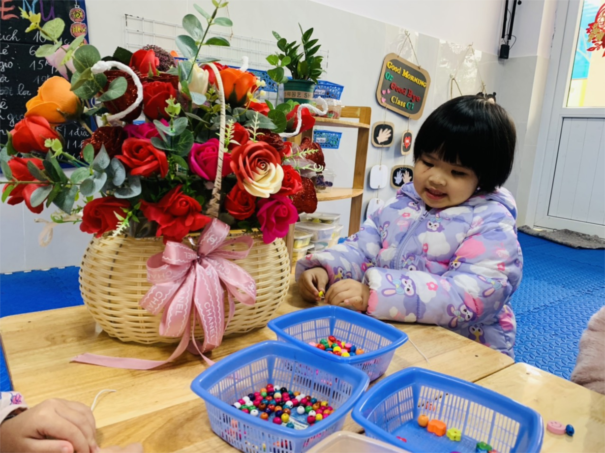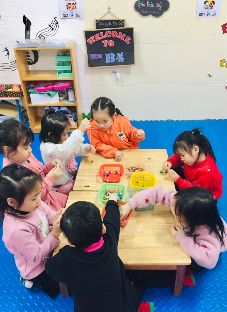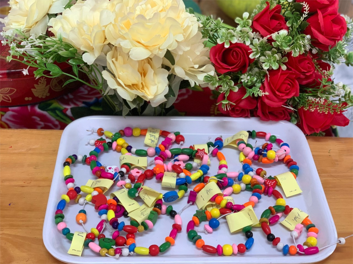 Các bé MGN B4 xâu vòng làm quà tặng bà và mẹ nhân ngày 8/3