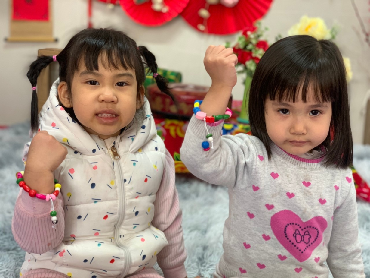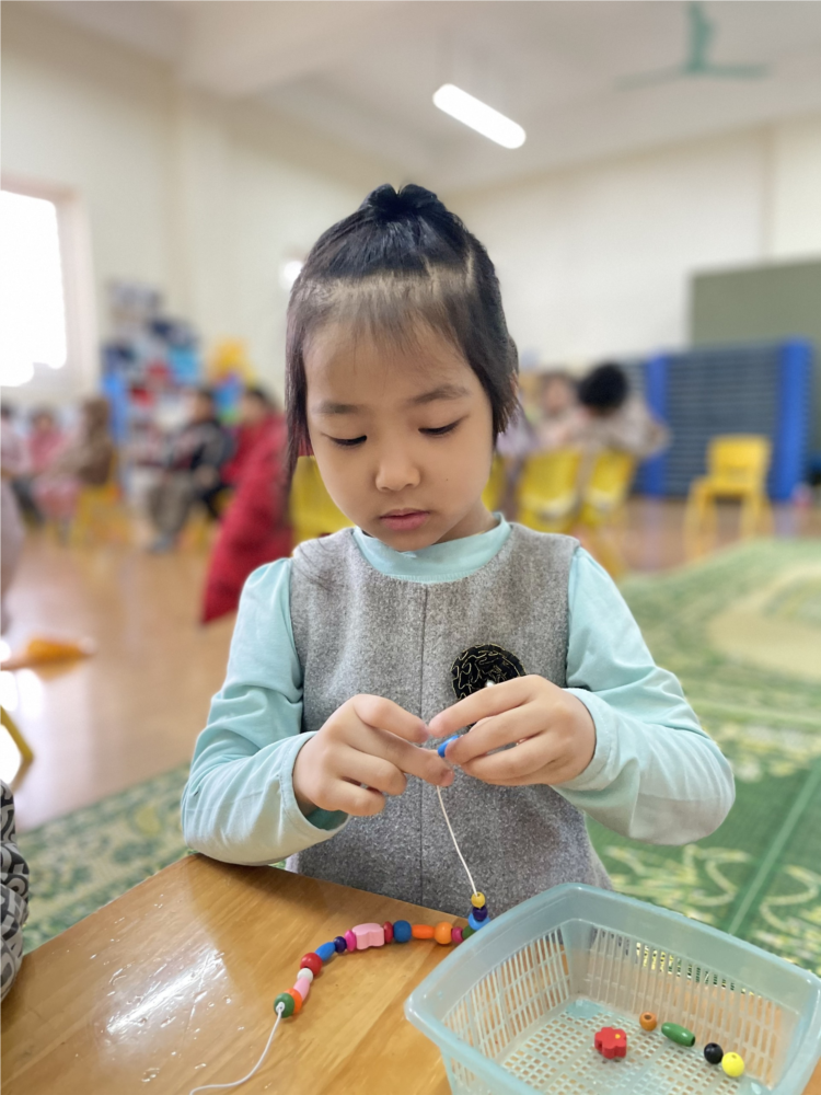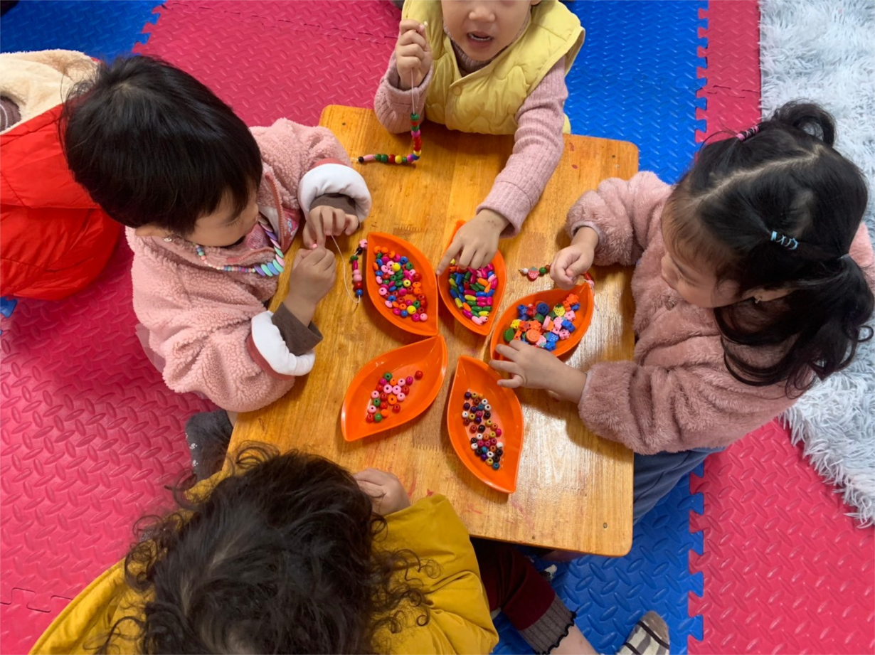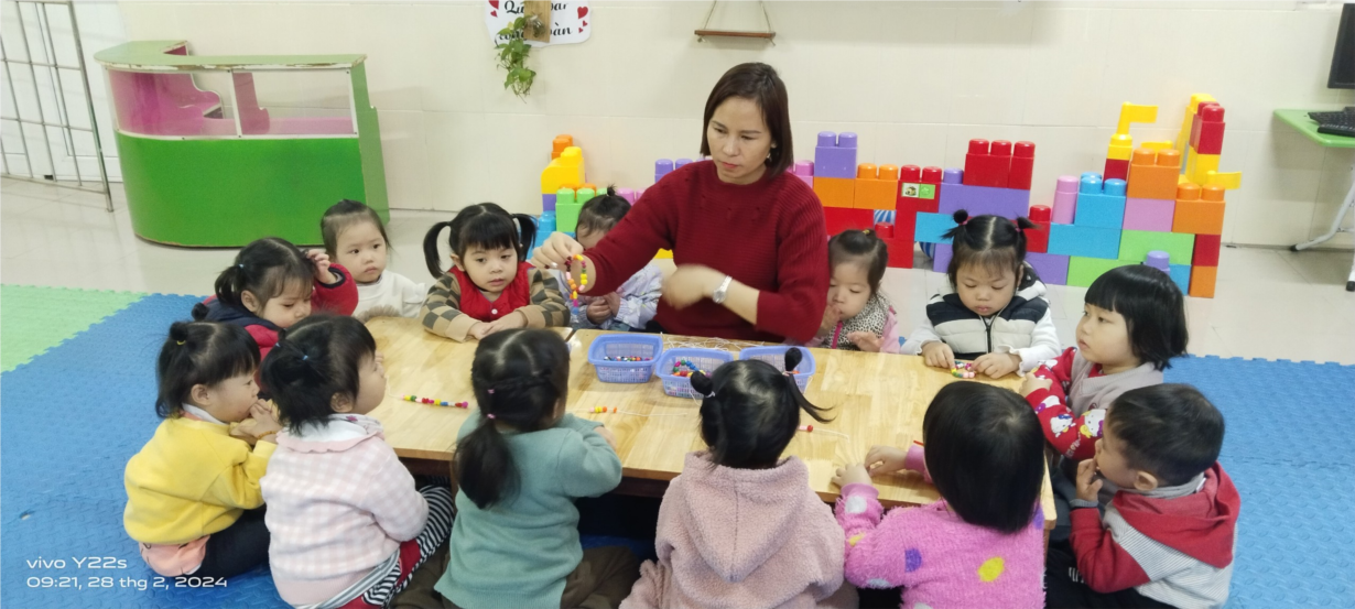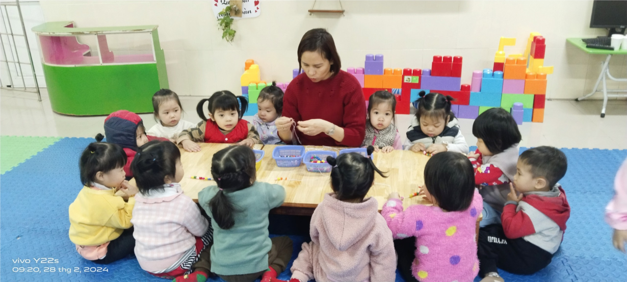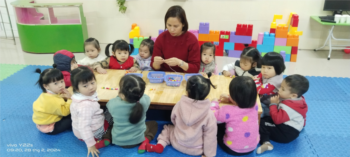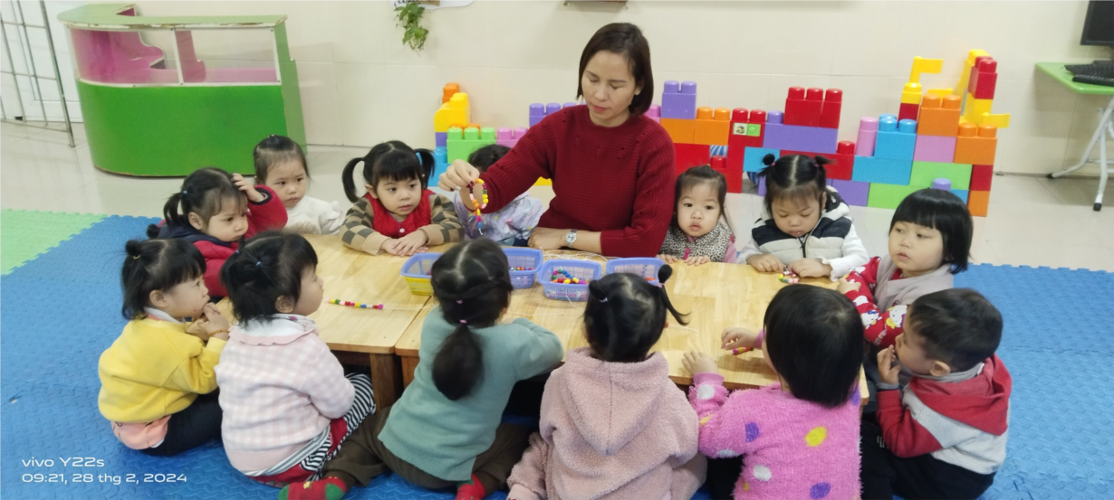 Các bé MGN B4 xâu vòng làm quà tặng bà và mẹ nhân ngày 8/3