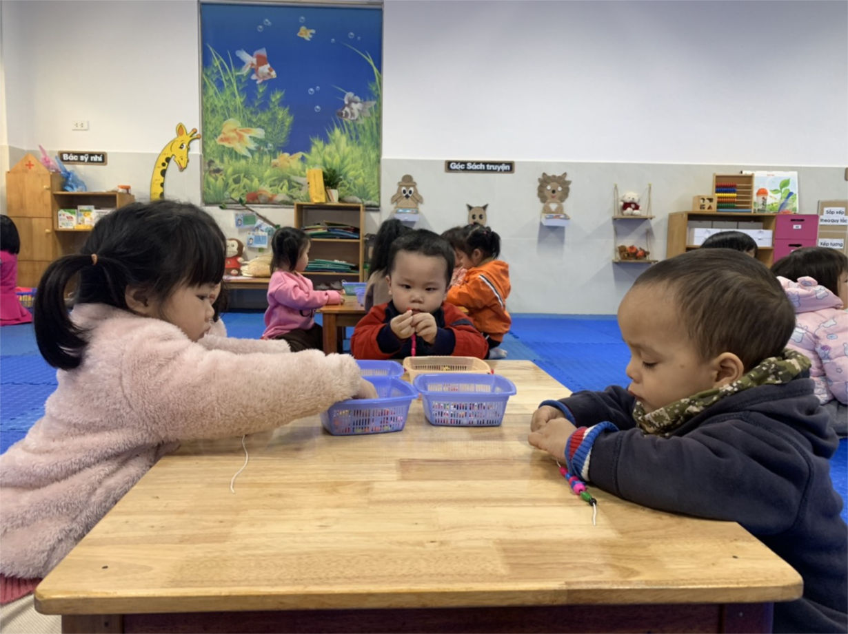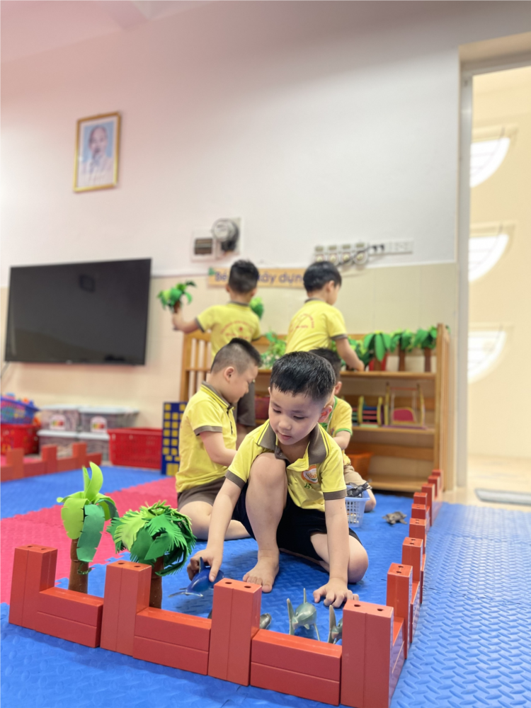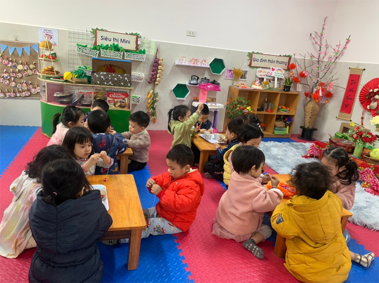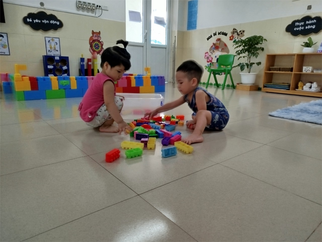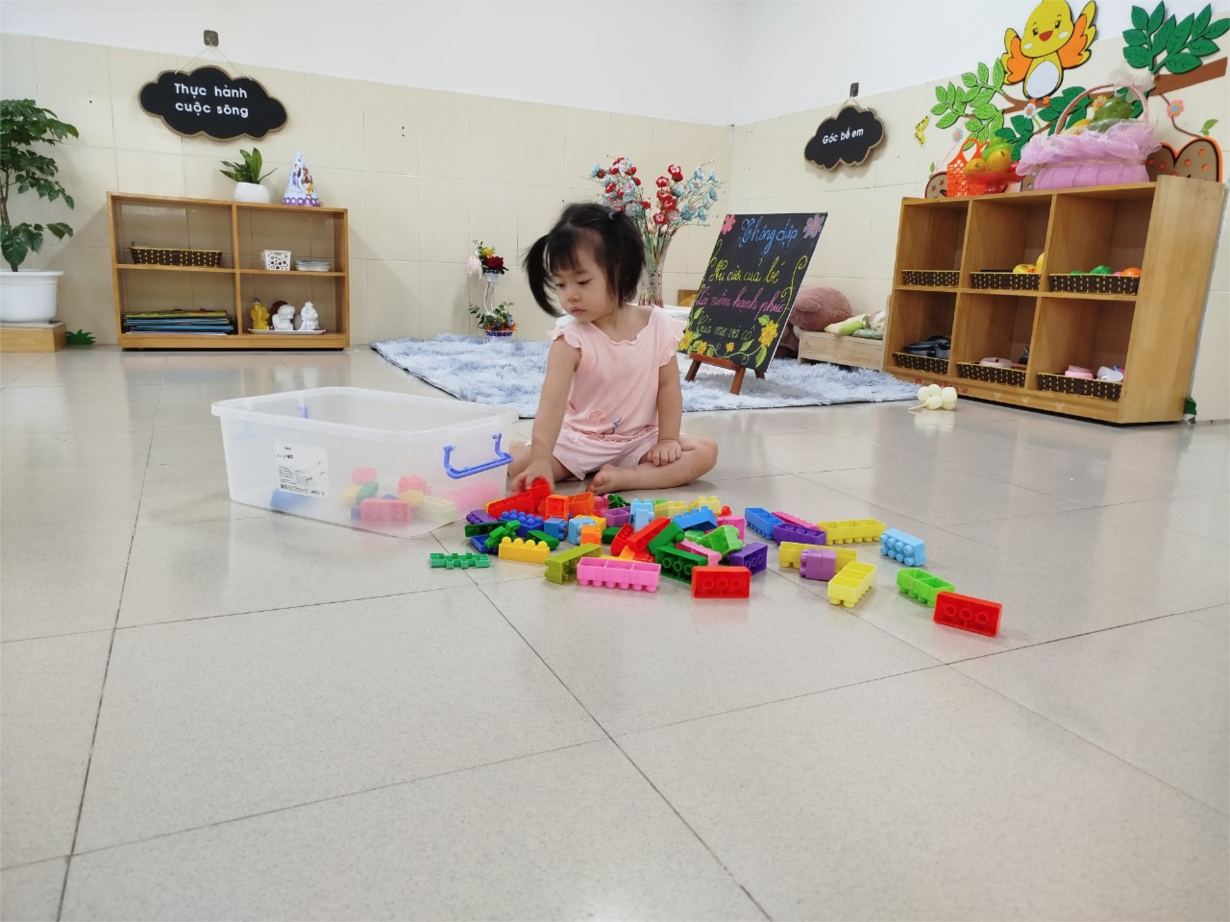 Hình ảnh các bé lớp MGN B1 với giờ hoạt động góc.