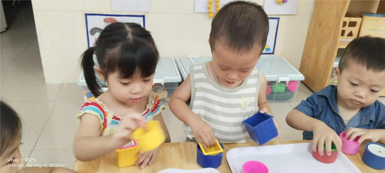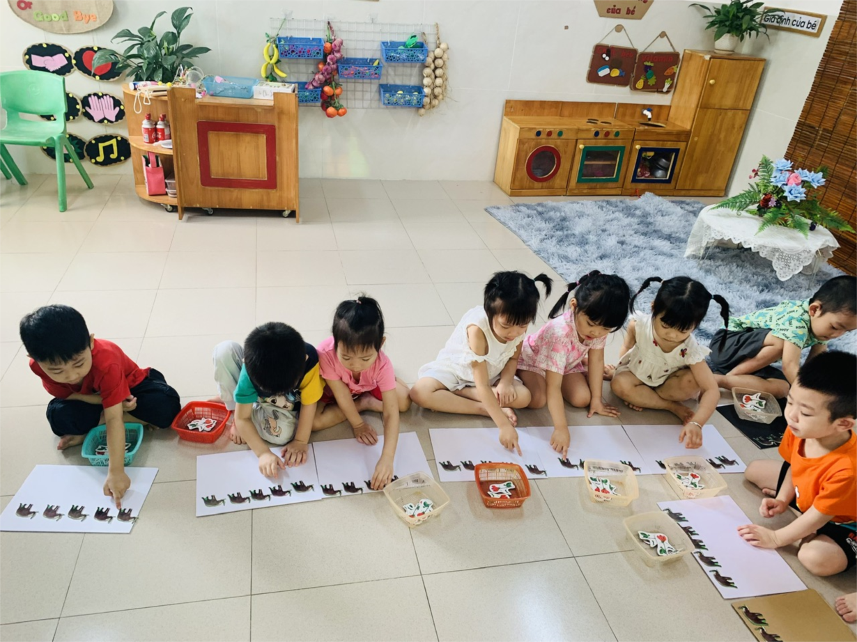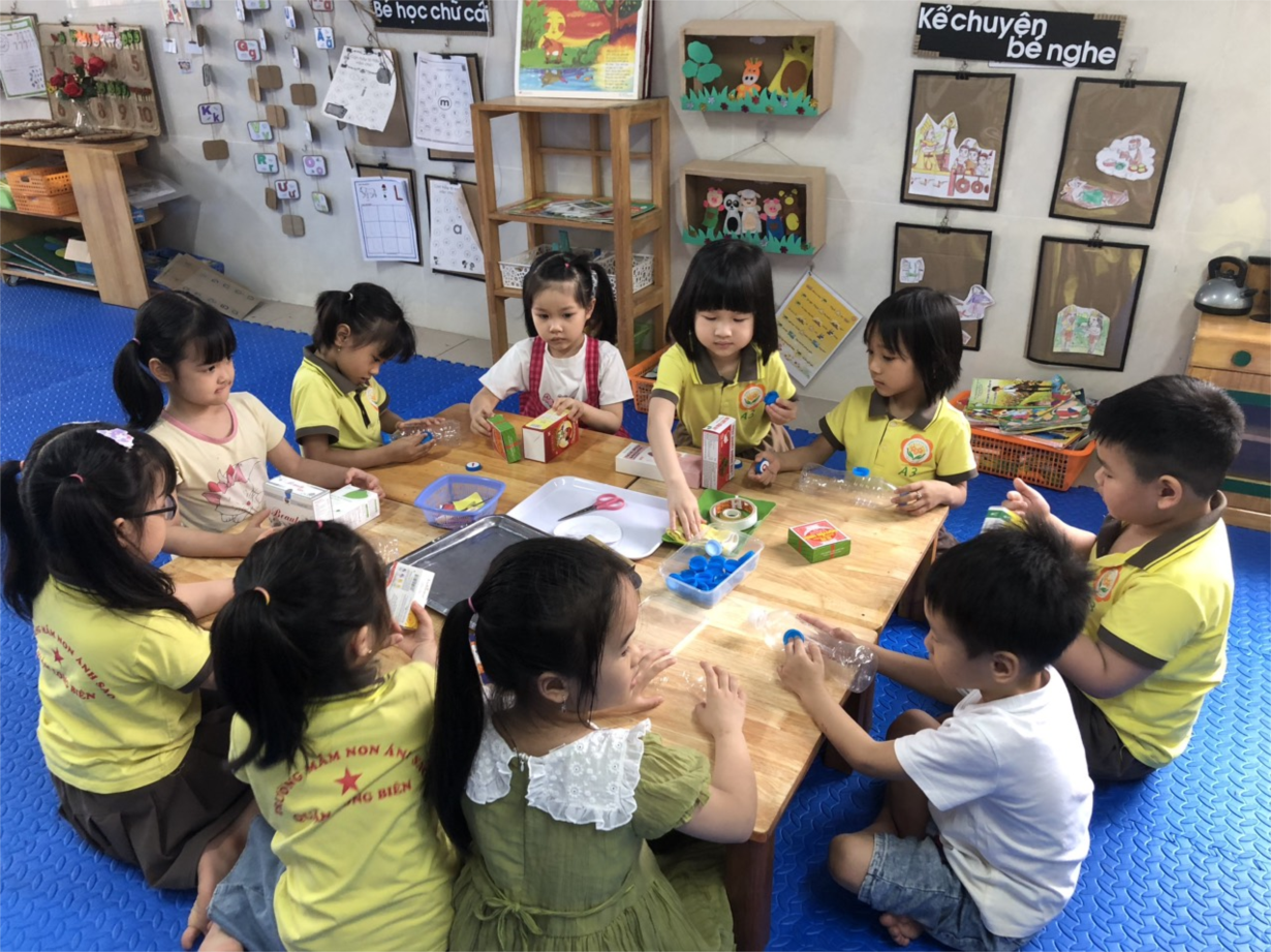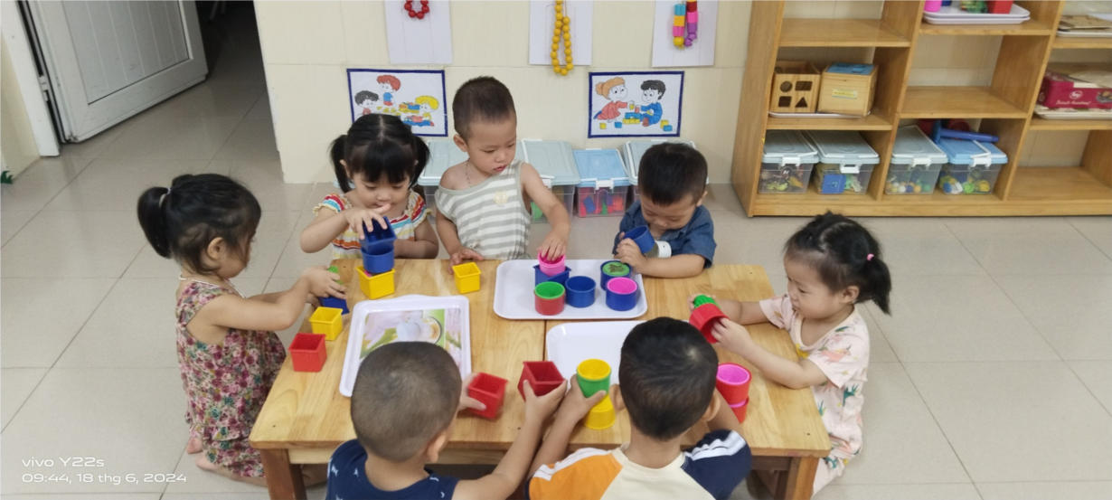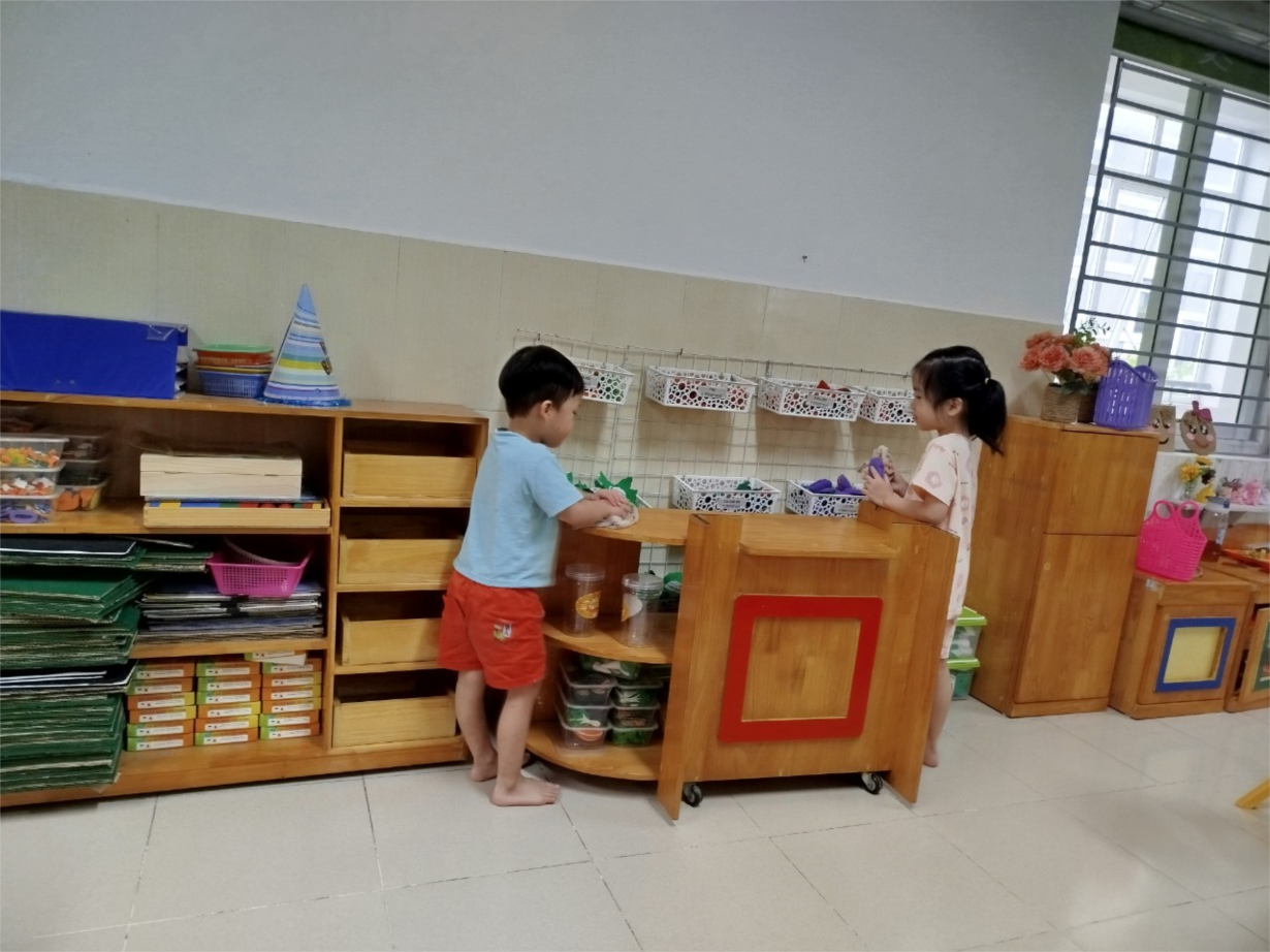Hình ảnh các bé lớp MGN B1 với giờ hoạt động góc.