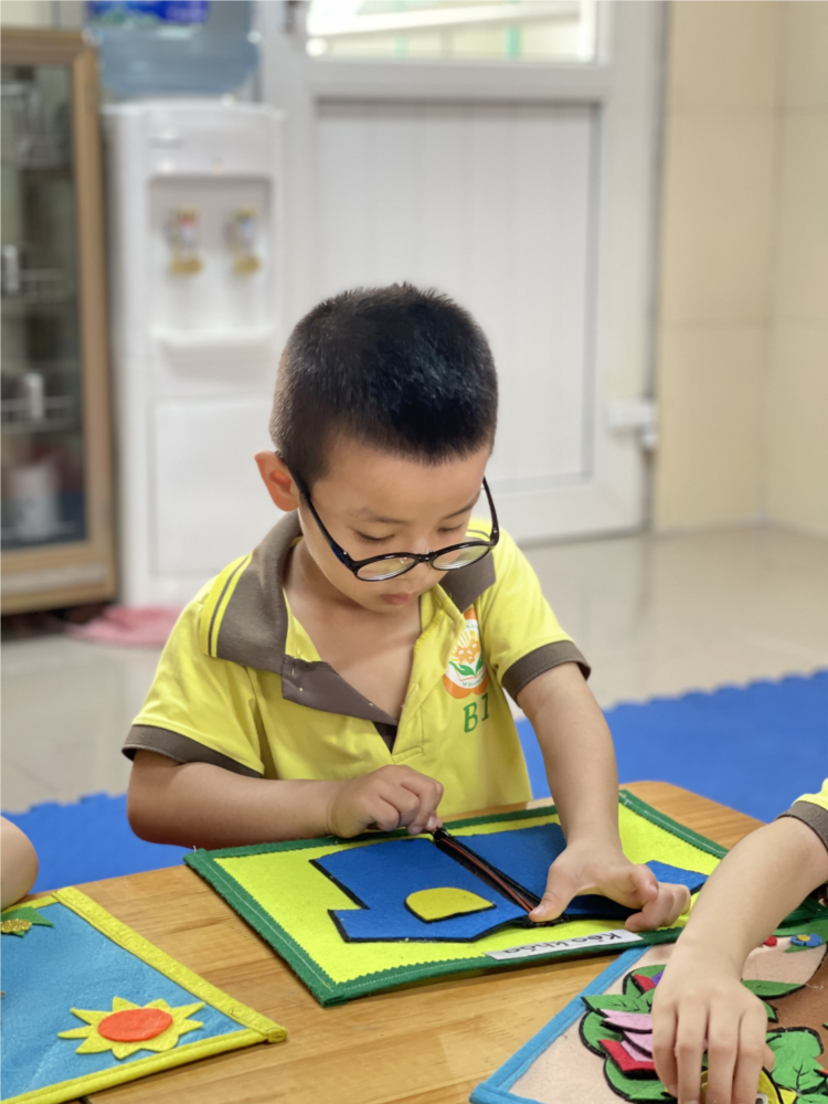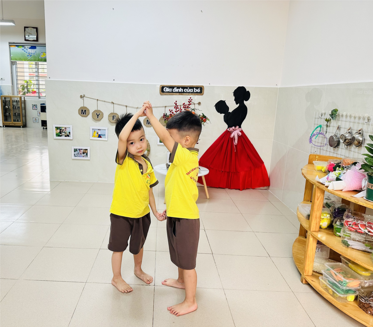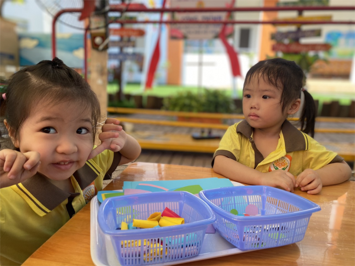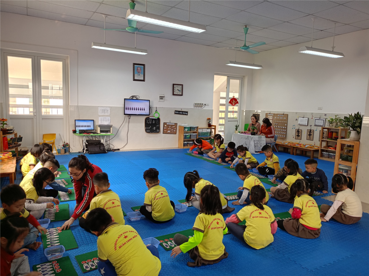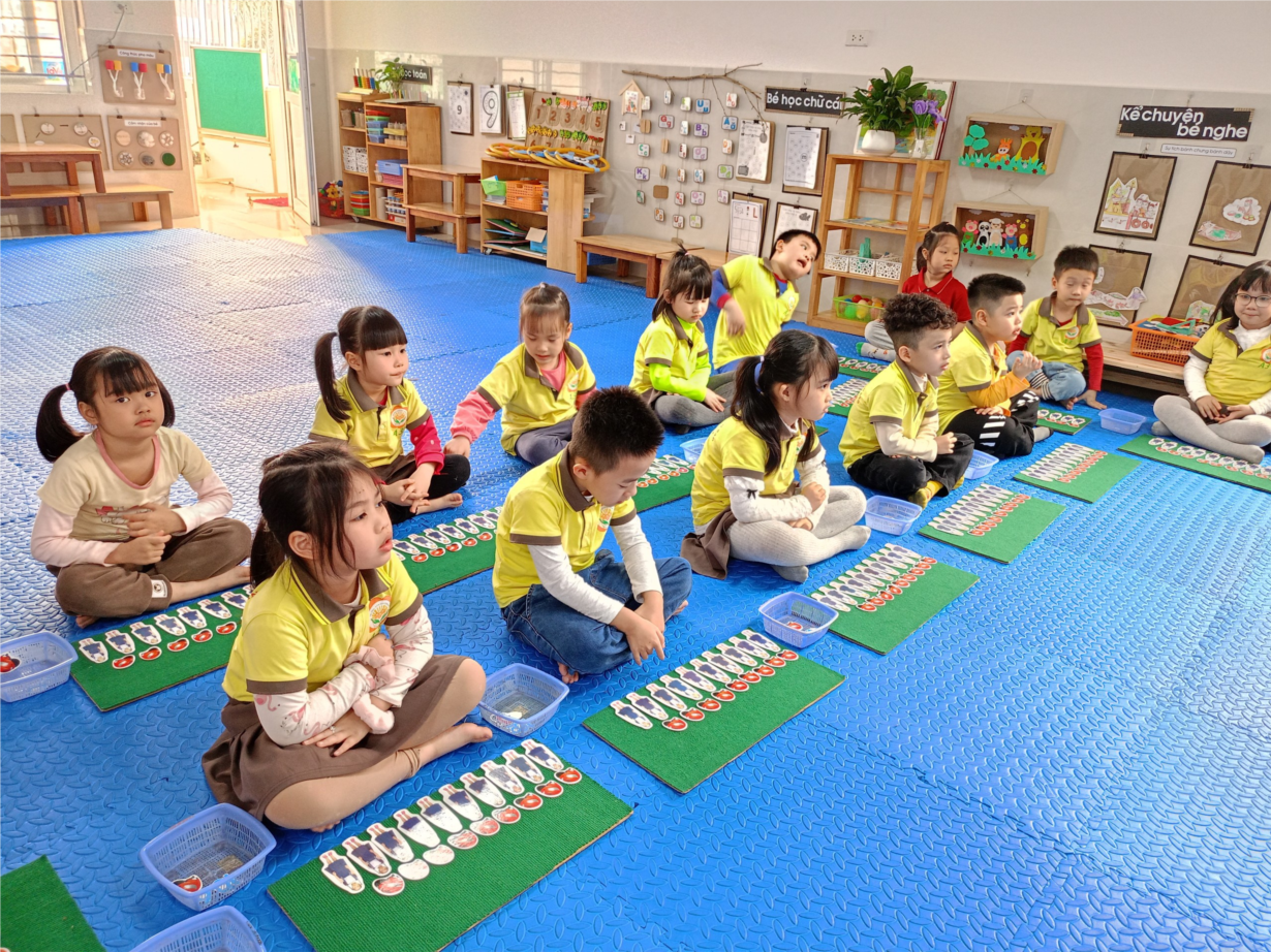 Hình ảnh các bé lớp MGN B1 với giờ hoạt động góc.