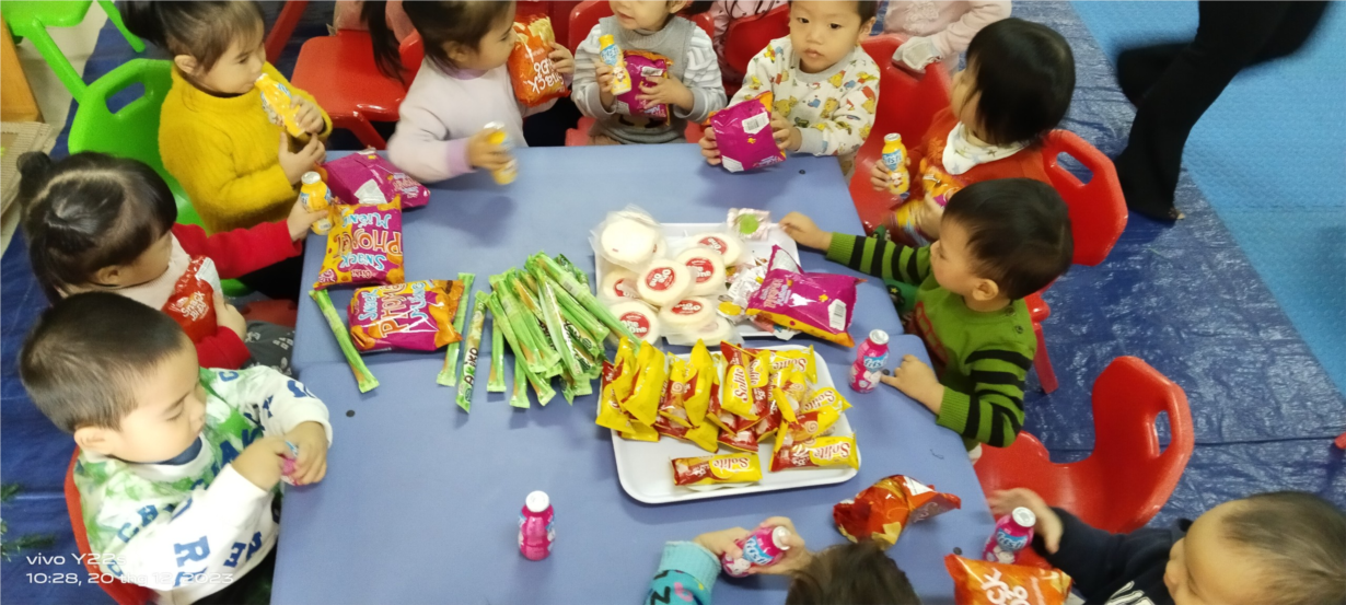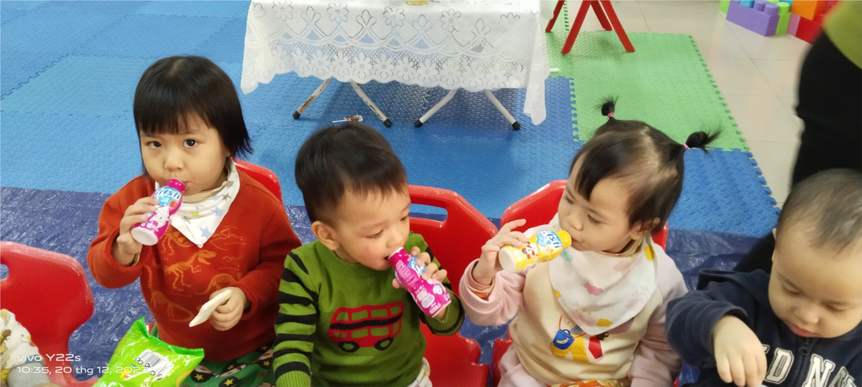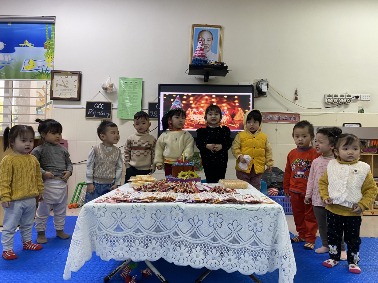 Hình ảnh các bé lớp mẫu giáo nhỡ B1 tham gia tiệc tất niên mừng năm mới.