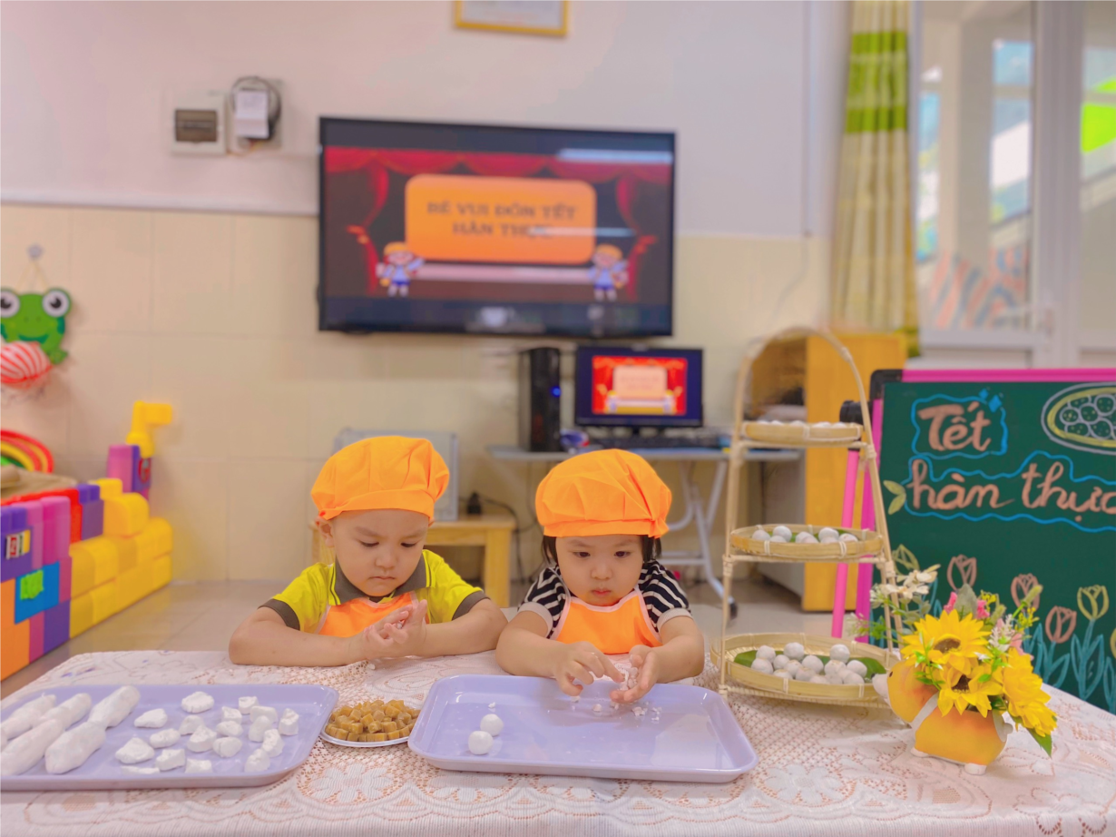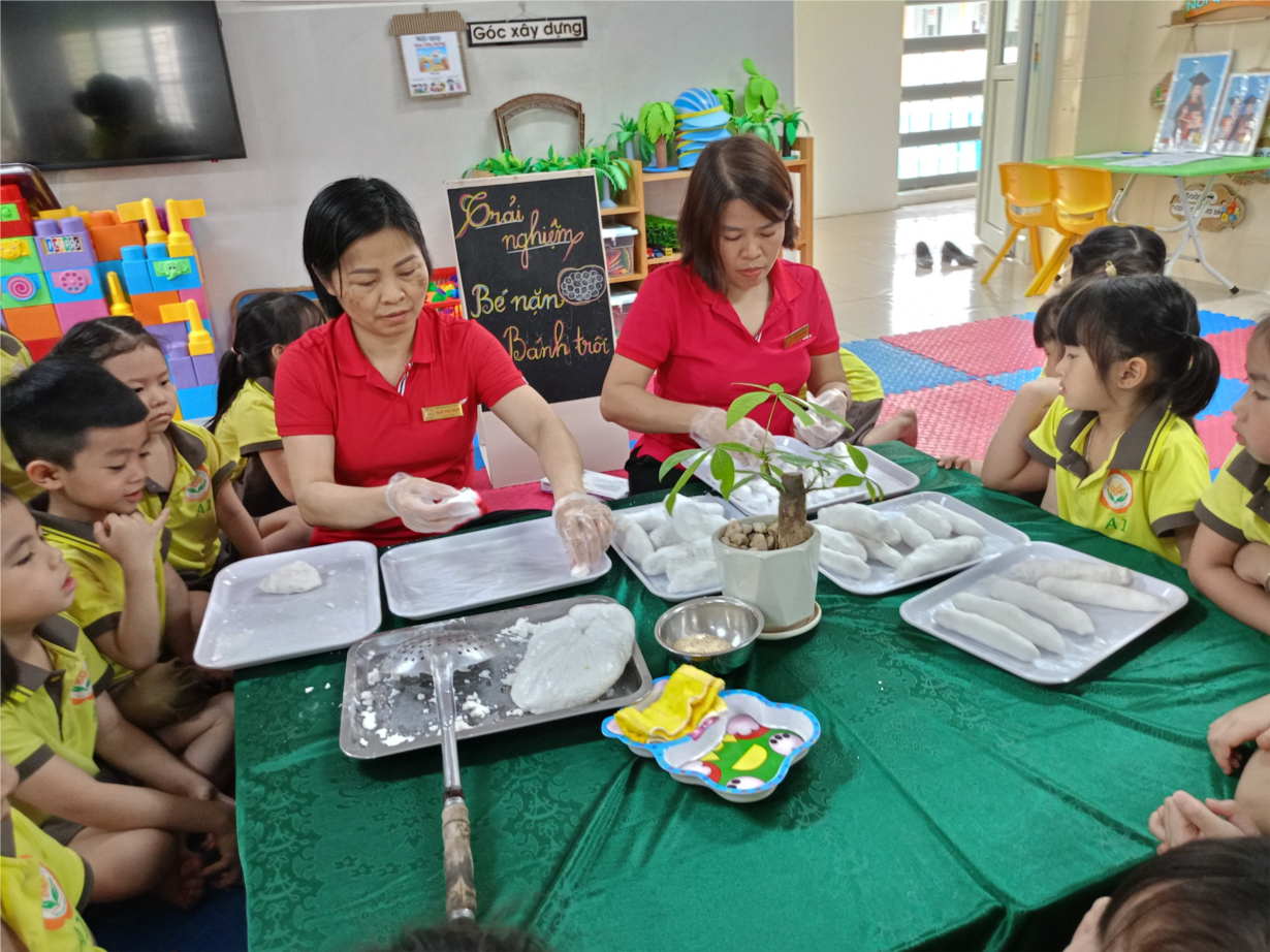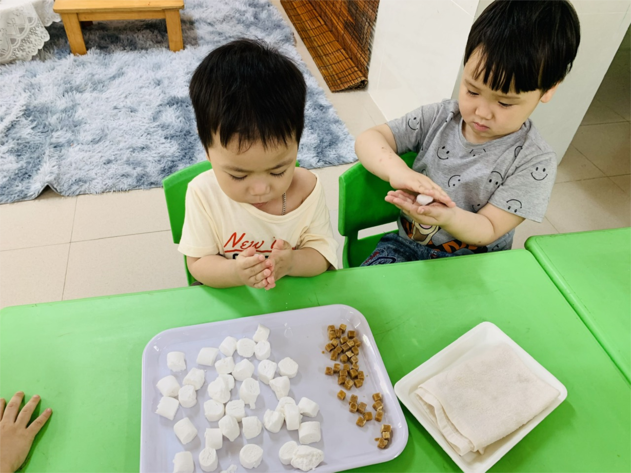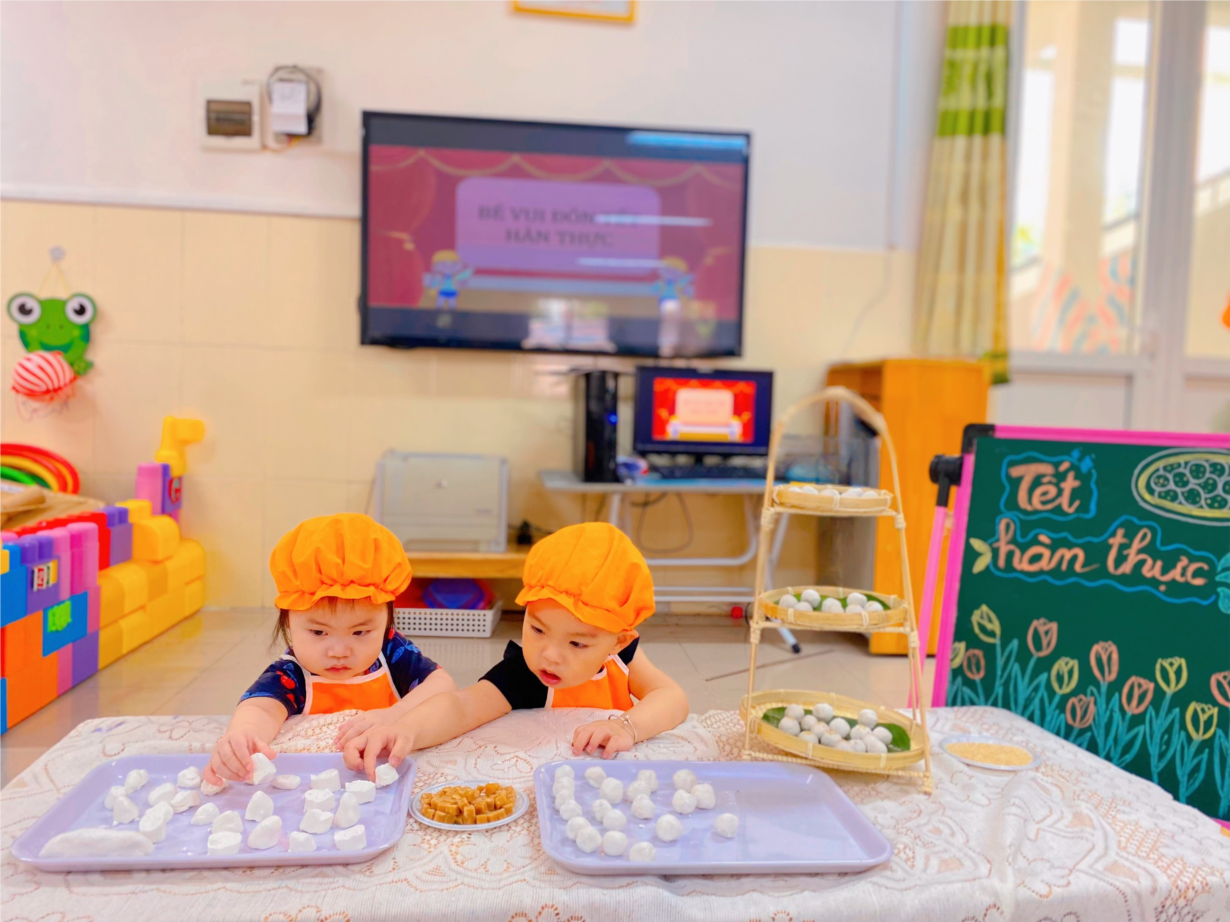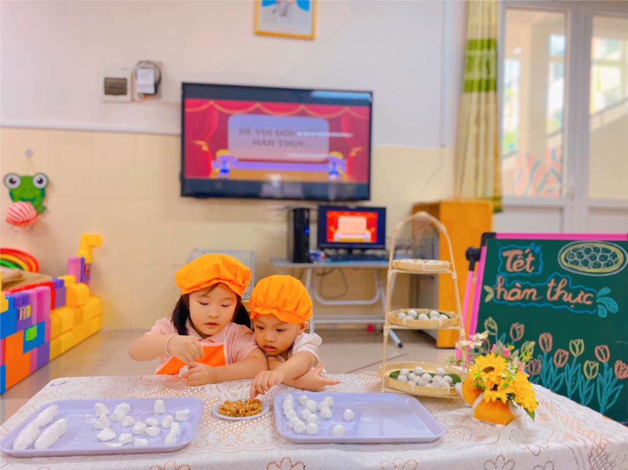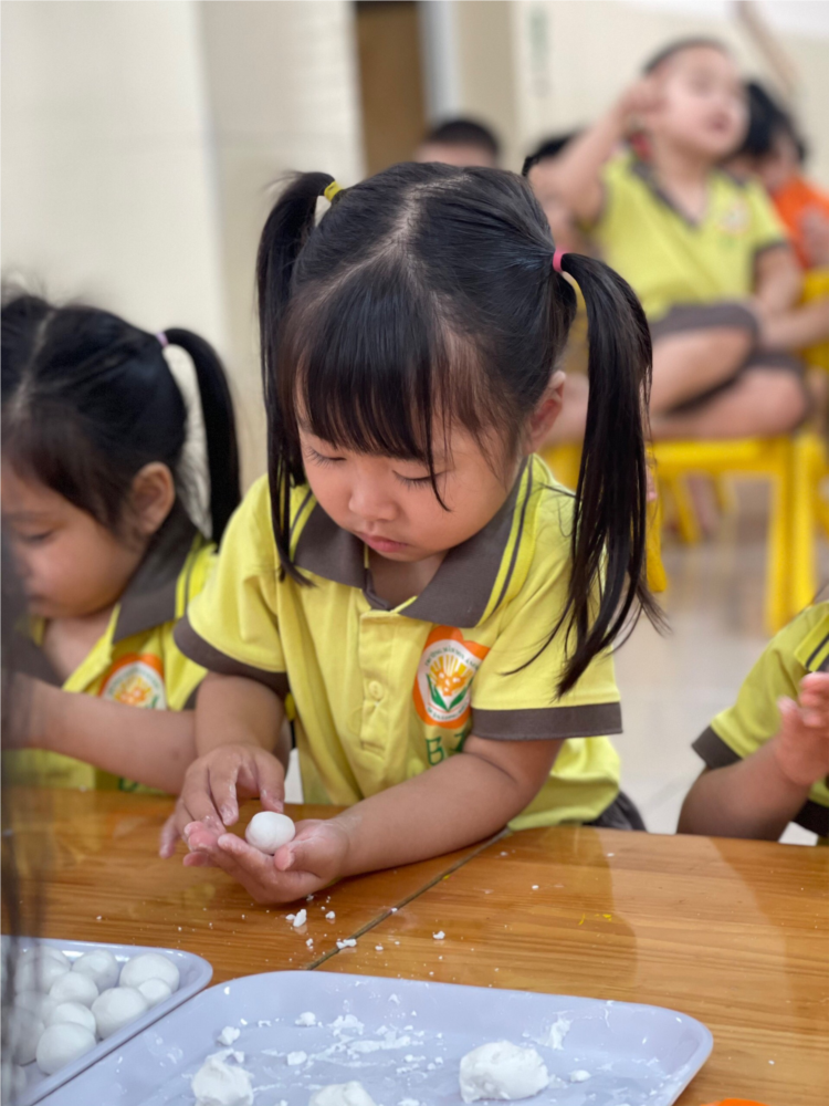Các bé MGN B4 nặn bánh trôi ngày tết Hàn Thực