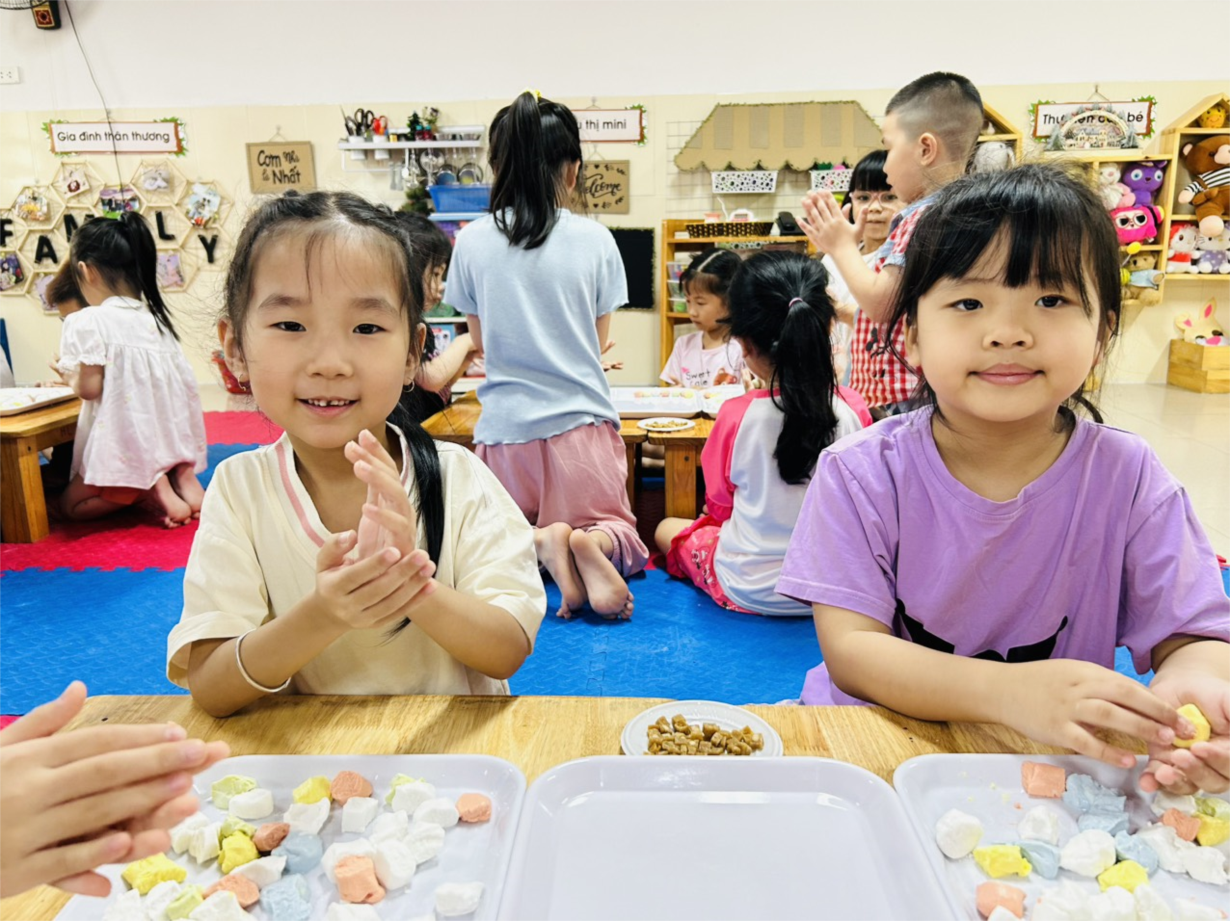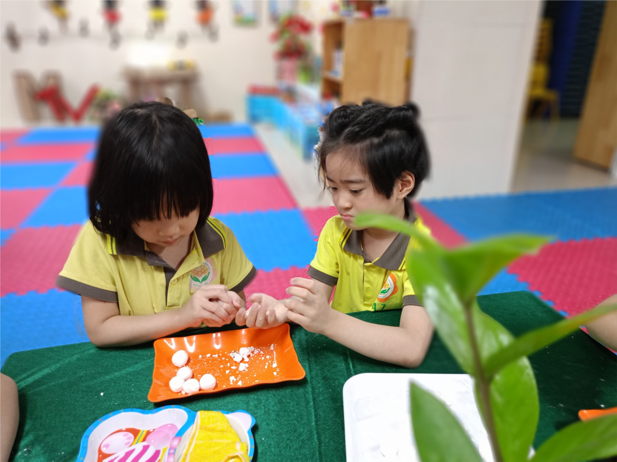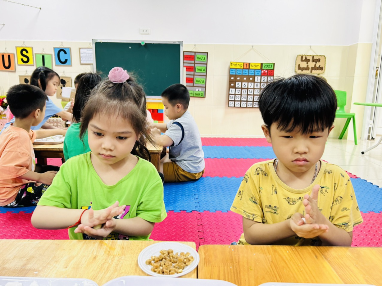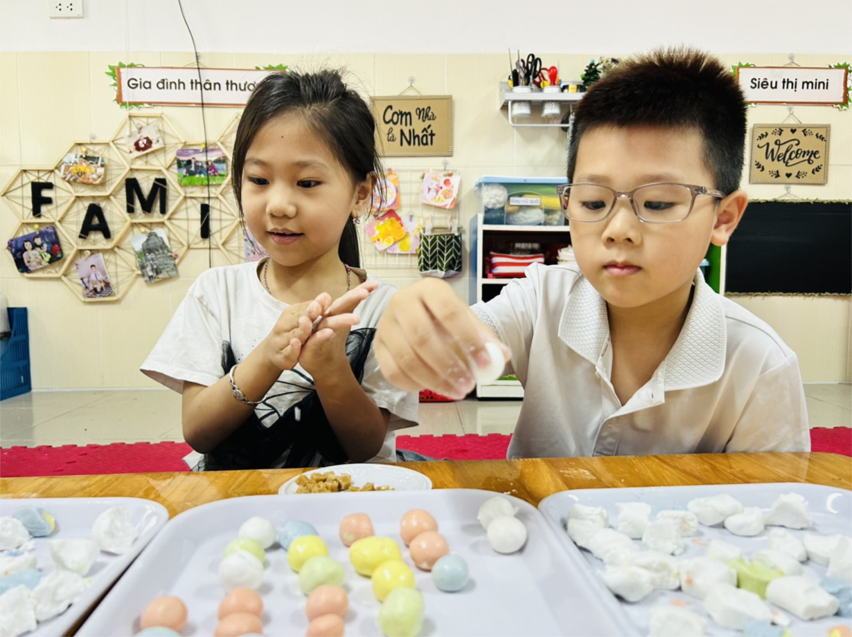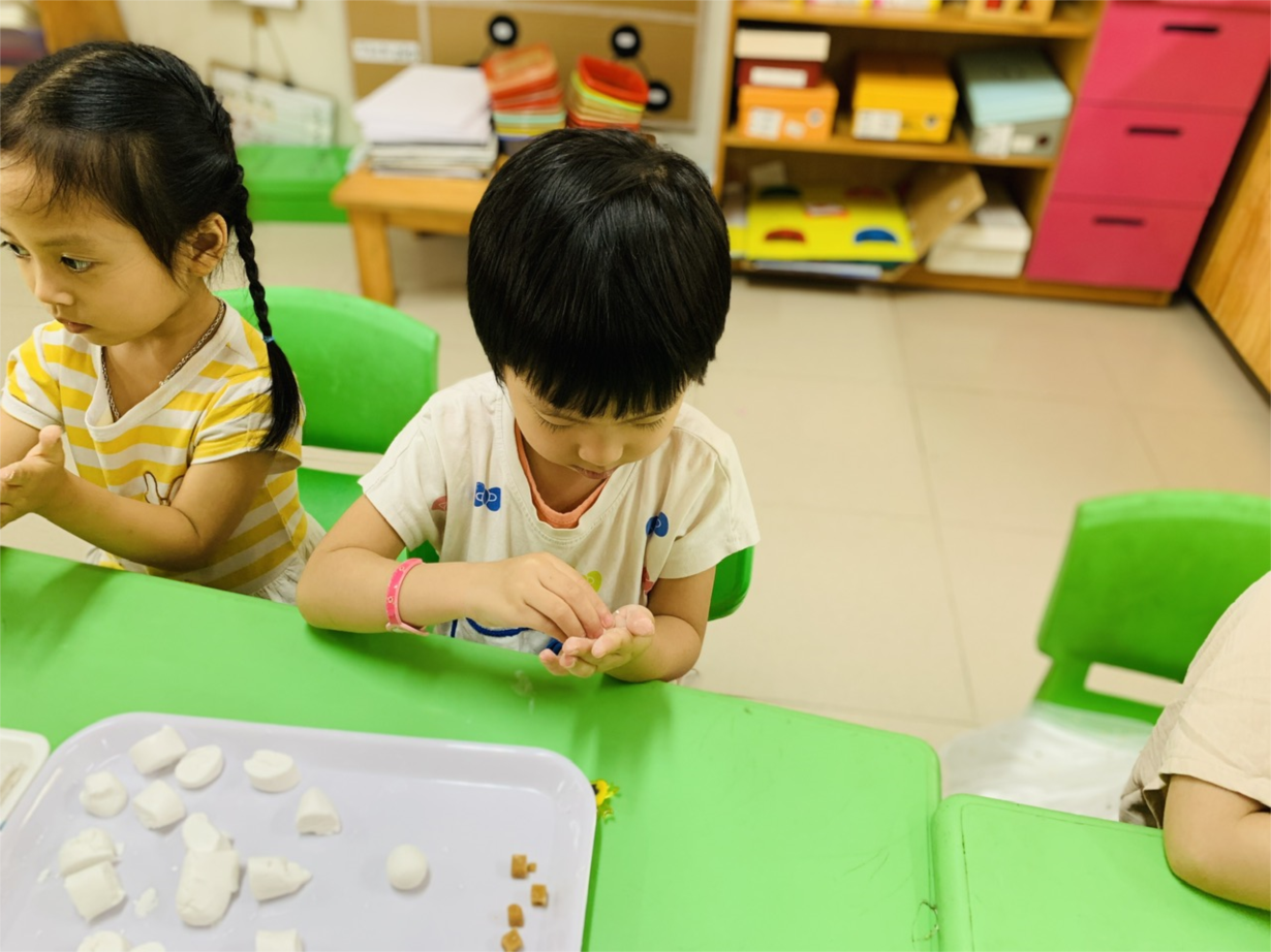 Các bé MGN B4 nặn bánh trôi ngày tết Hàn Thực