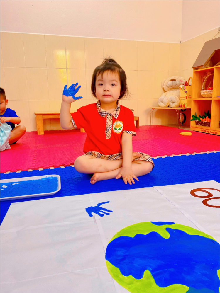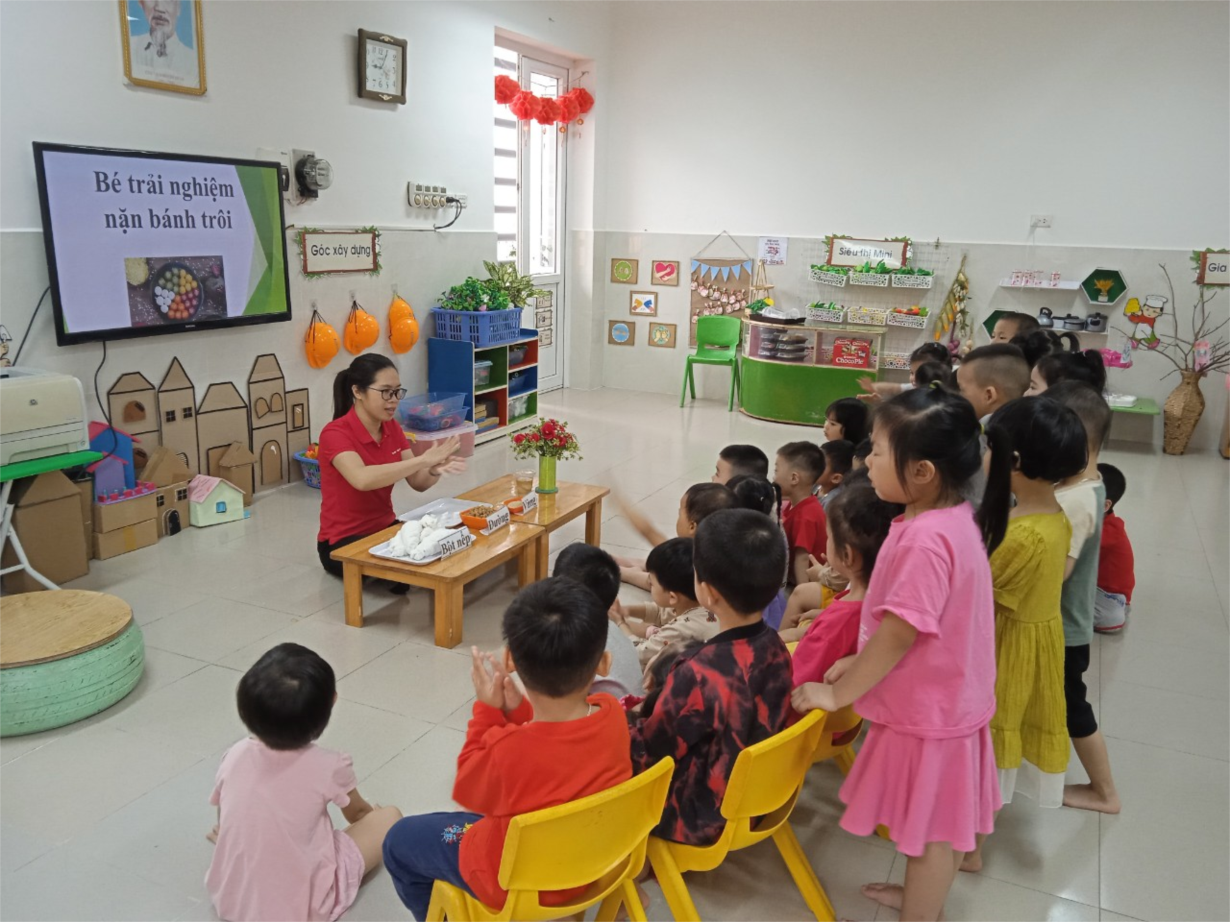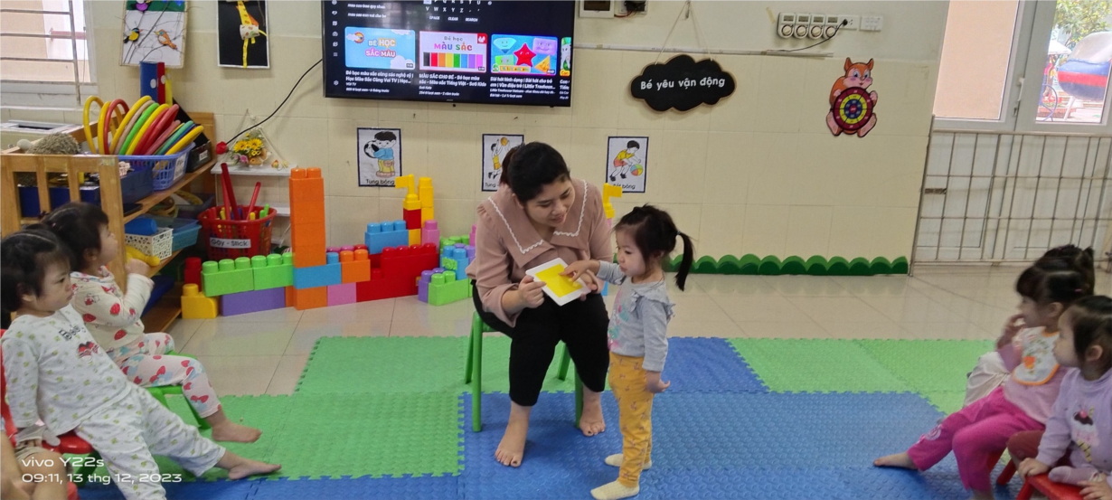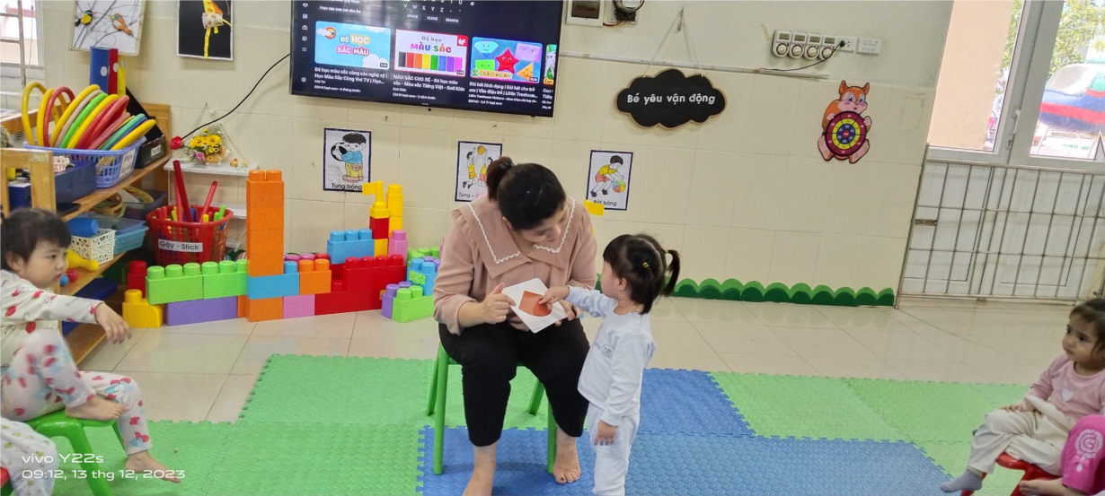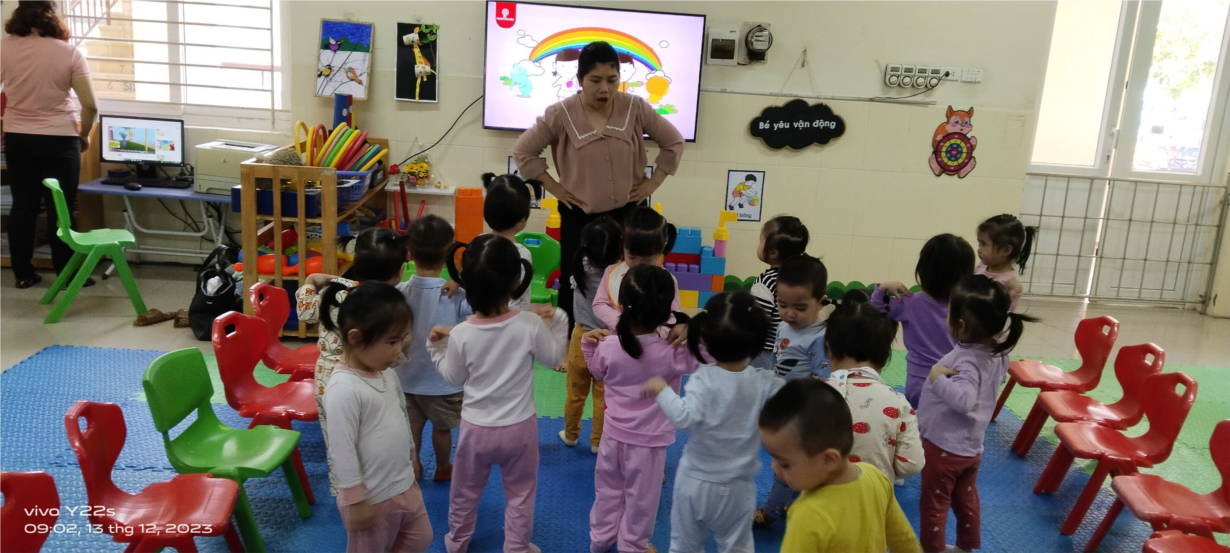 Hình ảnh các bé lớp mẫu giáo nhỡ B1 tham gia tuần lễ sắc màu.