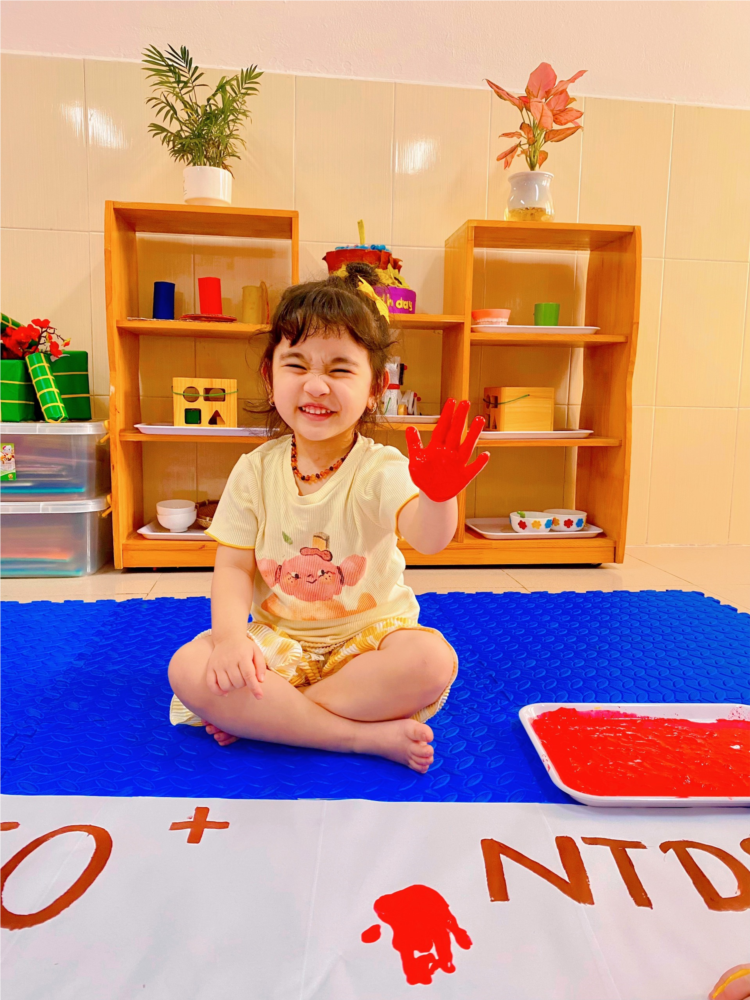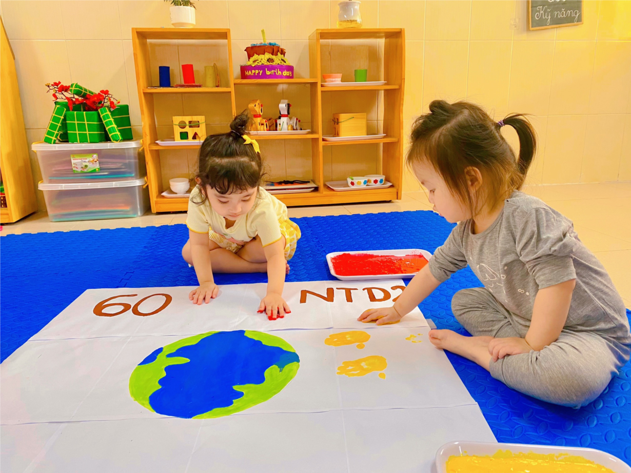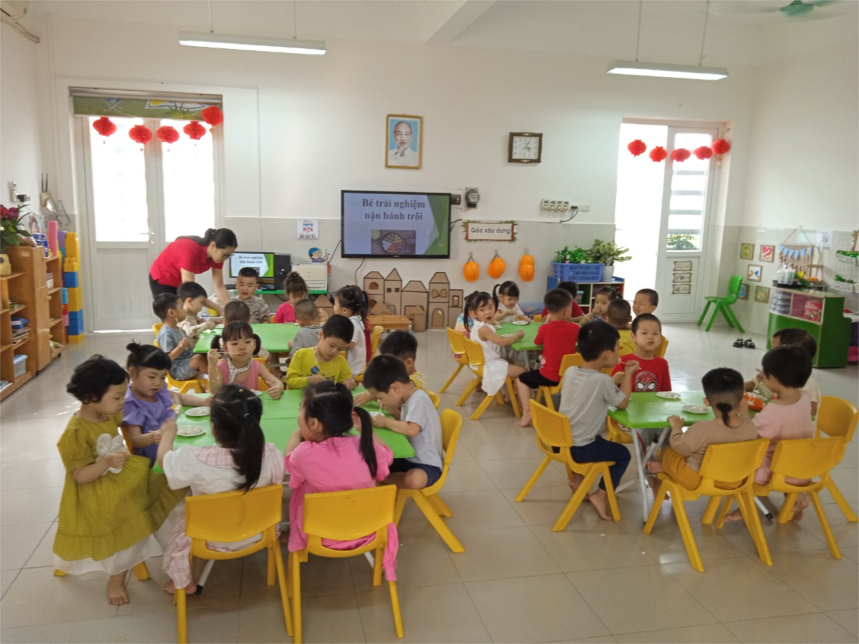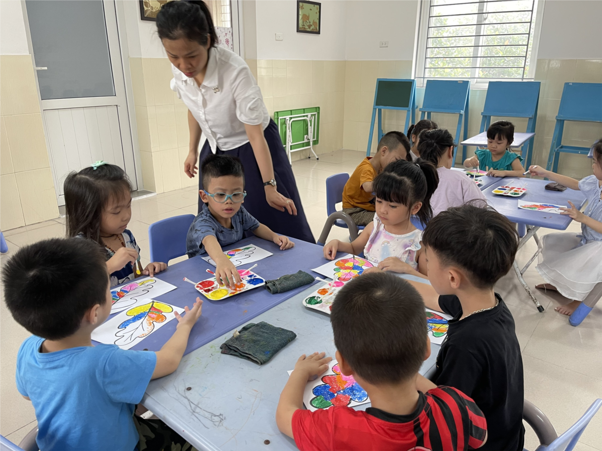 Hình ảnh các bé lớp mẫu giáo nhỡ B1 tham gia tuần lễ sắc màu.