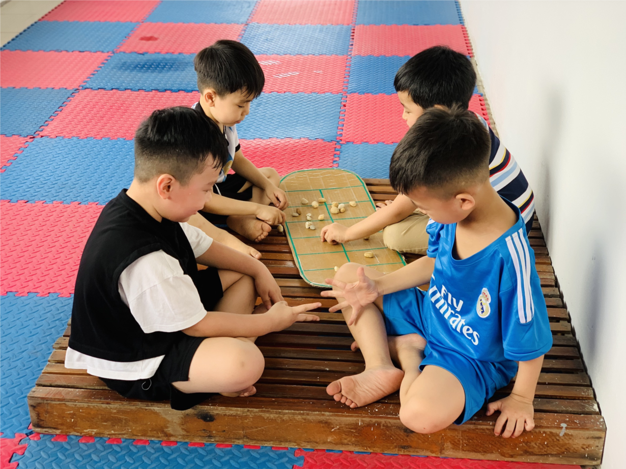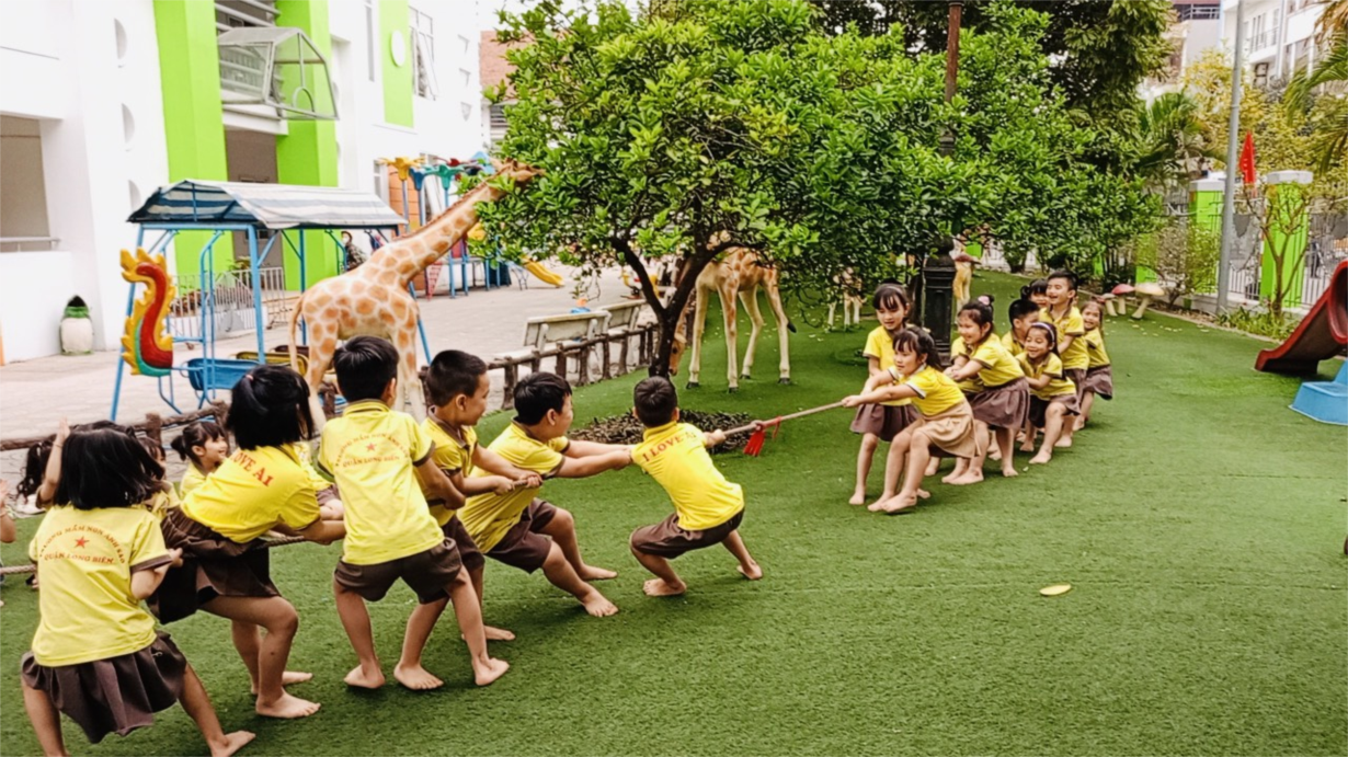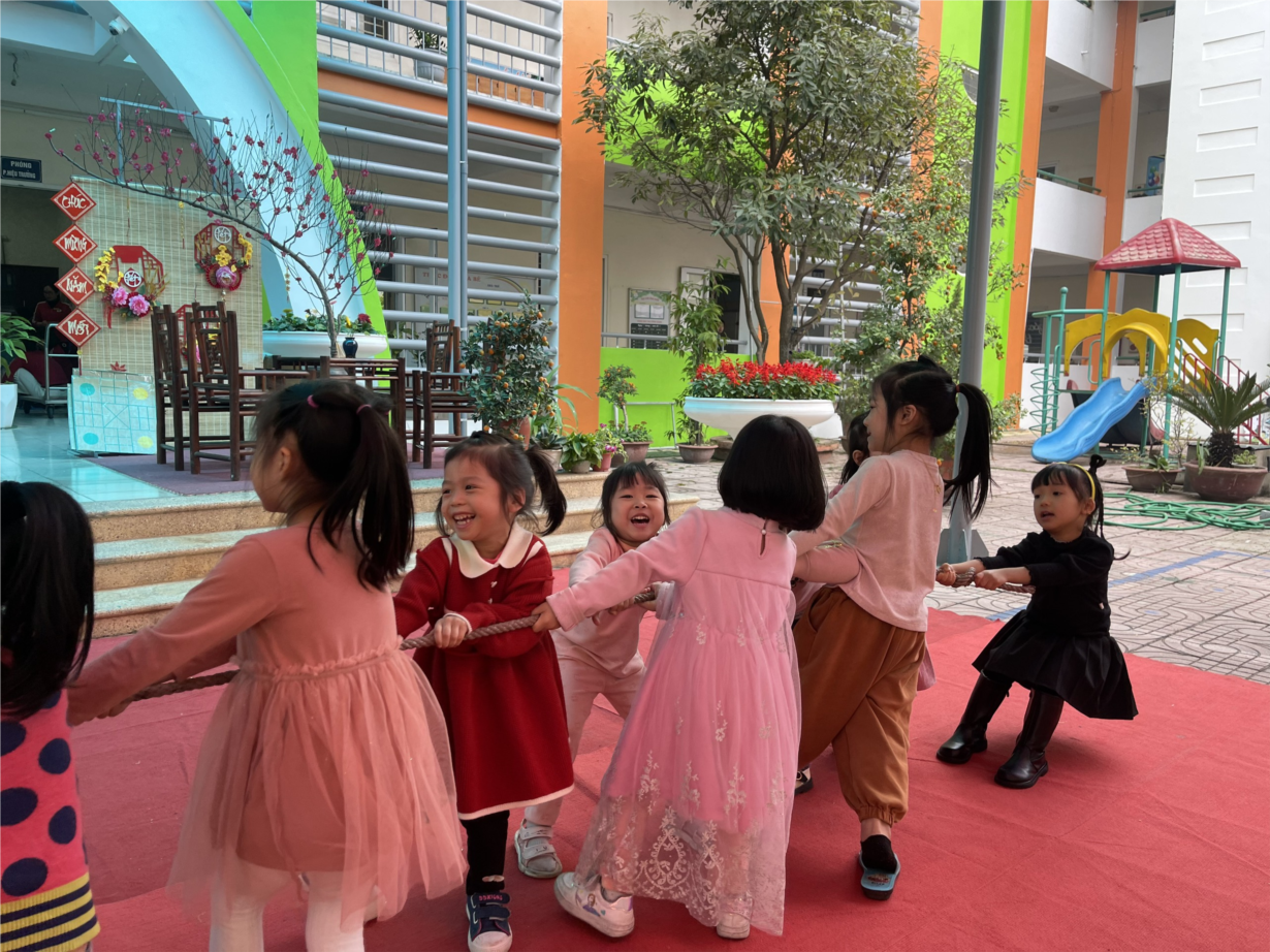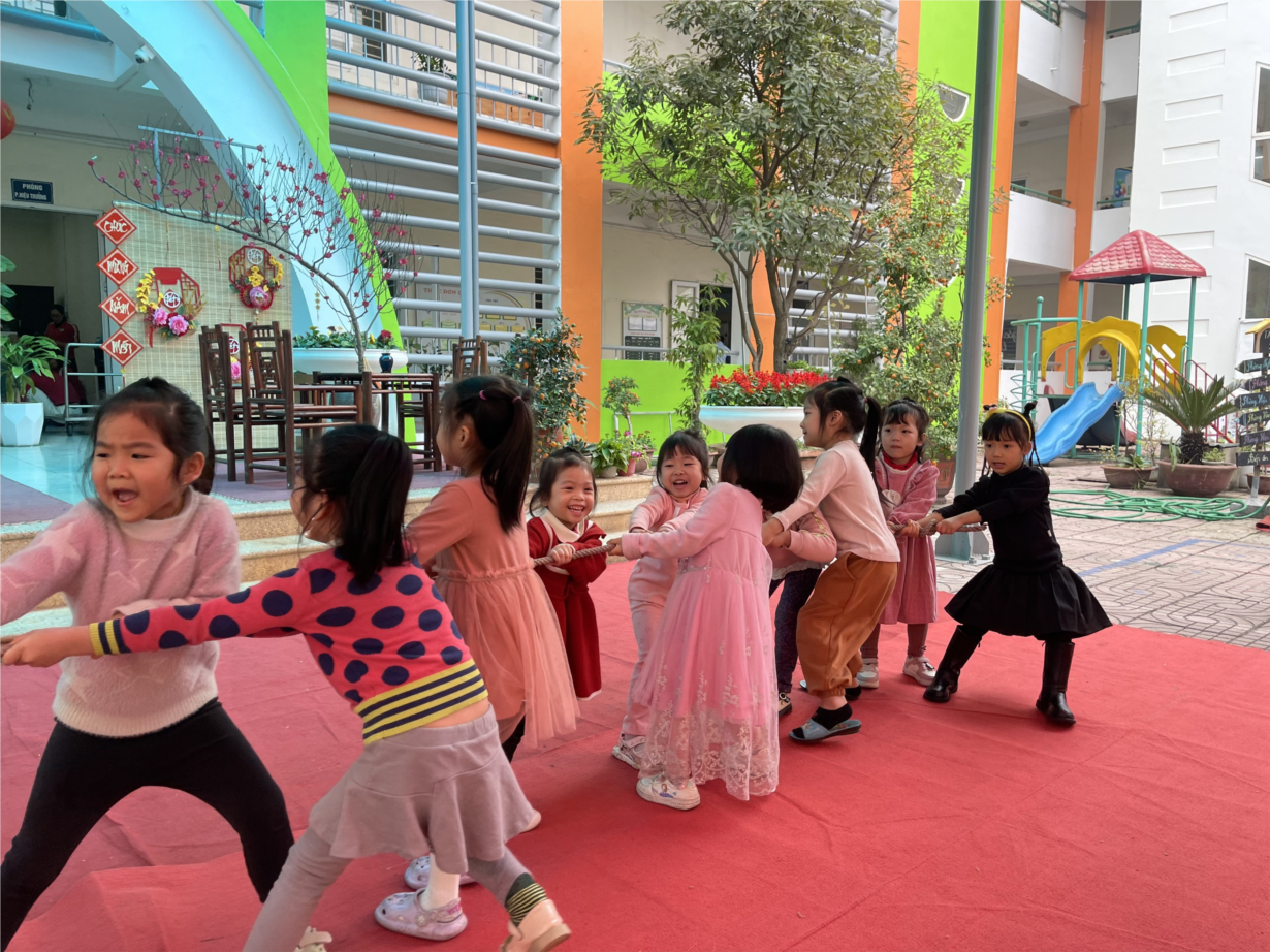 Hình ảnh các bé lớp MGN B1 với các trò chơi dân gian.