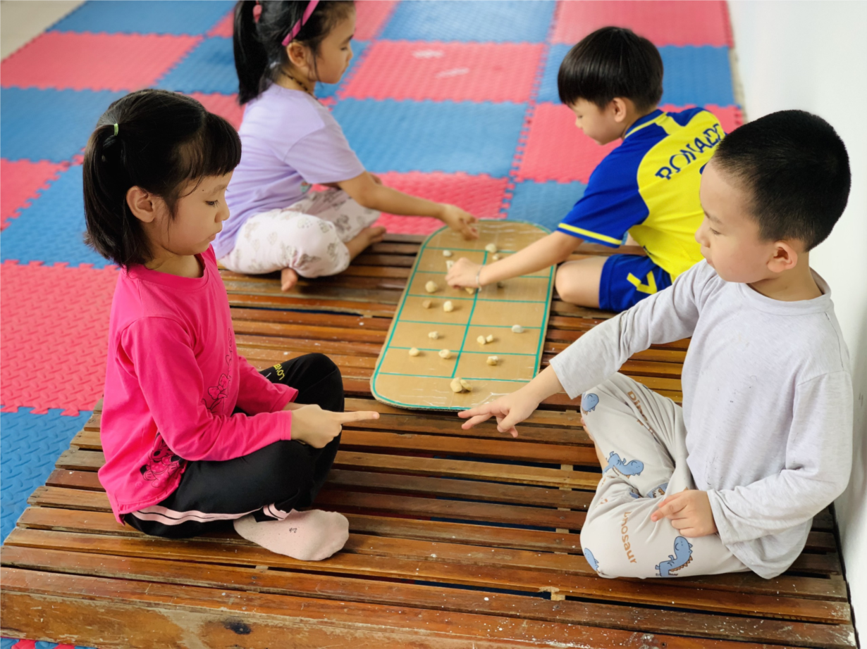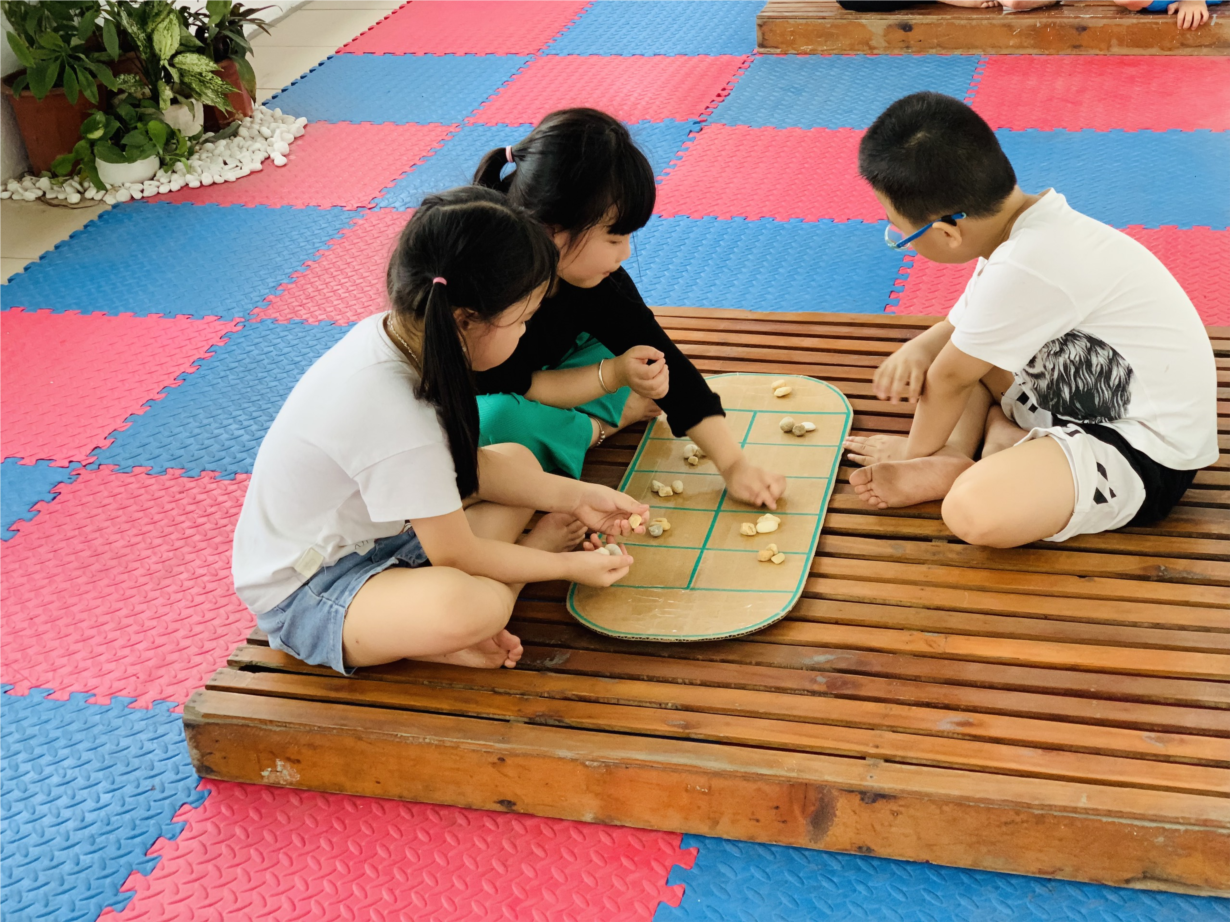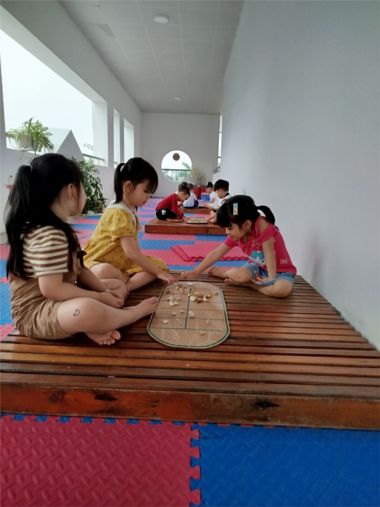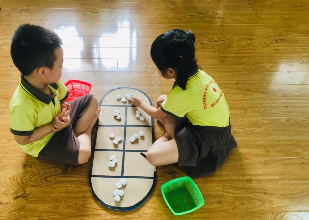 Hình ảnh các bé lớp MGN B1 với các trò chơi dân gian.