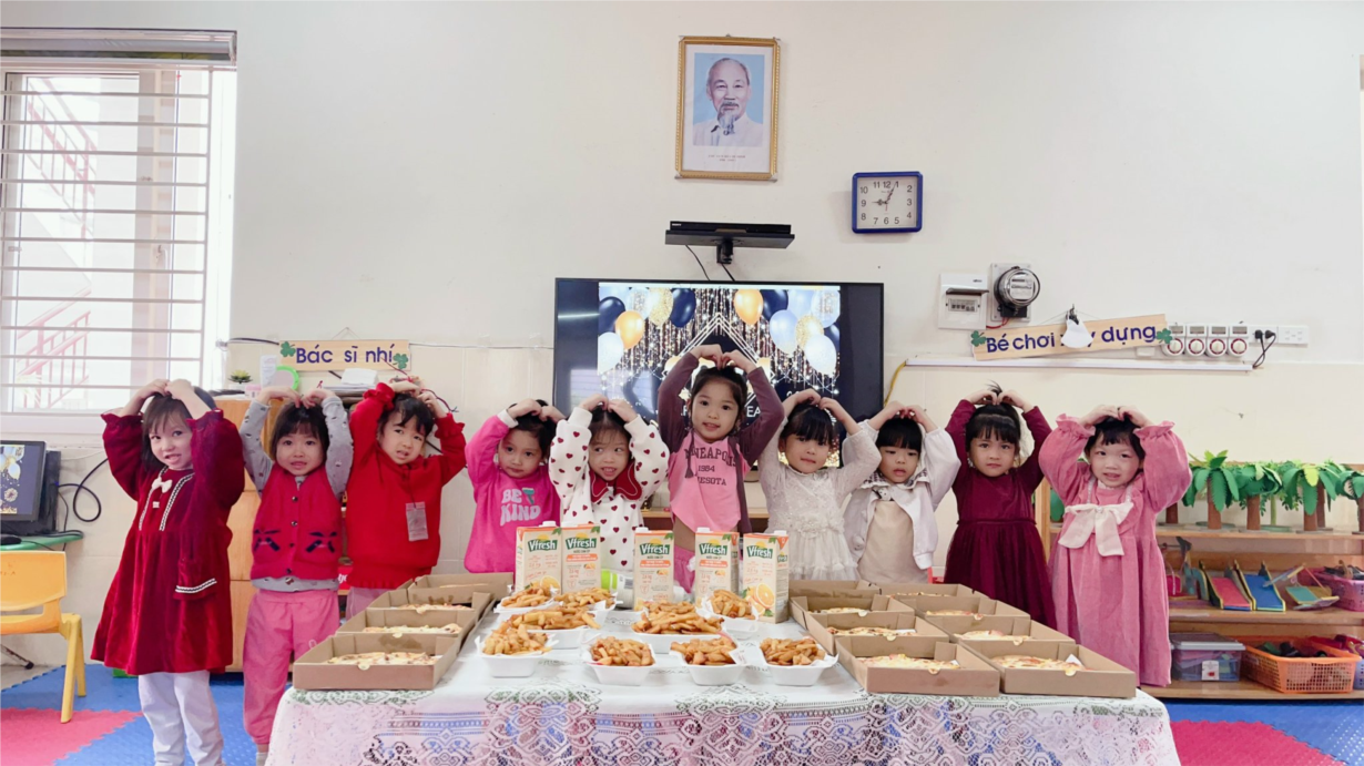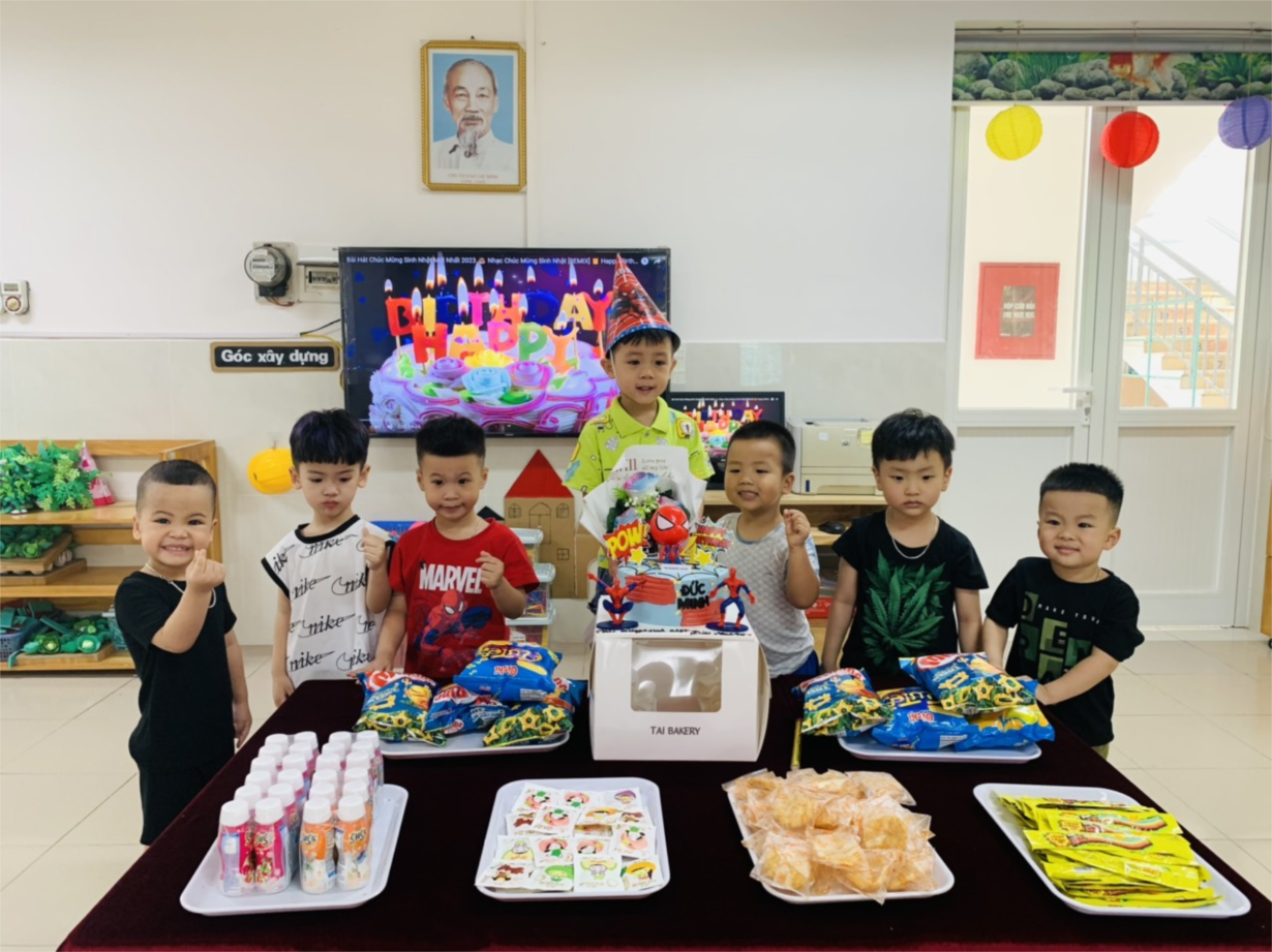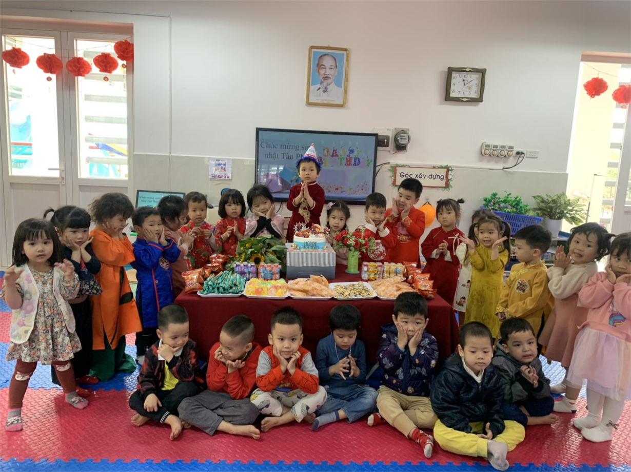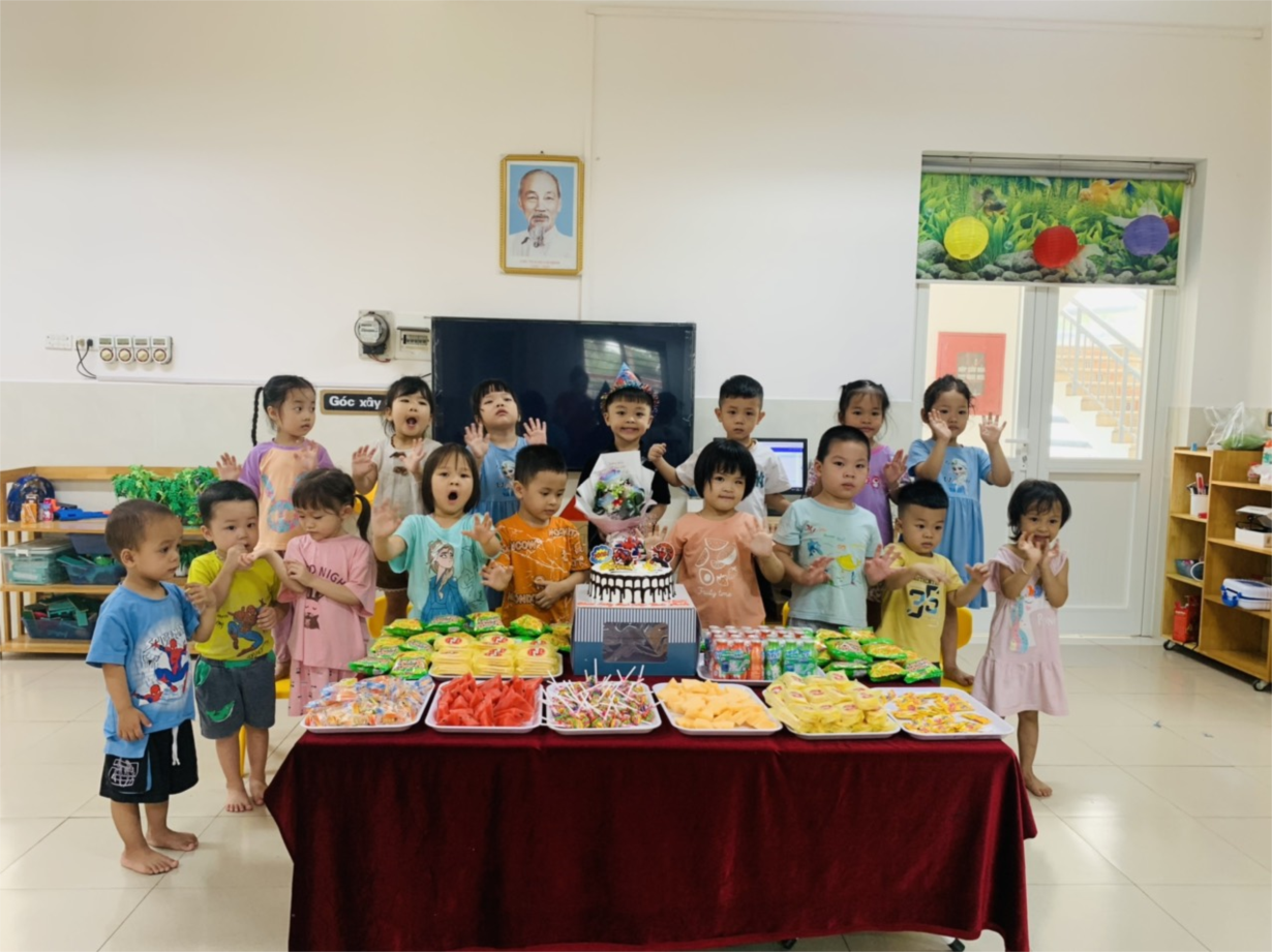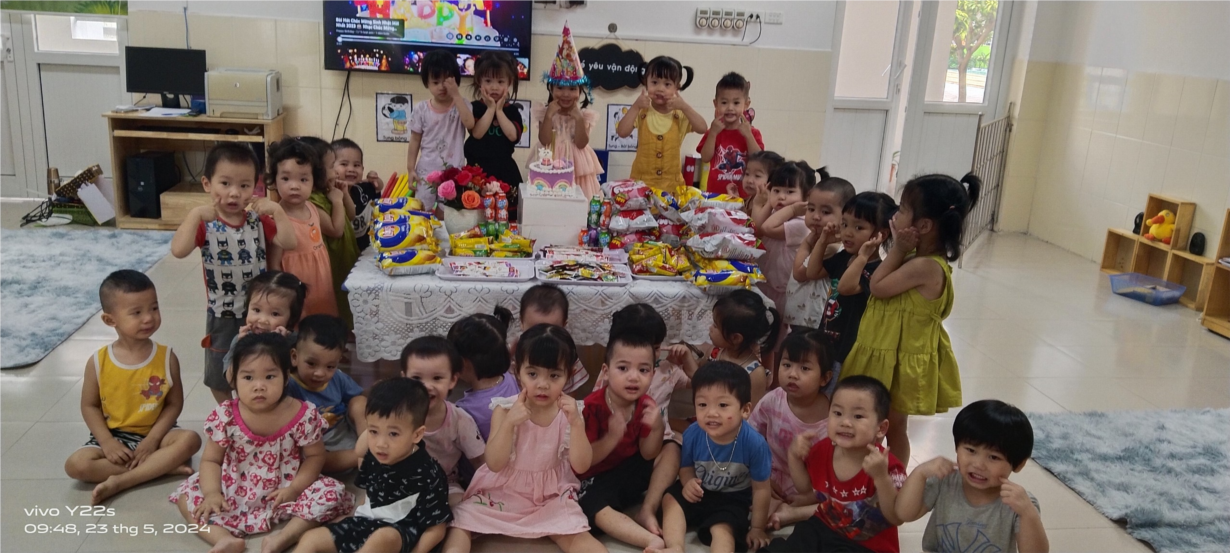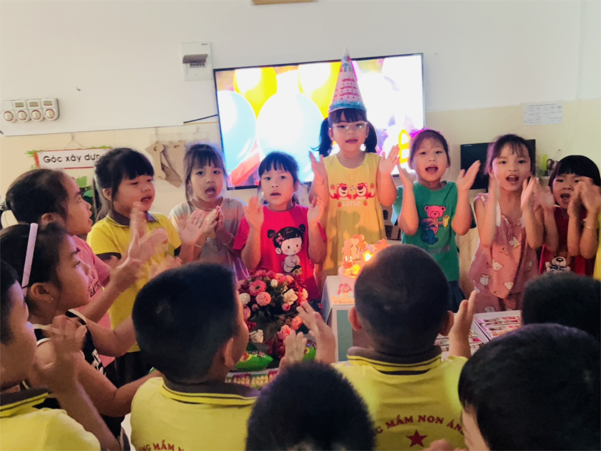 Hình ảnh các bé lớp MGN B1 chúc mừng sinh nhật bạn Khả An.