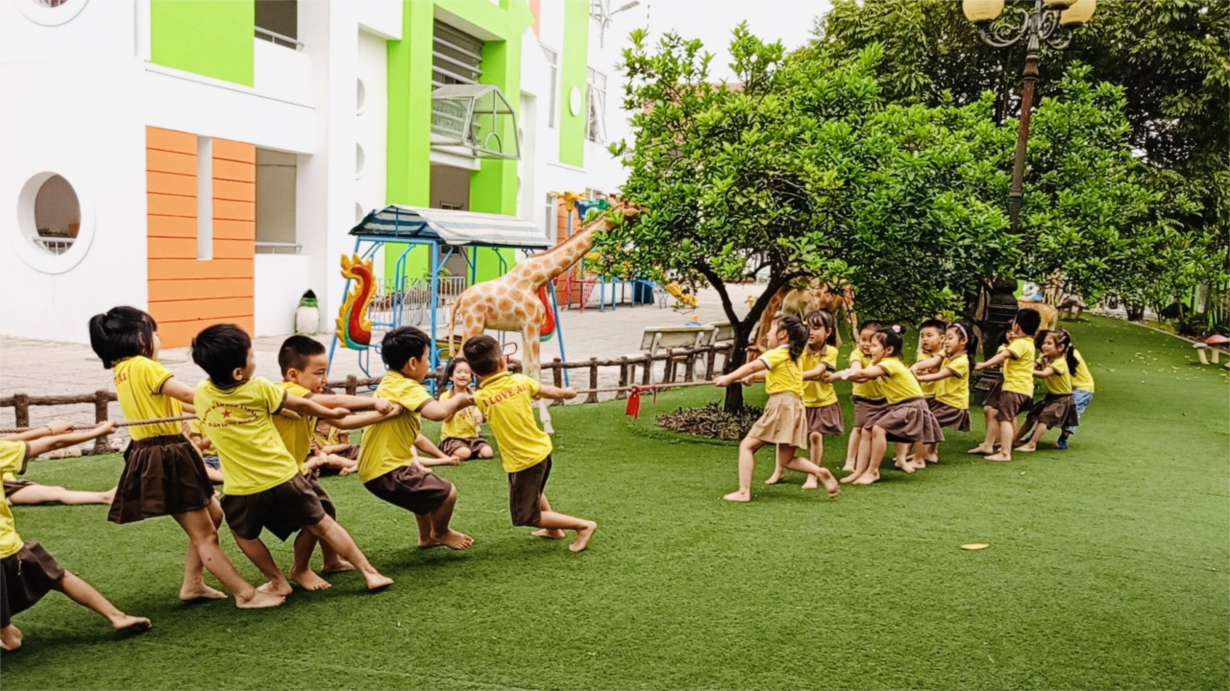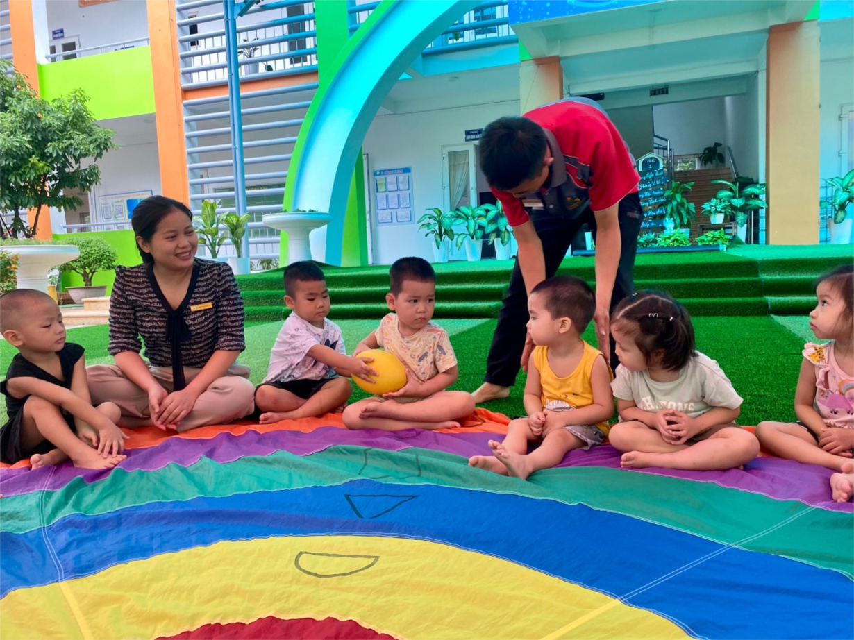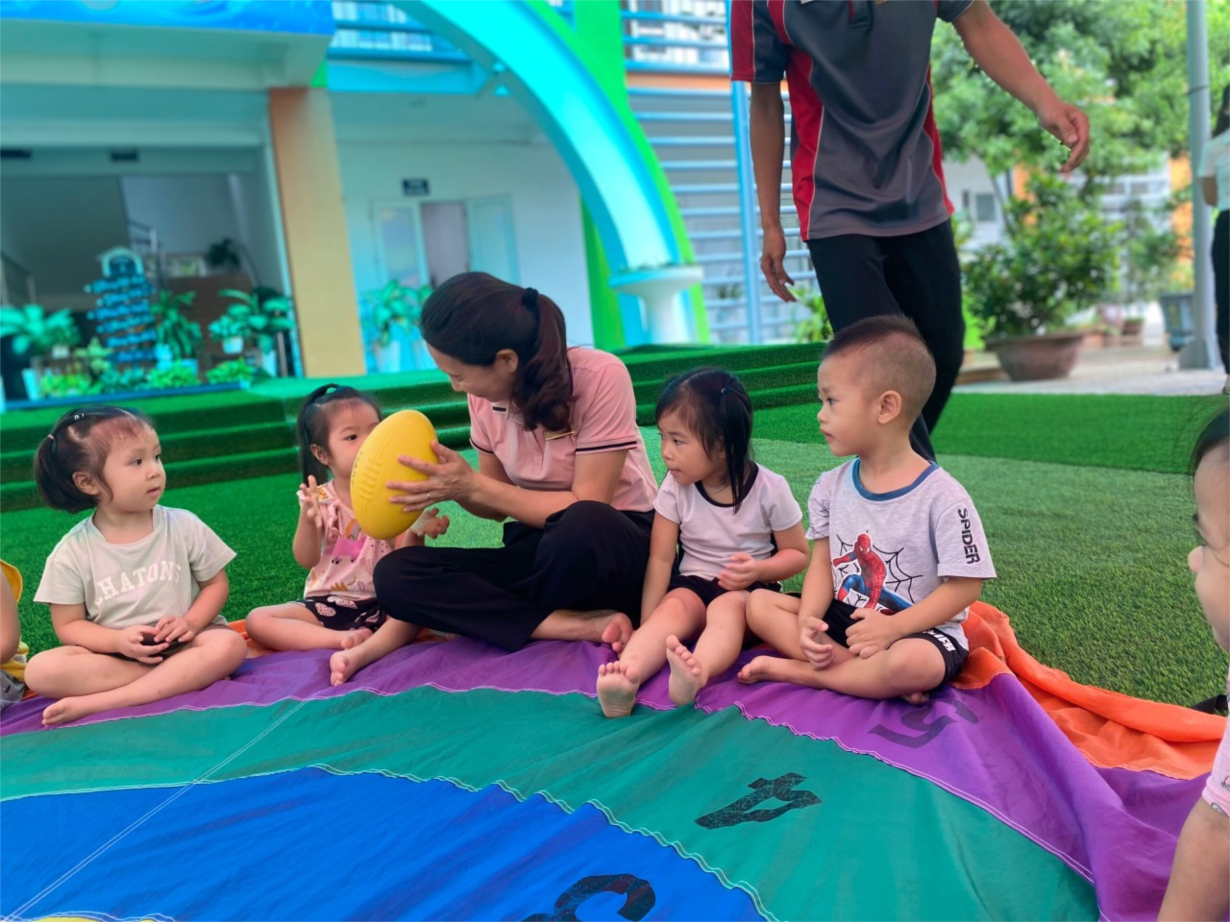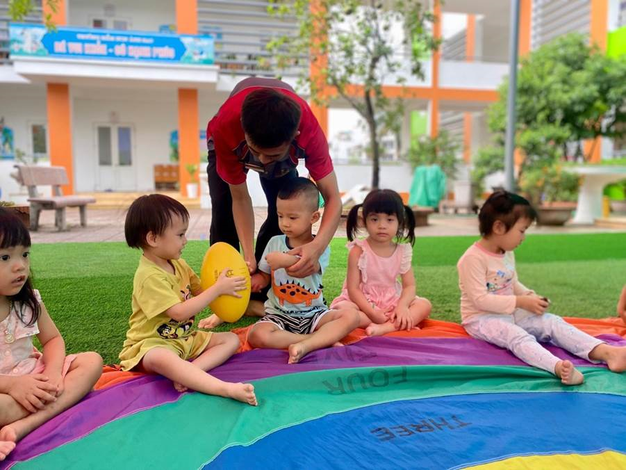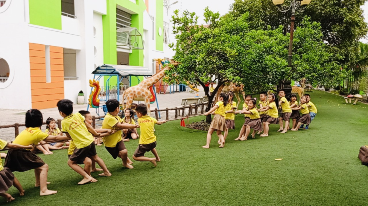 Giờ vui chơi tự do dưới sân trường của các bạn nhỏ lớp MGN B2