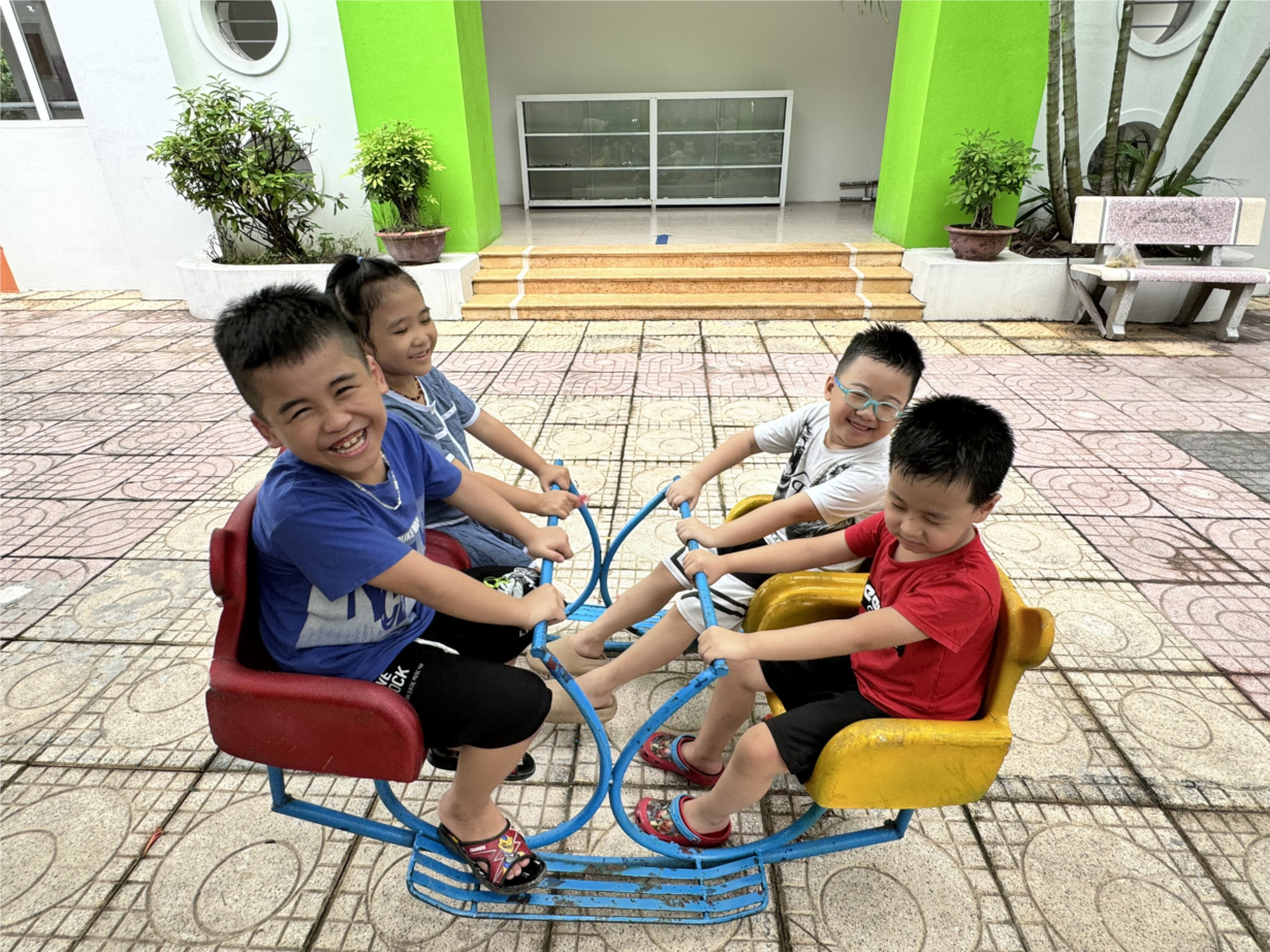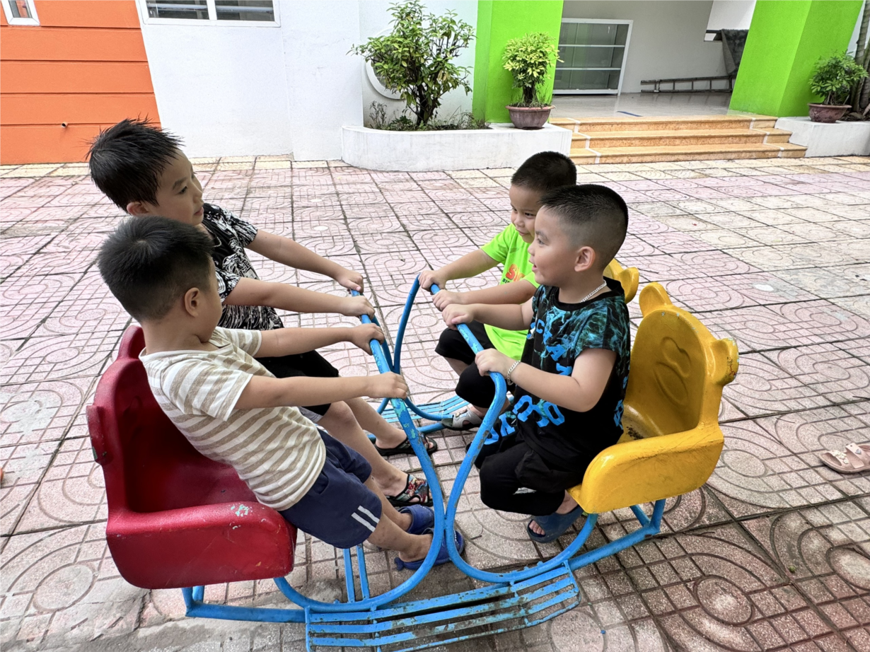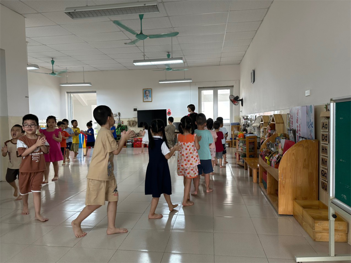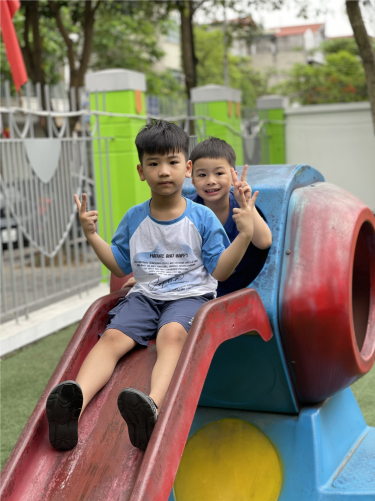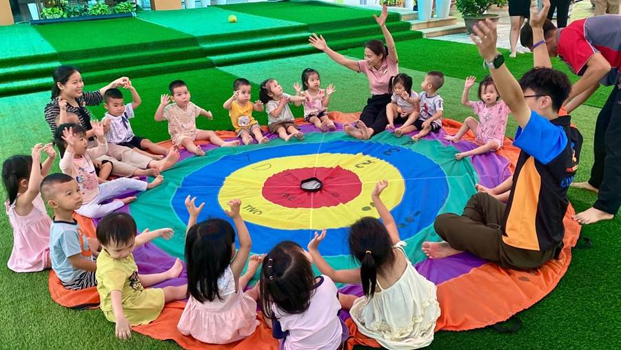 Giờ vui chơi tự do dưới sân trường của các bạn nhỏ lớp MGN B2