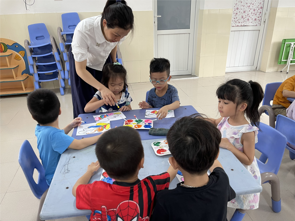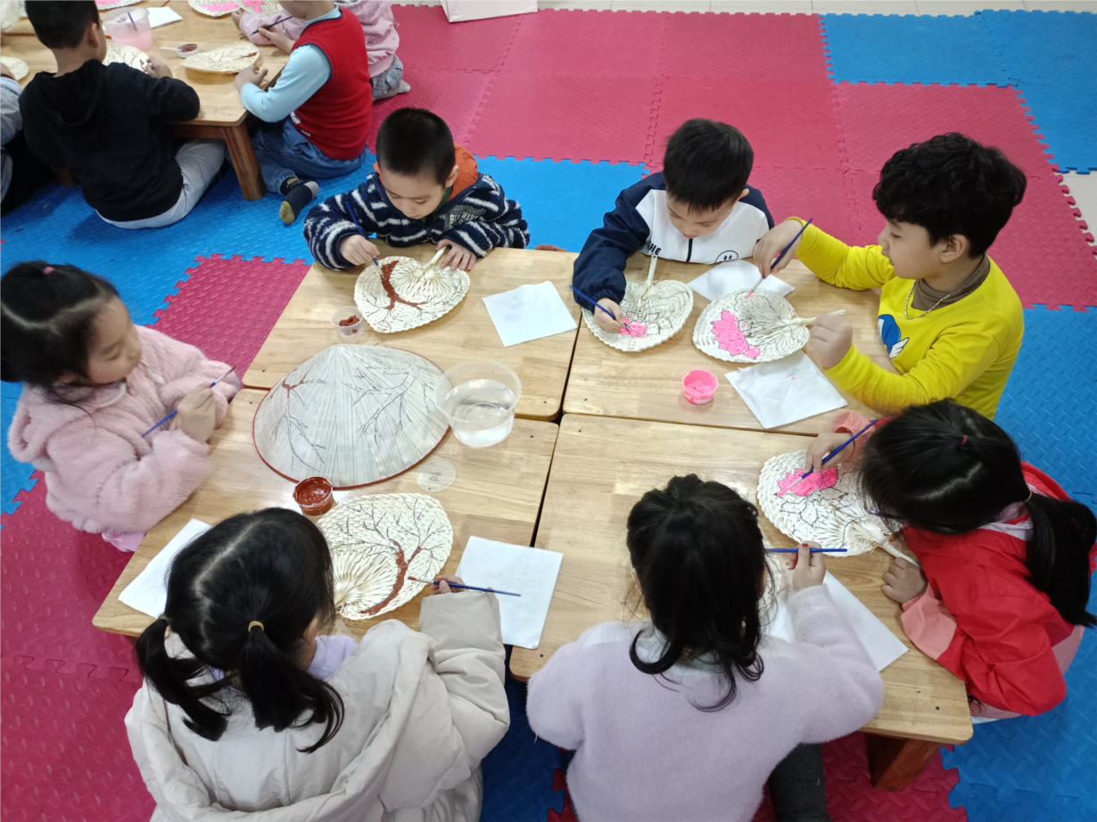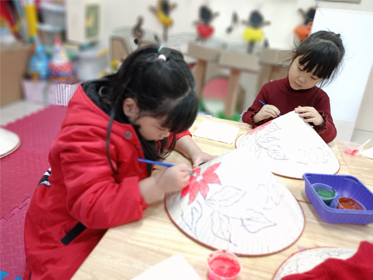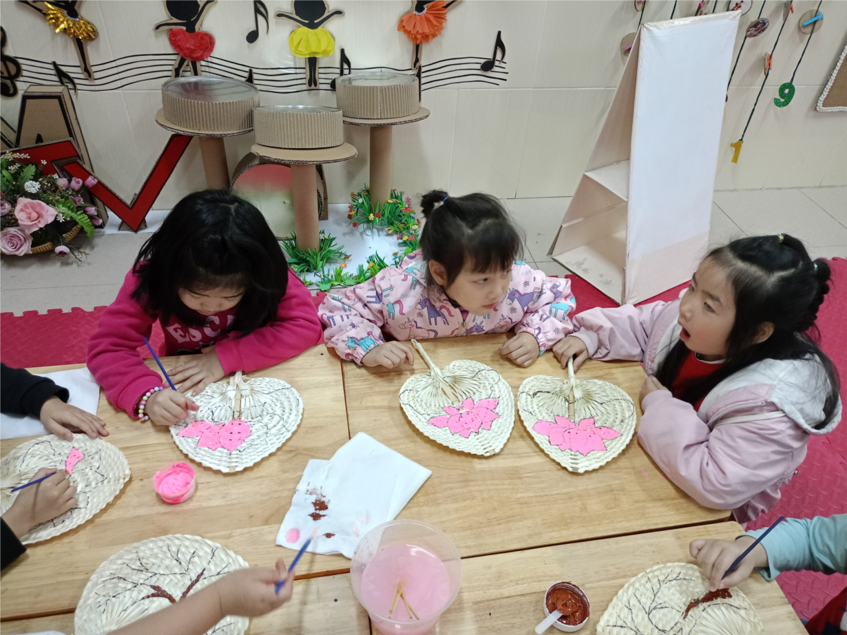 Các bé MGN B4 trang trí quạt làm quà tặng bà và mẹ nhân ngày 8/3