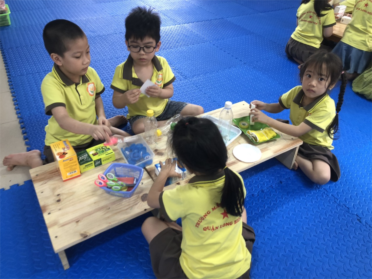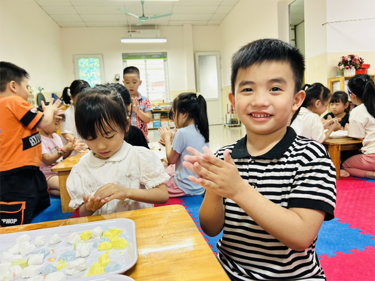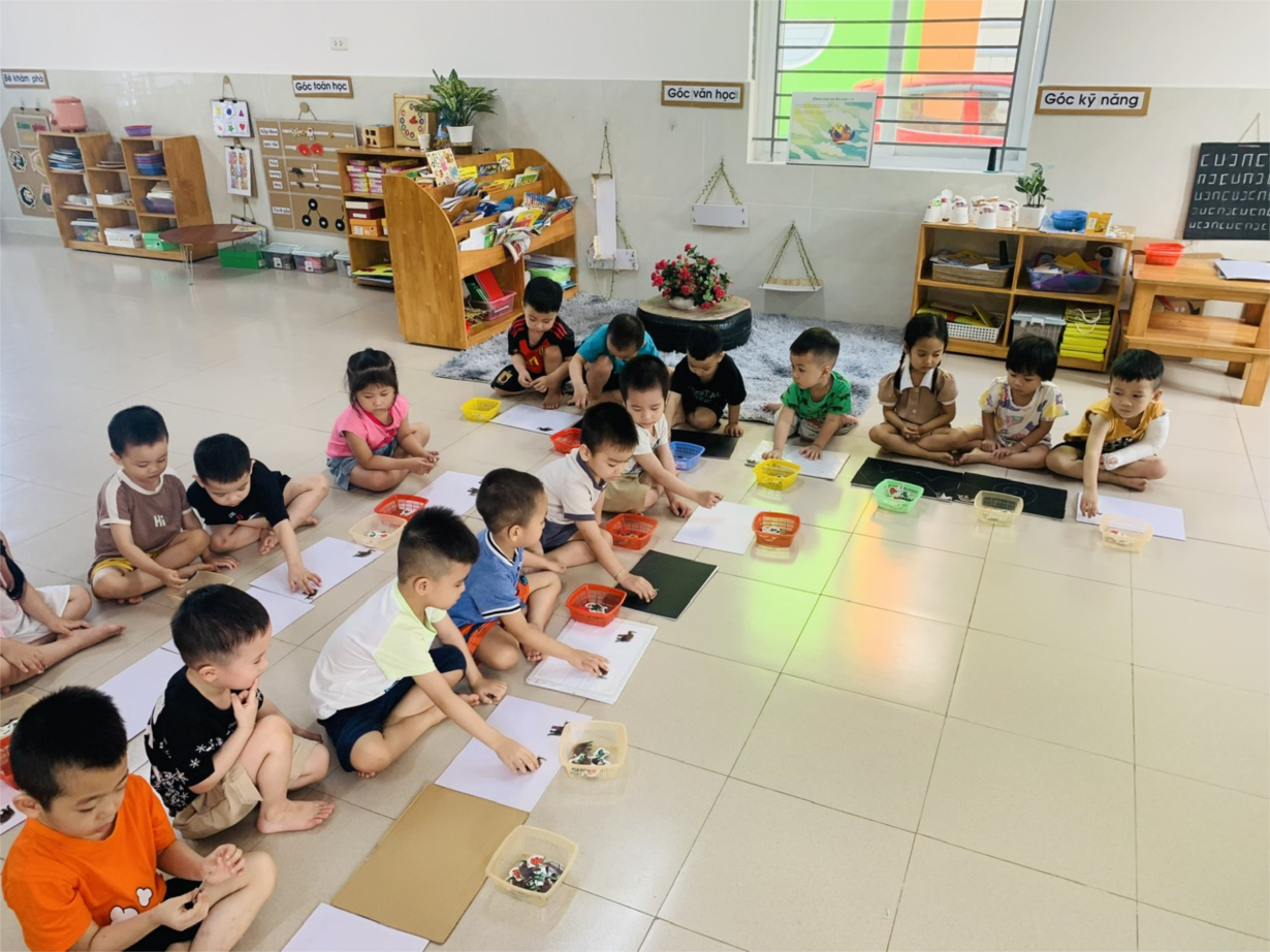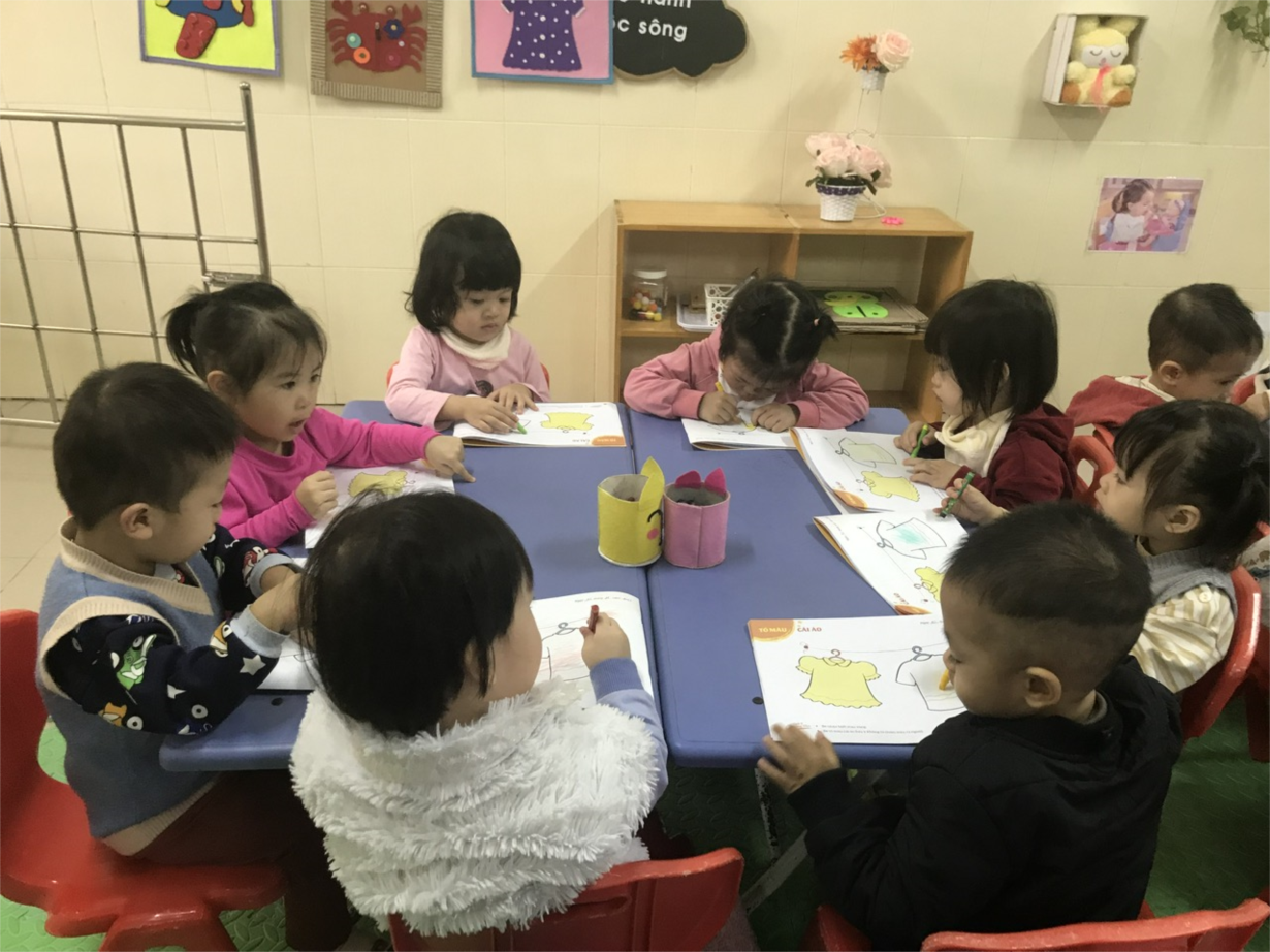 Hình ảnh các bé lớp MGN B1 với giờ bé sáng tạo.