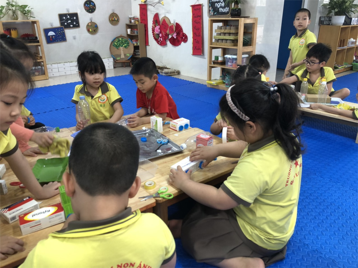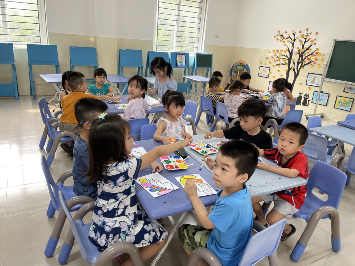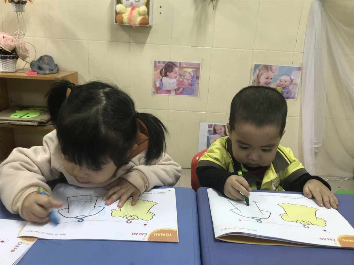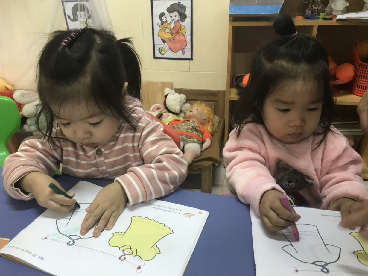 Hình ảnh các bé lớp MGN B1 với giờ bé sáng tạo.