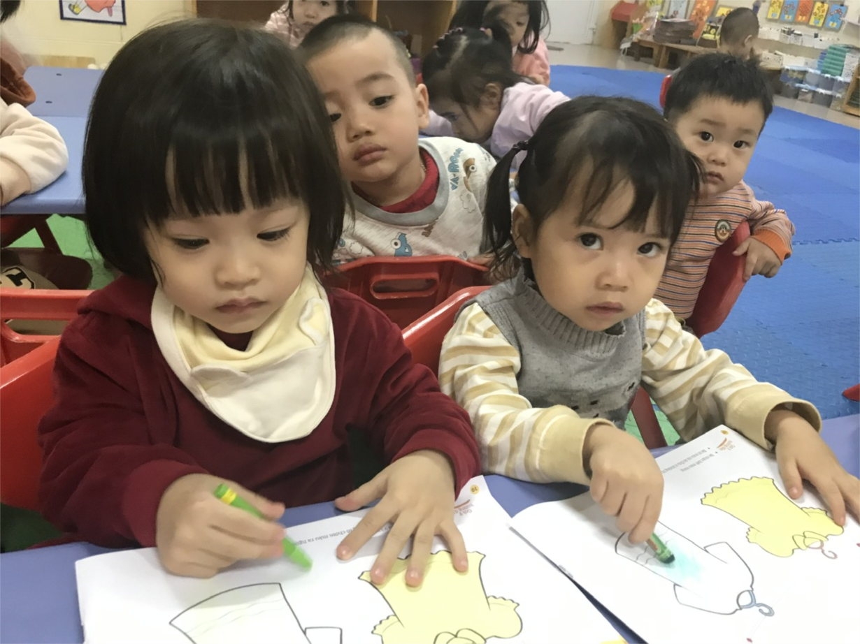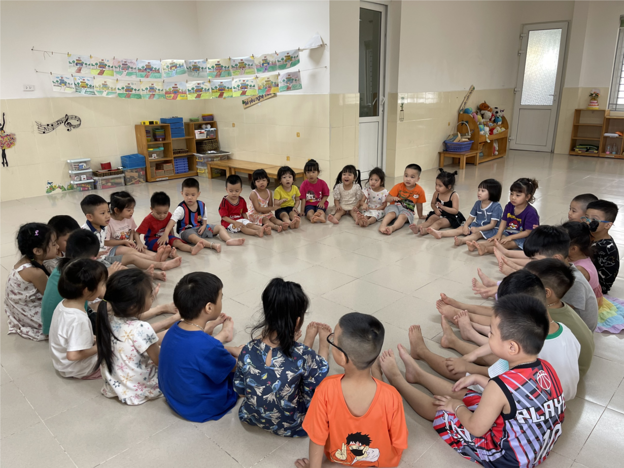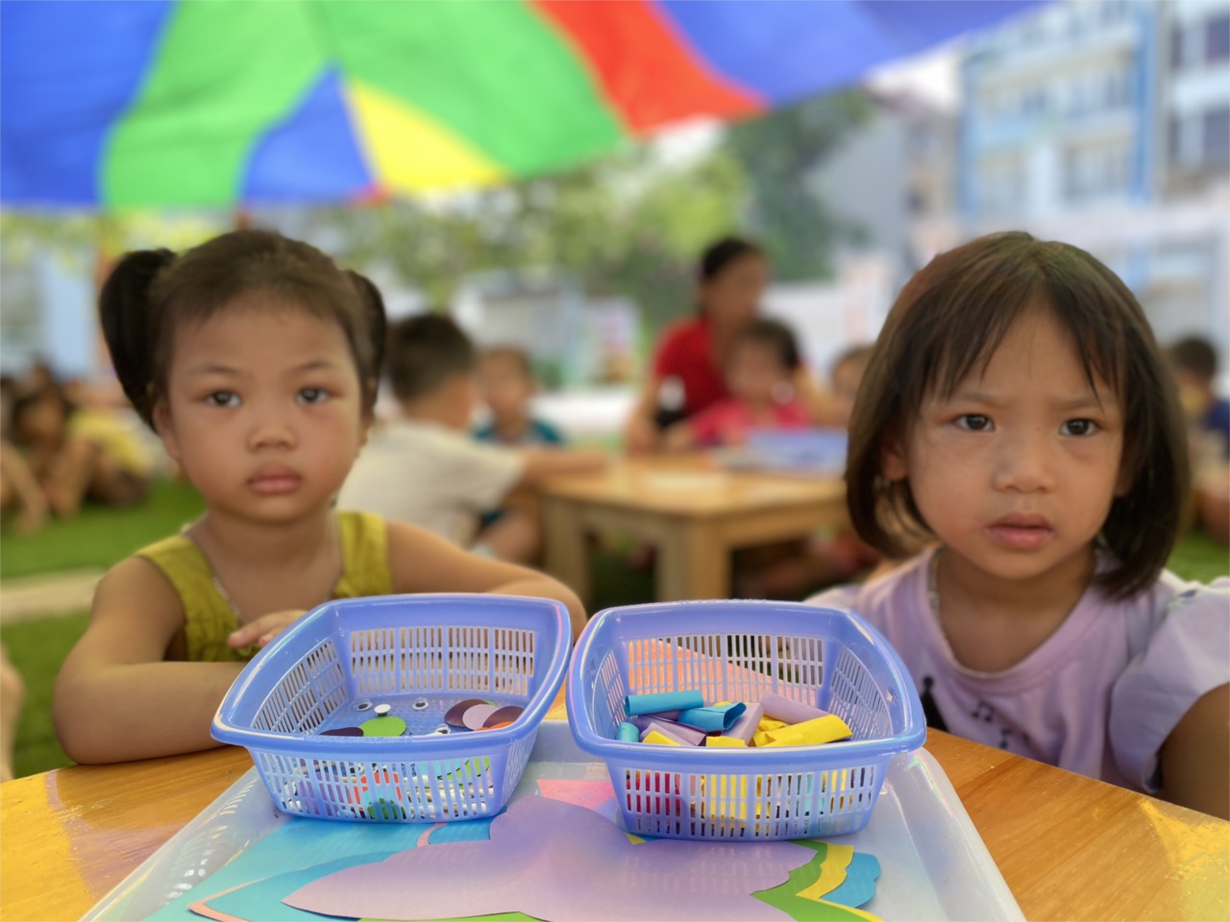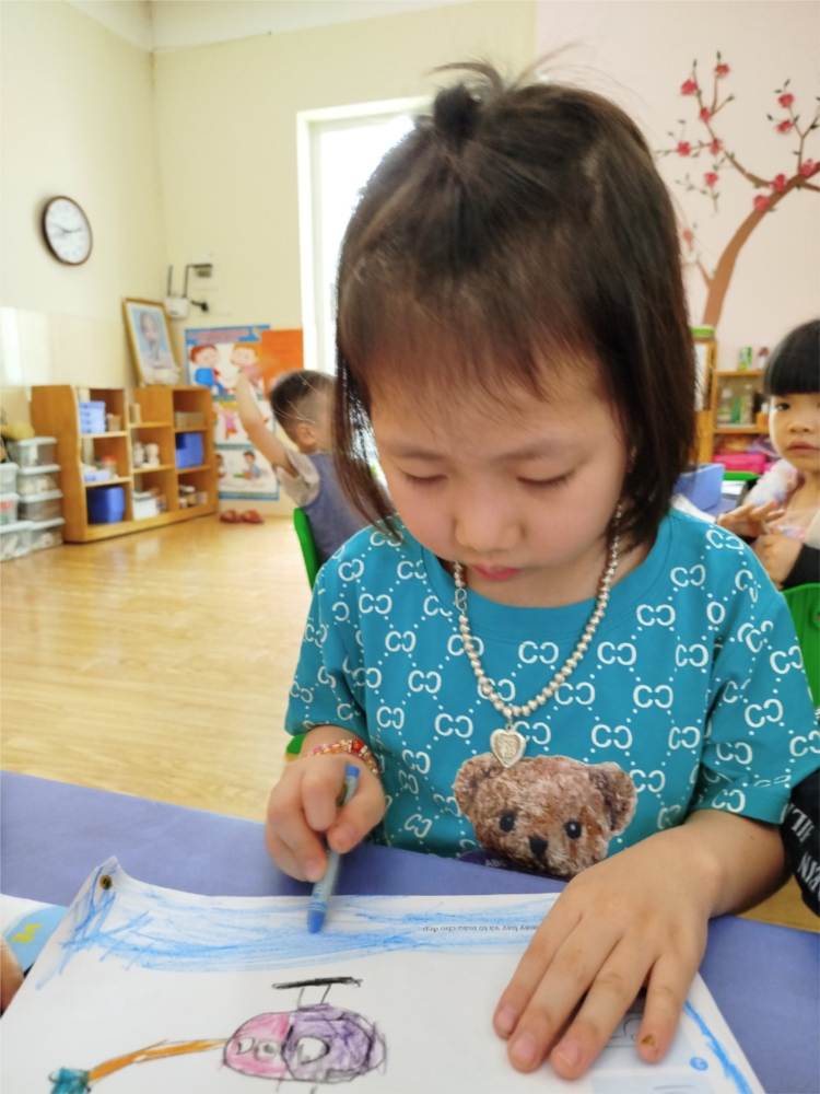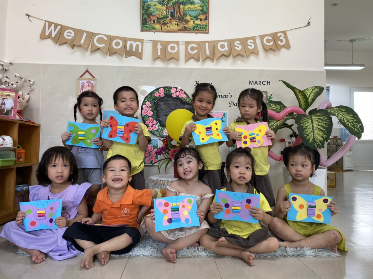 Hình ảnh các bé lớp MGN B1 với giờ bé sáng tạo.