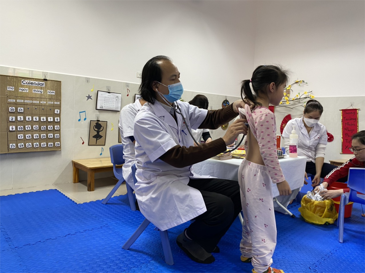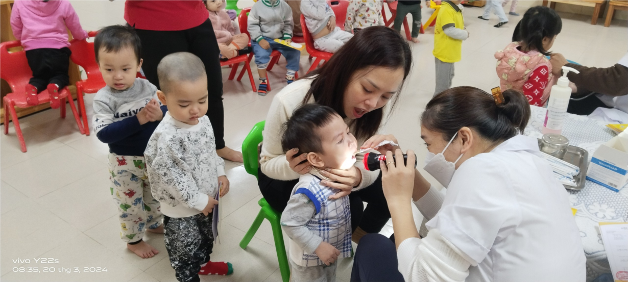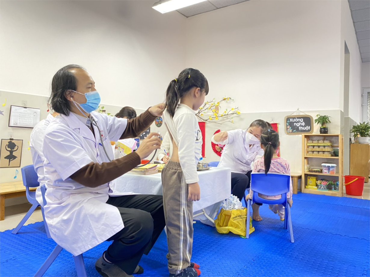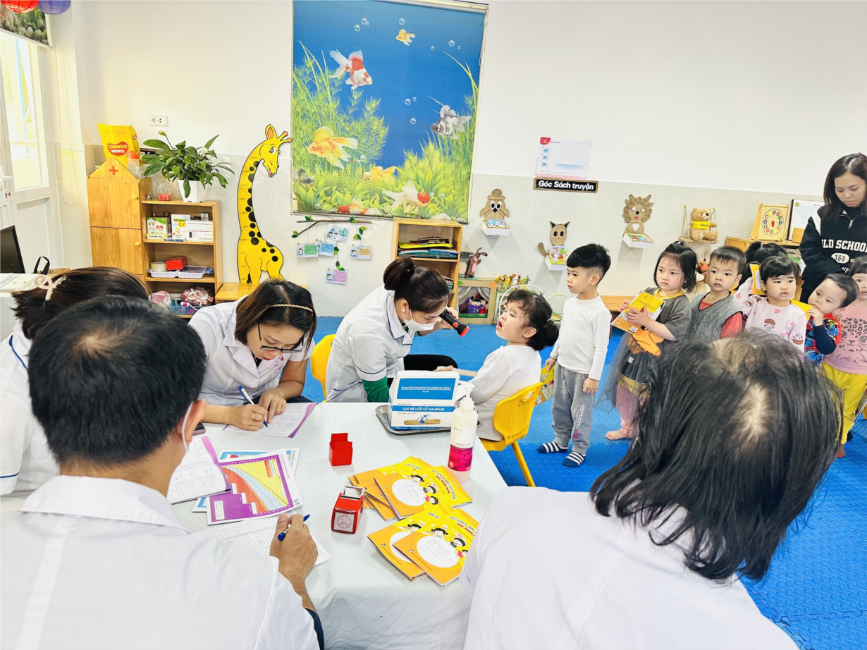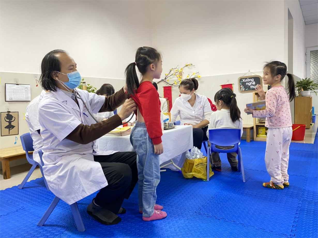 Các bạn nhỏ lớp A3 tham gia khám sức khoẻ