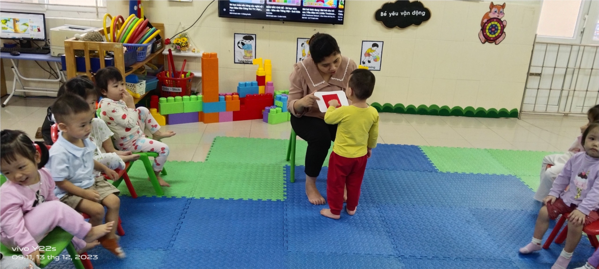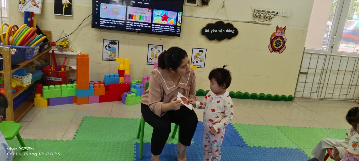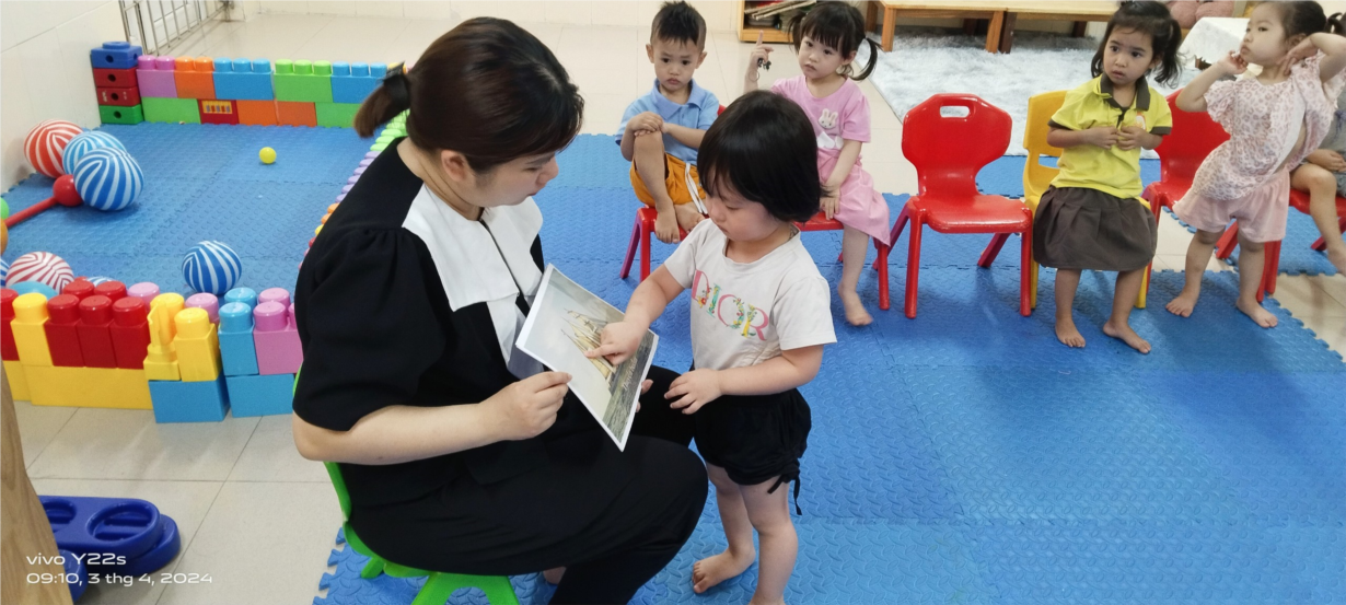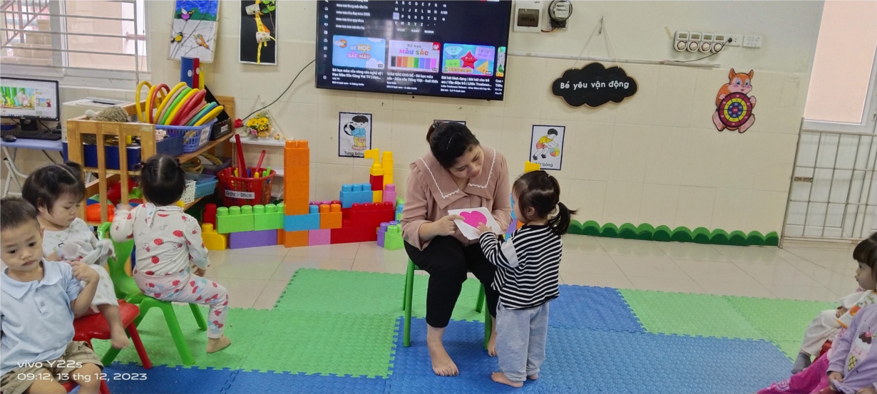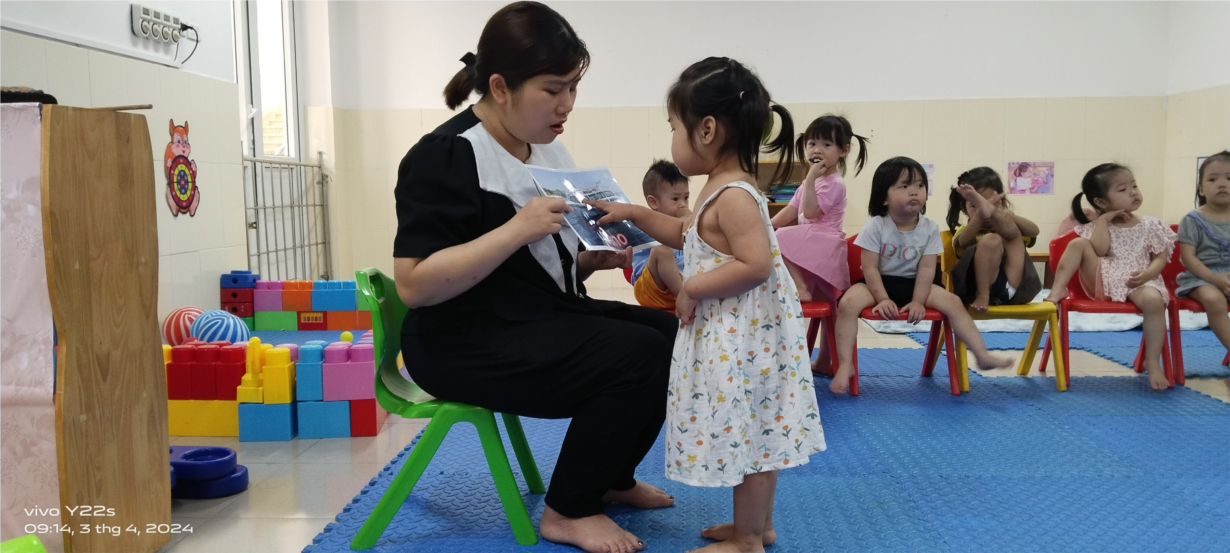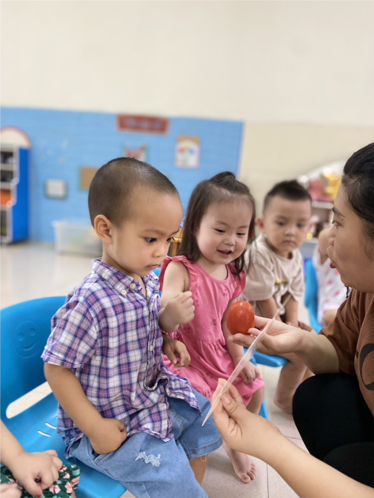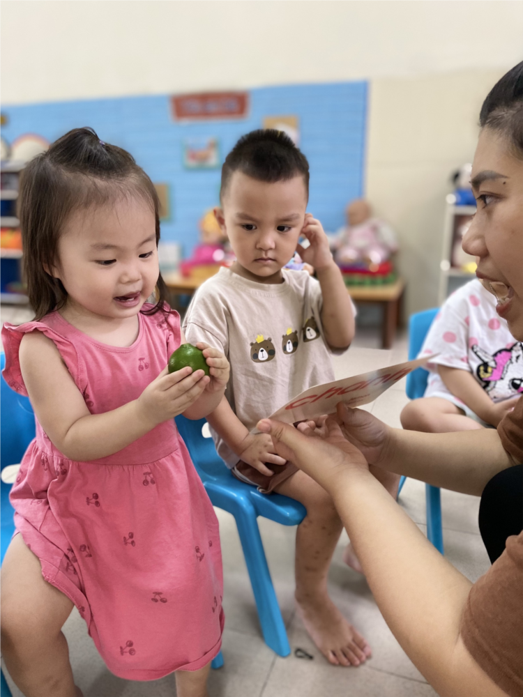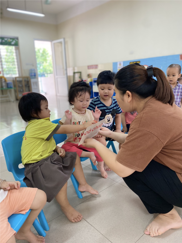 các bé lớp nhà trẻ D1 học tâm phát triển tập nói