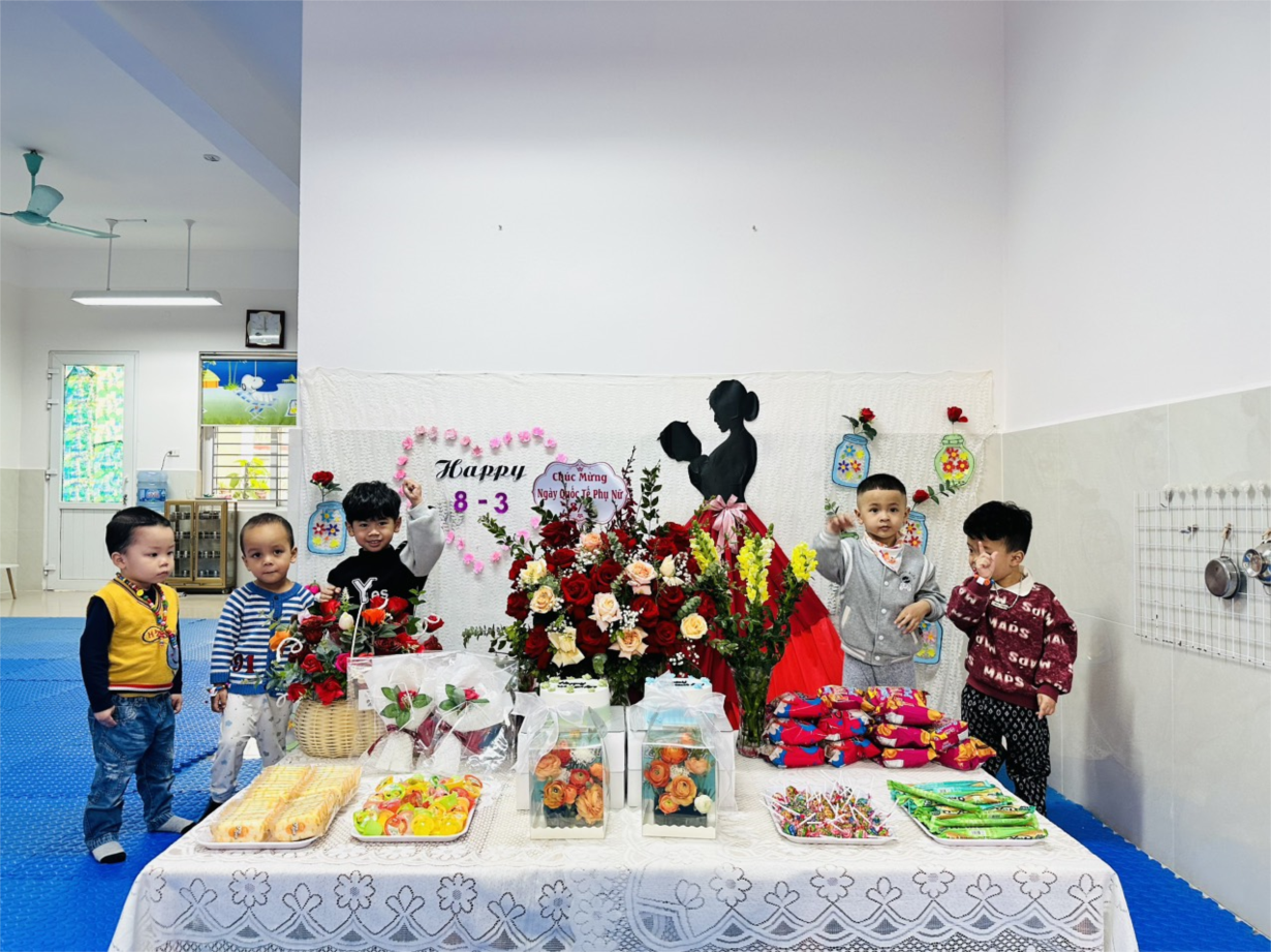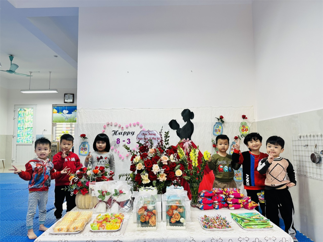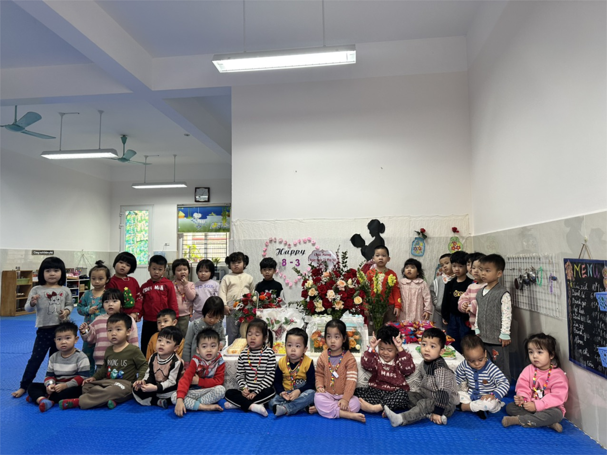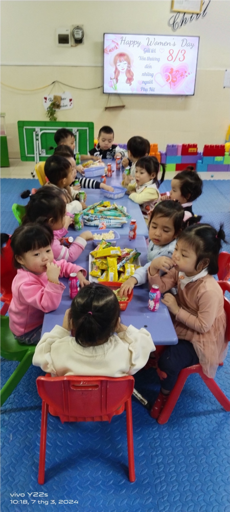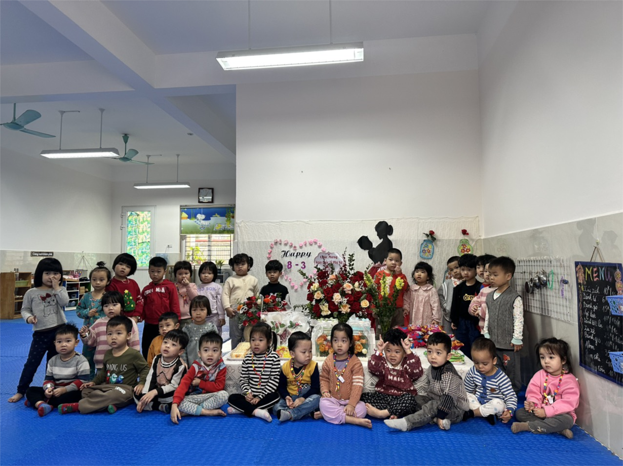 Hình ảnh các bé lớp mẫu giáo nhỡ B1 liên hoan chúc mừng ngày quốc tế phụ nữ 8-3