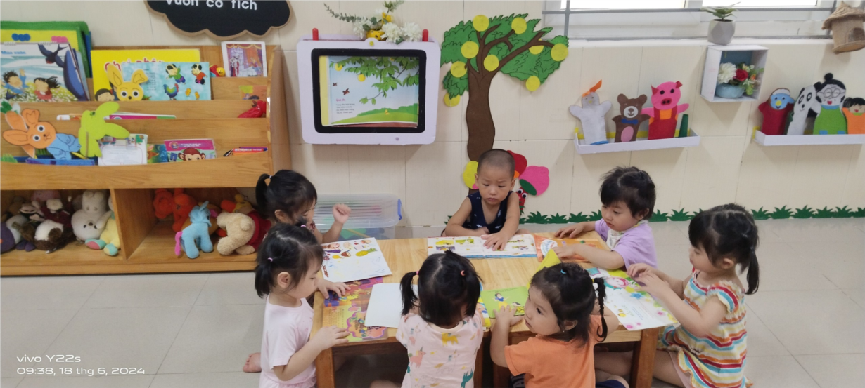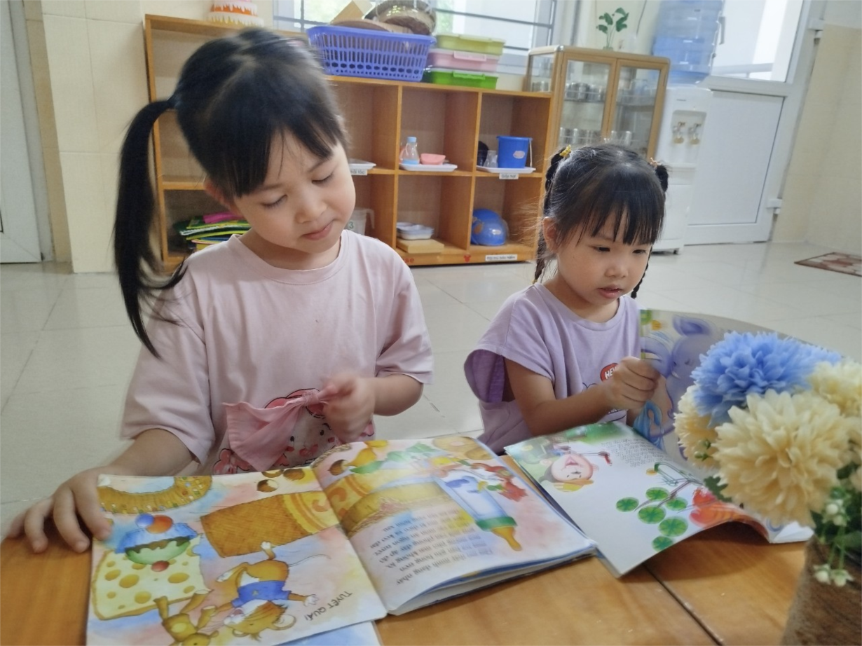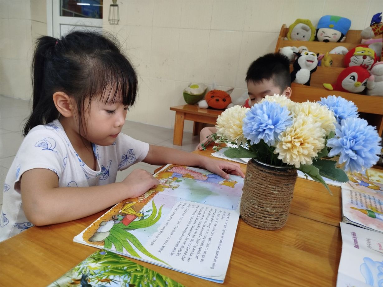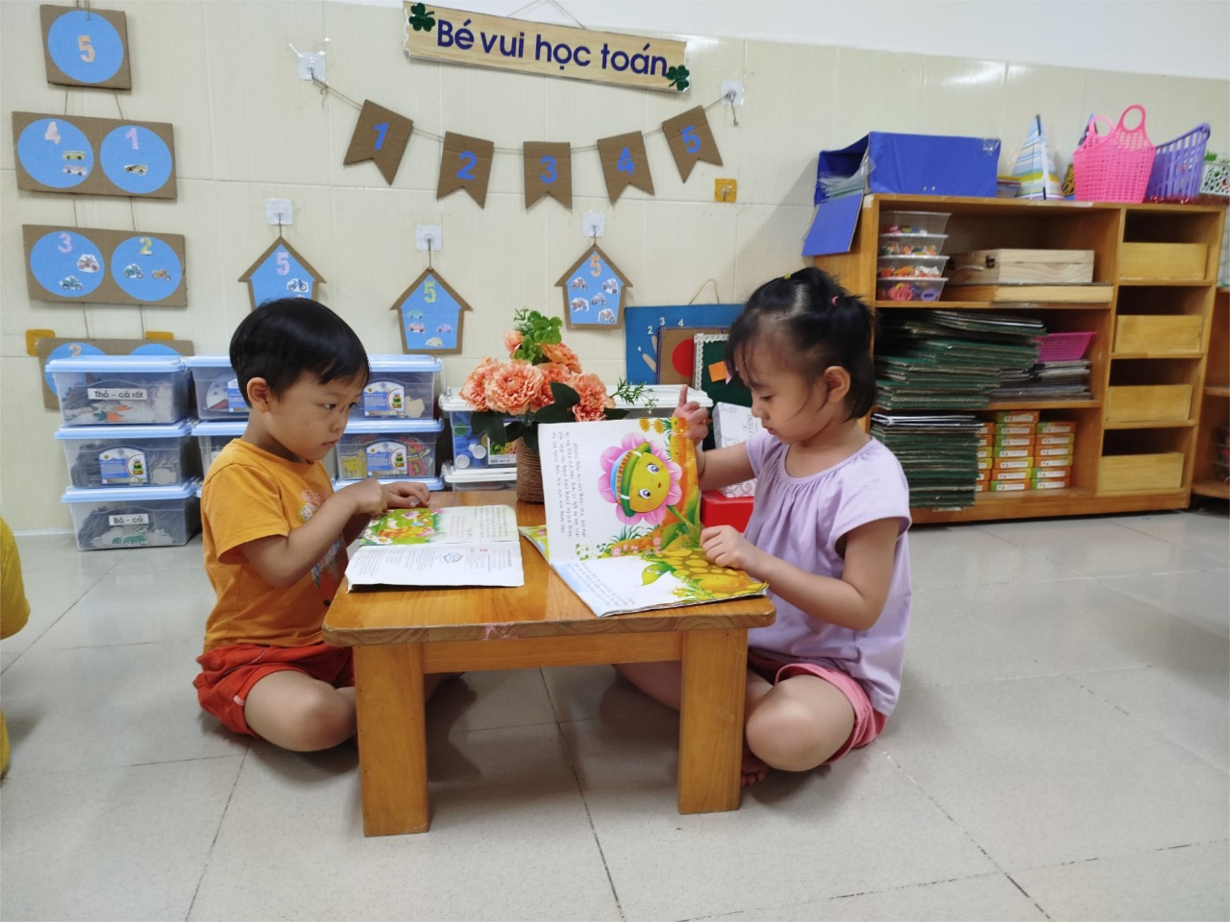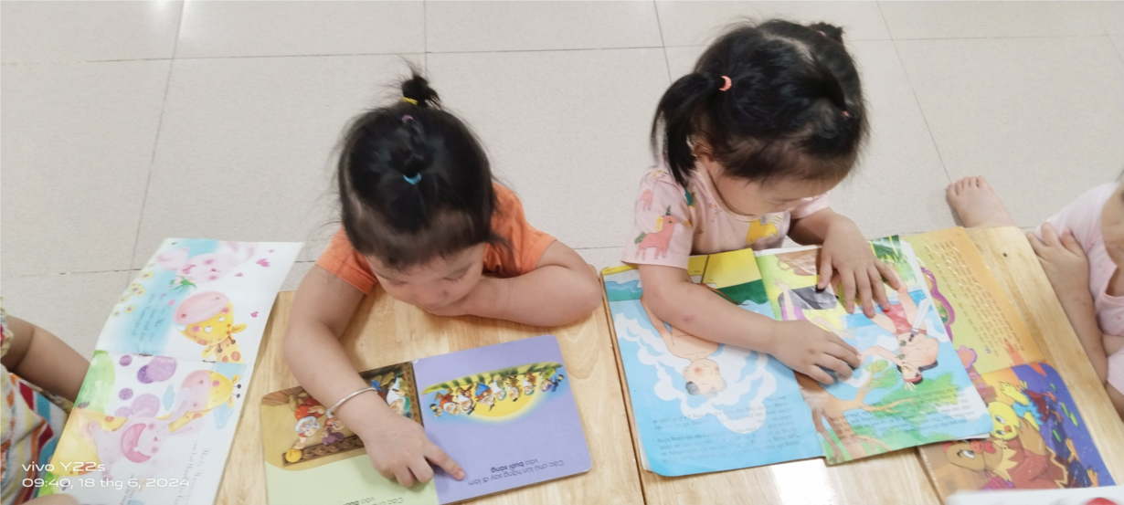 Hình ảnh đọc sách của các bạn nhỏ lớp B3