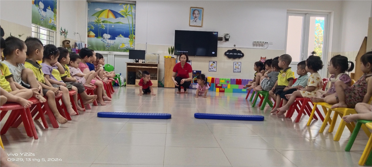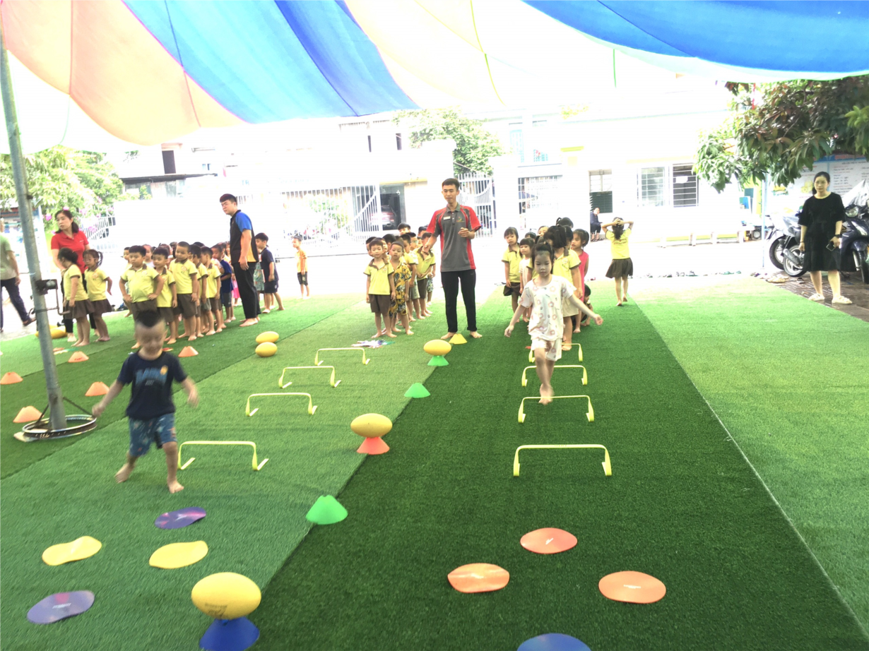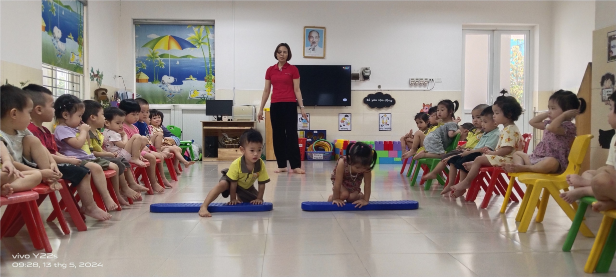 Hình ảnh các bé lớp MGN B1 với tiết học thể dục " Bật xa 35 - 40 cm "