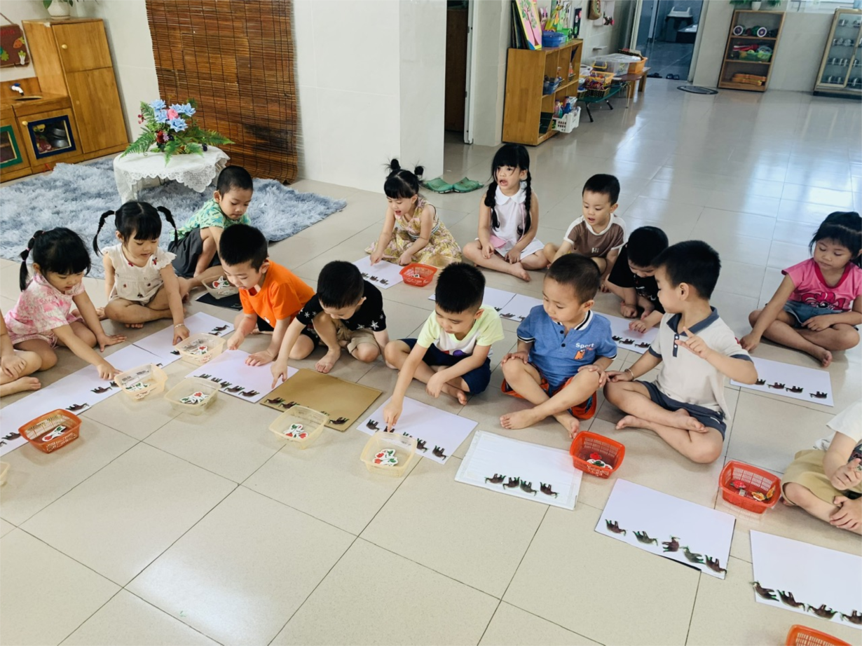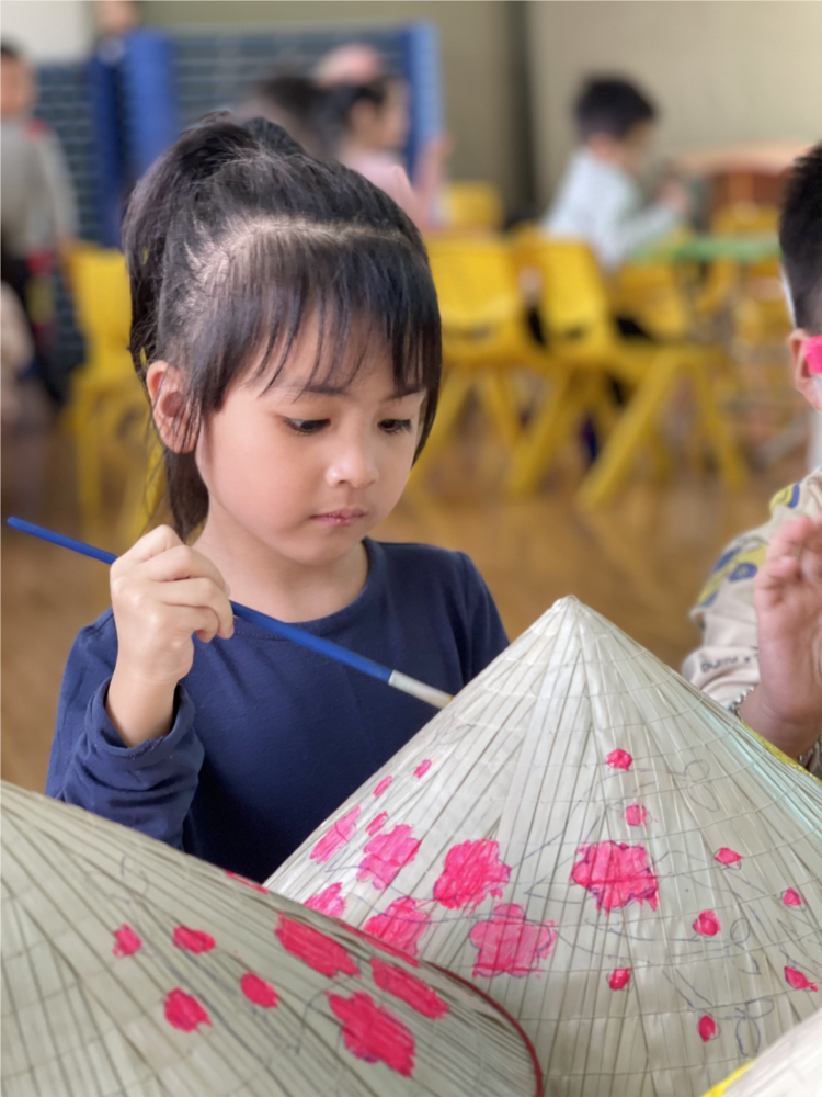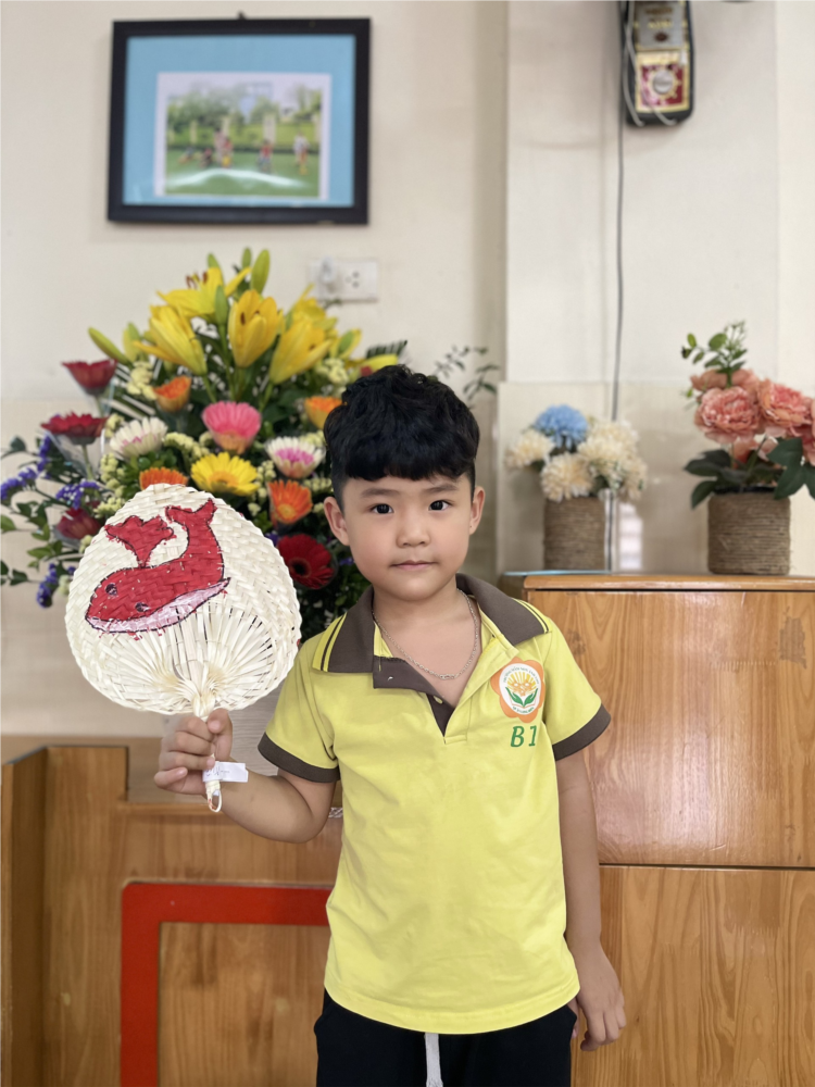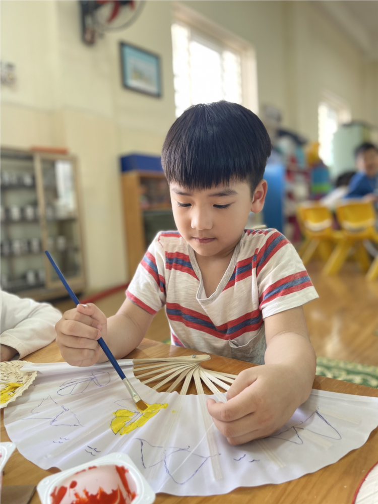 Hình ảnh của các bé lớp C3 trang trí quạt của tuần lễ sắc màu