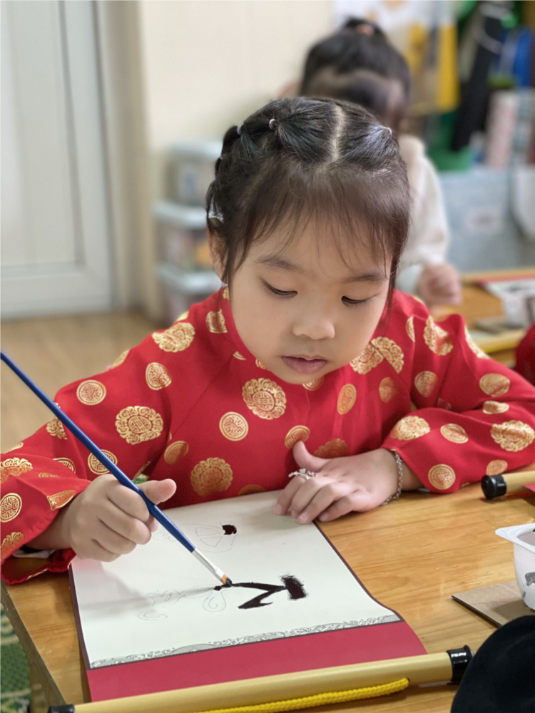 Cùng tập viết thư pháp với các bé lớp A1 nhé!