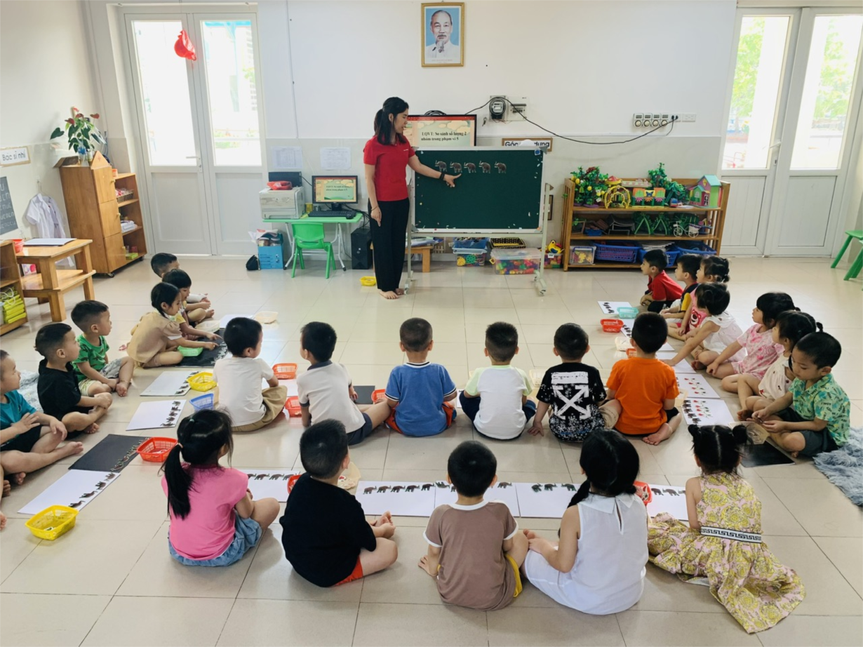 Hình ảnh các bé lớp MGN B1 với giờ học tiếng anh.