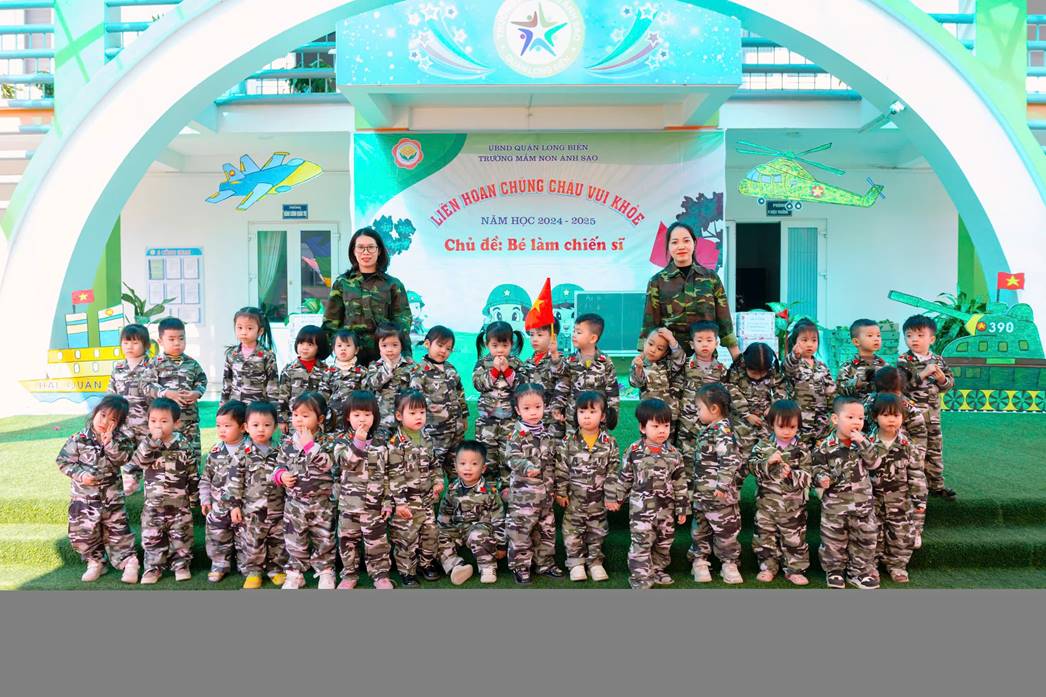 Hoạt động giúp trẻ thêm yêu mến hình ảnh anh bộ đội cụ Hồ, đồng thời khơi dậy lòng tự hào và tinh thần yêu nước từ những trải nghiệm đầu đời.