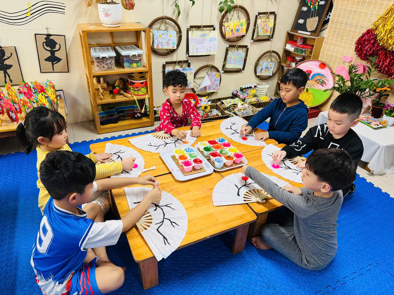Ngày 8/3, ngày quốc tế phụ nữ, đây là ngày mà để tôn vinh những đóng góp, sự hi sinh thầm lặng của 1 nửa thế giới là phụ nữ. Hiểu được điều đó, ngày hôm nay, dưới lớp học A3 thân yêu, những đôi bàn tay bé nhỏ đã tự tay trang trí những chiếc quạt lụa thật đẹp để dành món quà nhỏ bé này đến những người phụ nữ thân yêu của đời mình như là một món quà nhỏ dành tặng bà, tặng mẹ nhân ngày 8/3. Từng bàn tay tỉ mỉ, chăm chút với những sắc màu nước nhiều màu để làm tô điểm thêm sinh động cho những chiếc quạt lụa thêm phần hấp dẫn. Thông qua hoạt động này còn giúp trẻ phát triển kỹ năng khéo léo, phát triển tư duy thẩm mỹ cho trẻ. Qua đây, trẻ học được cách bày tỏ tình cảm với bà, với mẹ bằng món quà do chính đôi tay trẻ làm ra. Hãy cùng nhau nhìn ngắm 1 số khoảnh khắc đáng yêu của trẻ nhé!