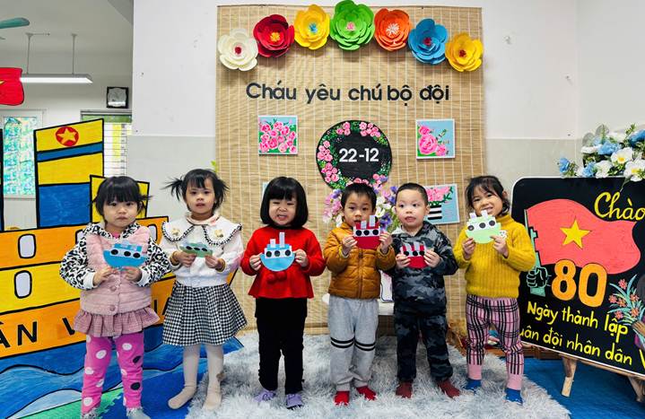 Nằm trong chuỗi hoạt động trải nghiệm tháng 12 là dự Án: “Chú bộ đội” và chào mừng kỷ niệm 80 năm ngày thành lập Quân đội Nhân dân Việt Nam.