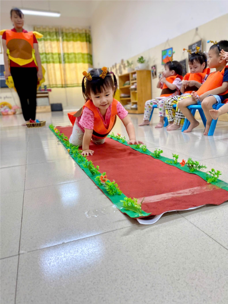 Buổi học đã mang đến những giây phút thú vị cho cả bé và các cô giáo. Các bé, với những “túi cát nhỏ xinh” dễ thương trên lưng, bò lăn tăn khắp phòng, khơi dậy sự vui tươi và niềm hứng thú tự nhiên. Tiếng cười và những gương mặt rạng rỡ của các bé là điều khiến cả lớp học trở nên sinh động và ấm áp hơn bao giờ hết.