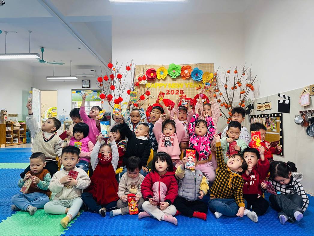 Sau kỳ nghỉ Tết, các bé lớp Conan 1 trở lại trường trong không khí rộn ràng, tươi vui của những ngày đầu xuân. Bé nào cũng háo hức khi được cô giáo tặng lì xì may mắn, gửi gắm lời chúc một năm mới khỏe mạnh, chăm ngoan và học giỏi.