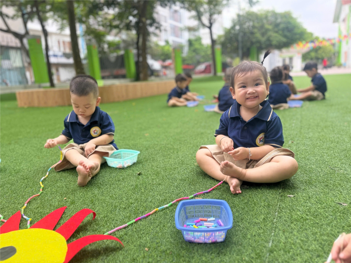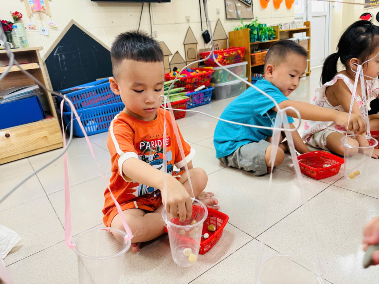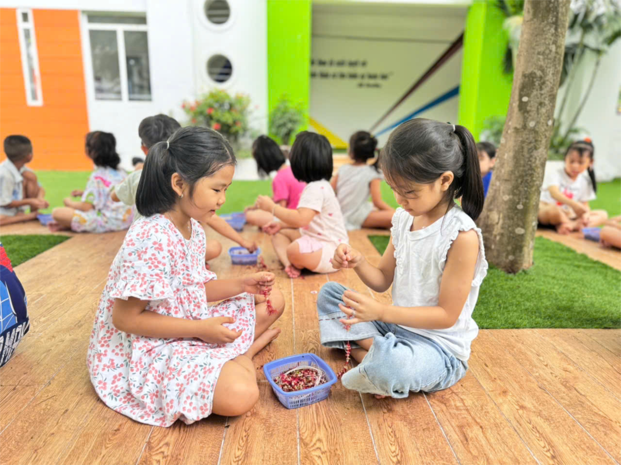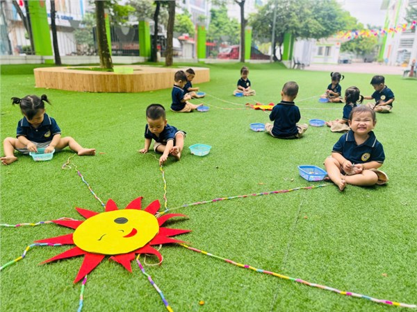 Các bạn nhỏ lớp D3 xâu tia nắng mặt trời