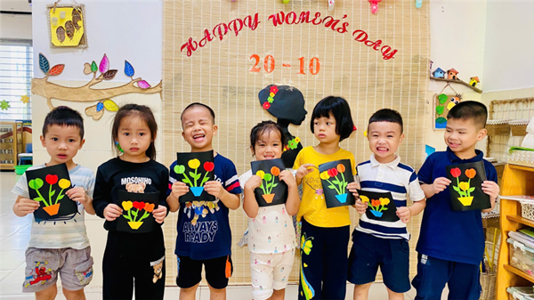 Hình ảnh các Bé Lớp Nhà Trẻ D2 Tham Gia Hoạt Động Cắm Hoa Tặng Mẹ