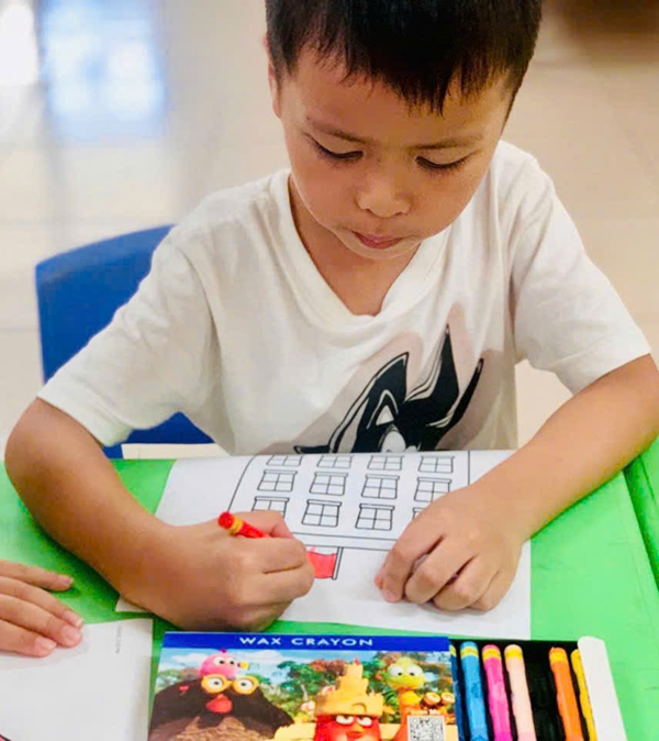 Hình ảnh các bé lớp C2 tô màu bông hoa tặng mẹ.