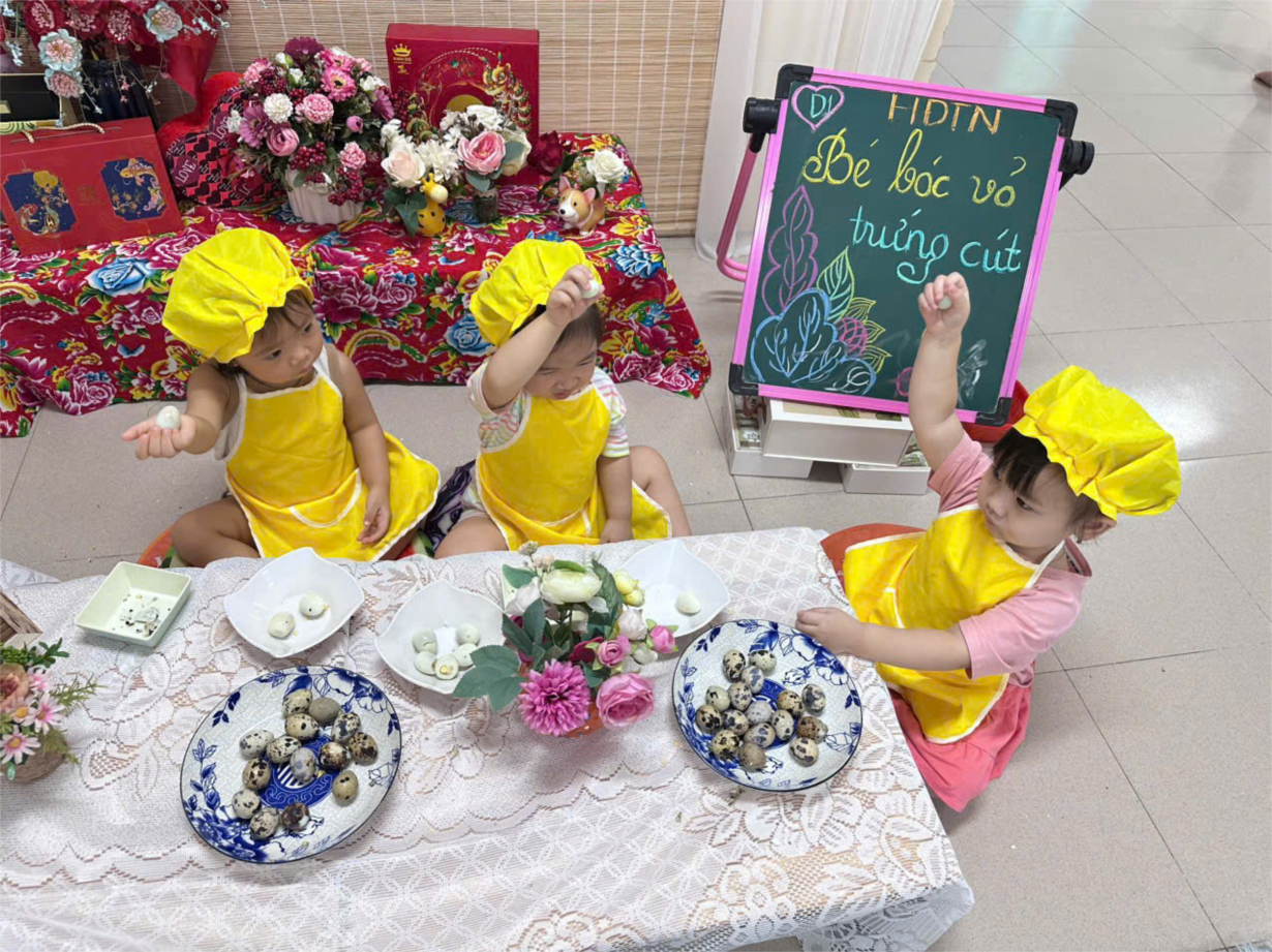 Tháng 9: Hoạt động trải nghiệm bóc vỏ trứng cút của các bé lớp D1