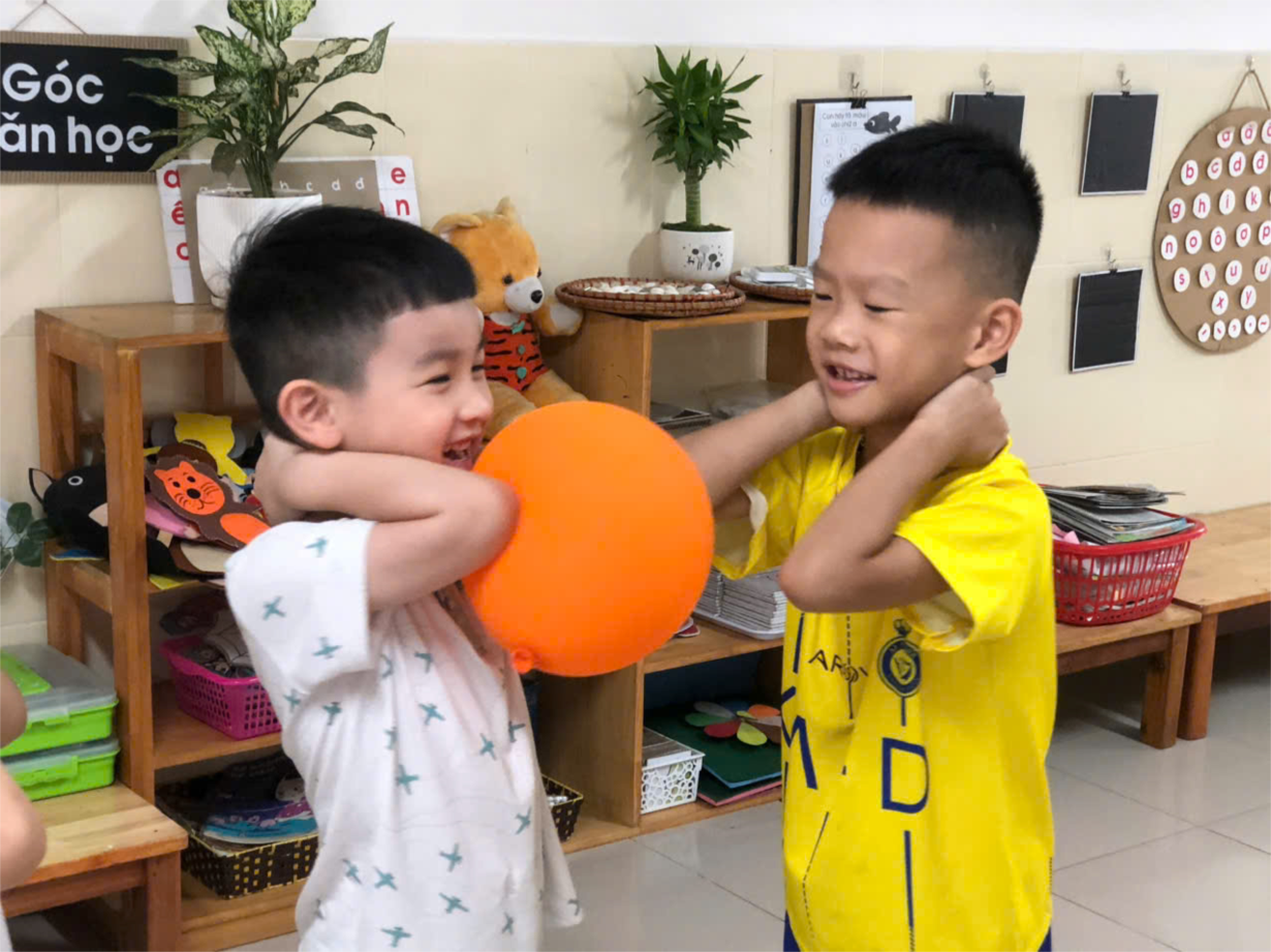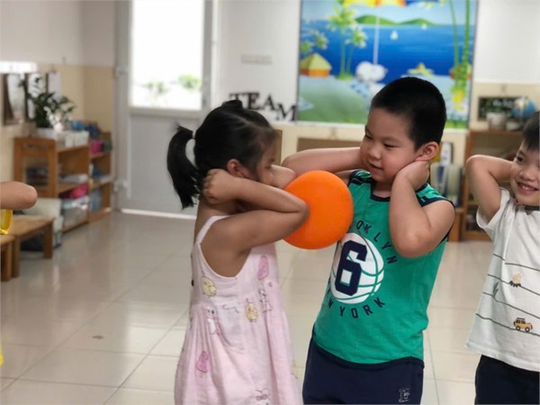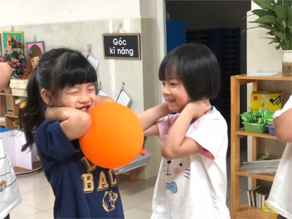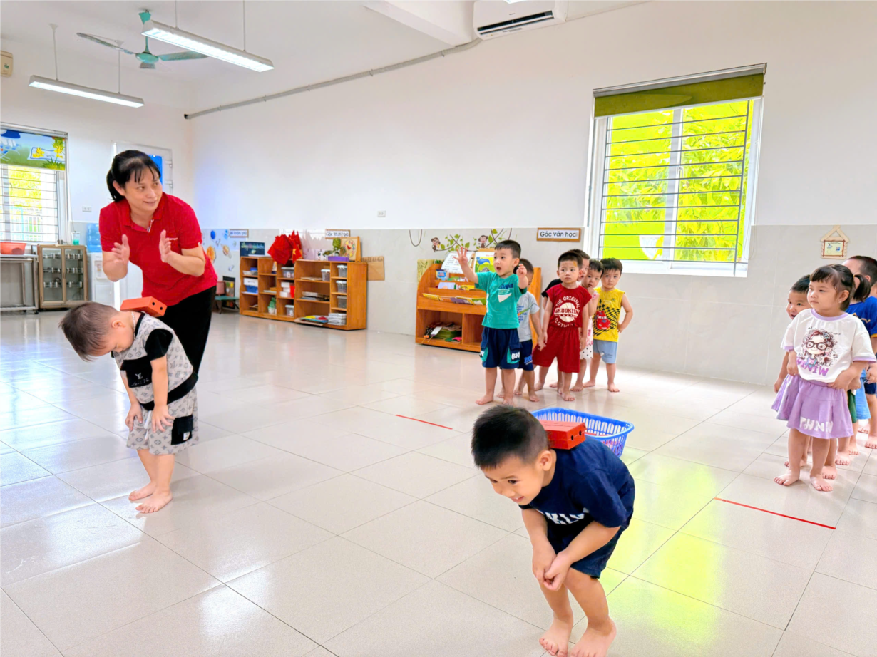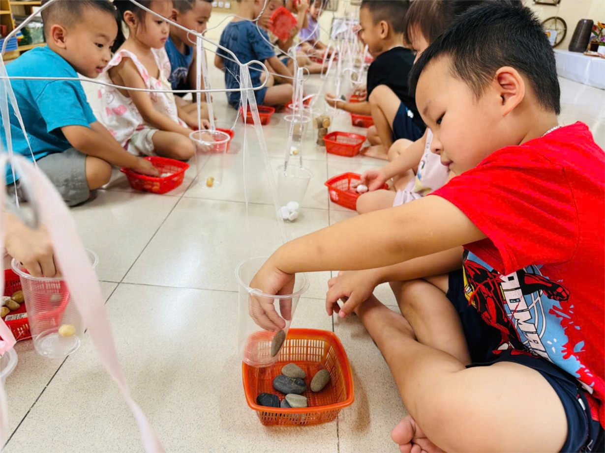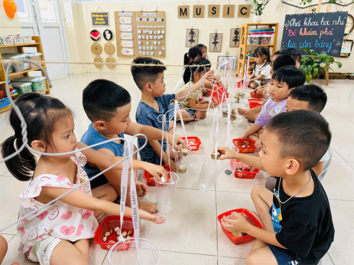 Các bạn nhỏ lớp A4 tham gia khám phá lực cân bằng