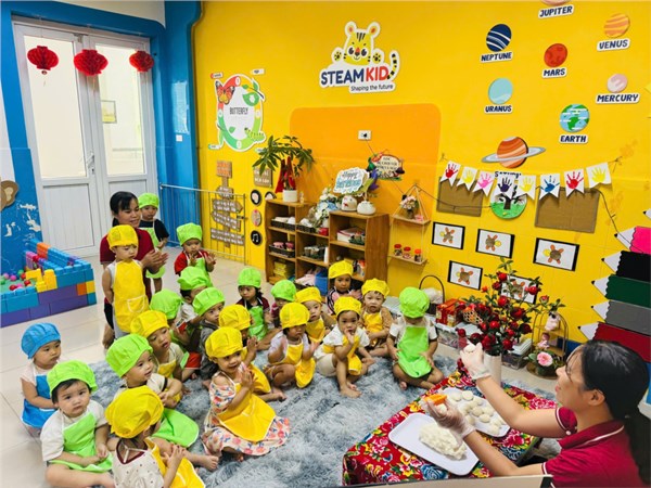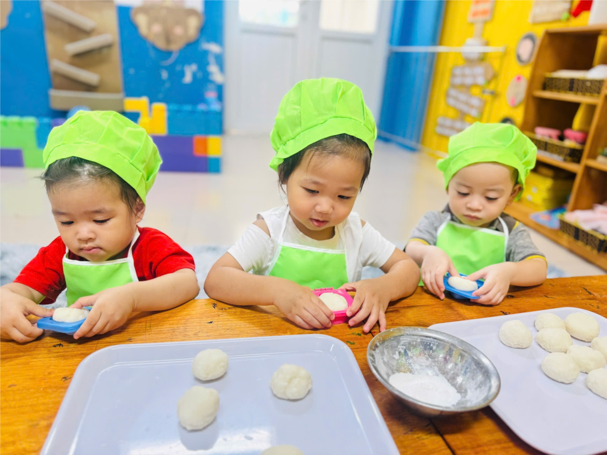 Các bé lớp Alvin 2 với hoạt động làm bánh dẻo nhân ngày tết trung thu!